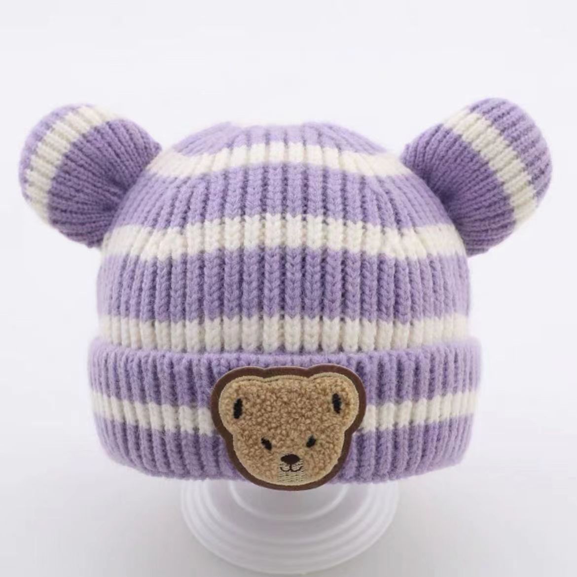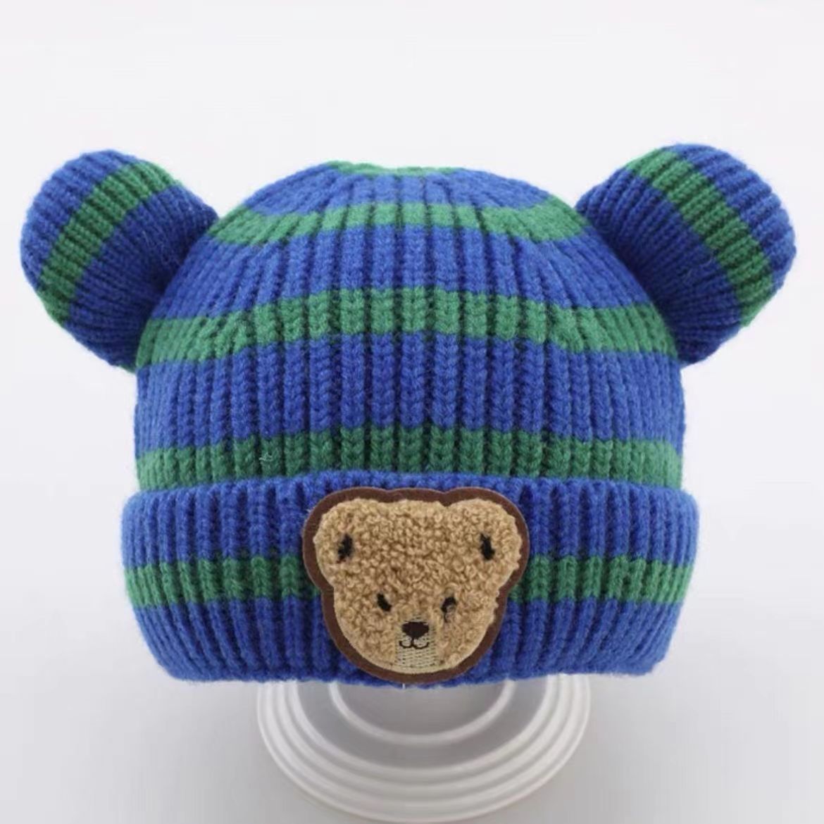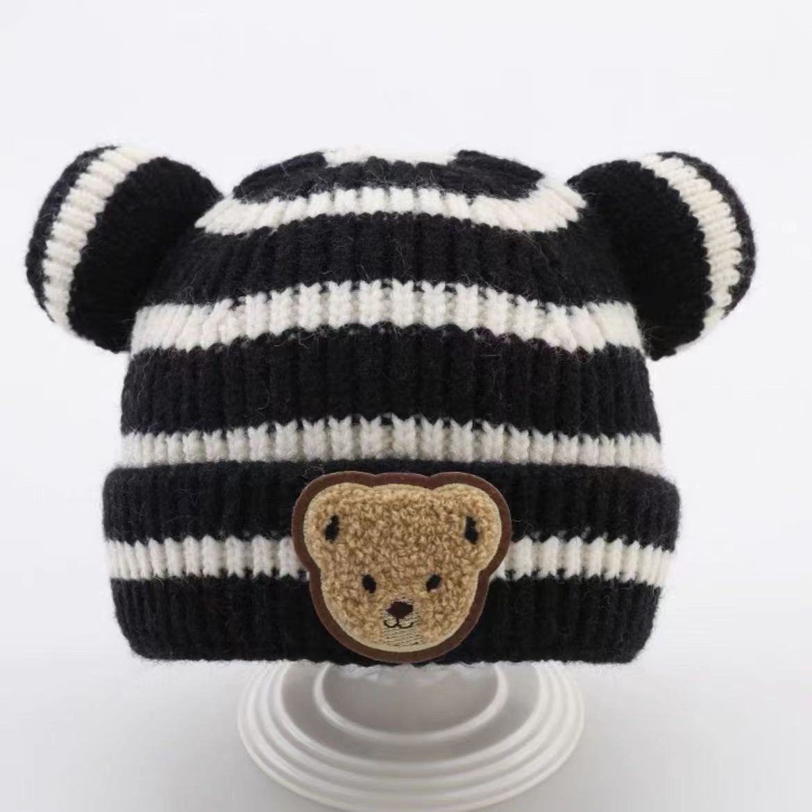 가을과 겨울 어린이 따뜻한 모자 귀여운 줄무늬 곰 모자 한국 아기 더블 볼 니트 모자 남성 및 여성 보물 모자