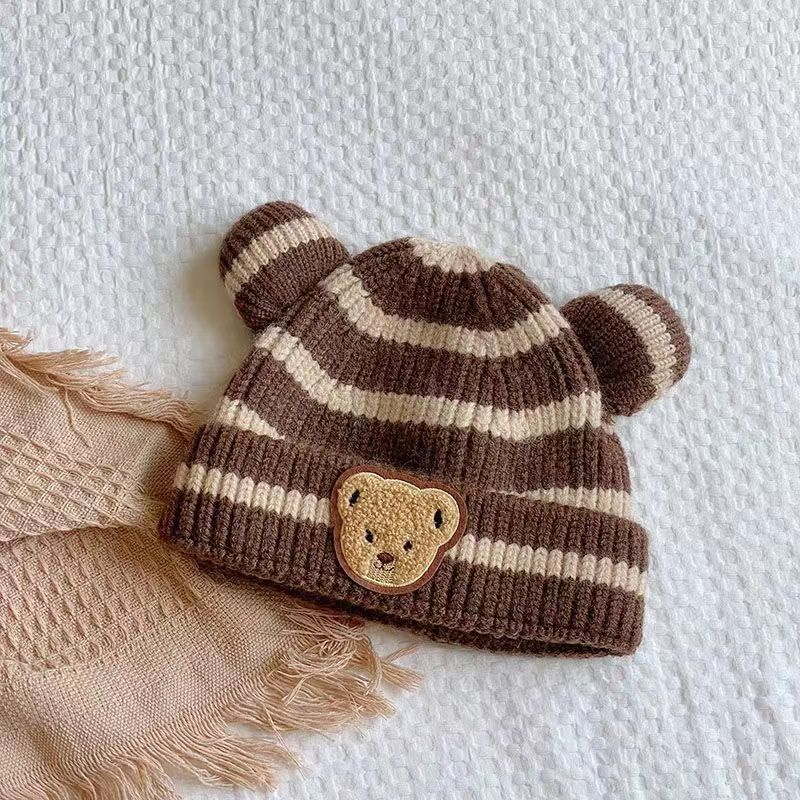 가을과 겨울 어린이 따뜻한 모자 귀여운 줄무늬 곰 모자 한국 아기 더블 볼 니트 모자 남성 및 여성 보물 모자스토어 가기