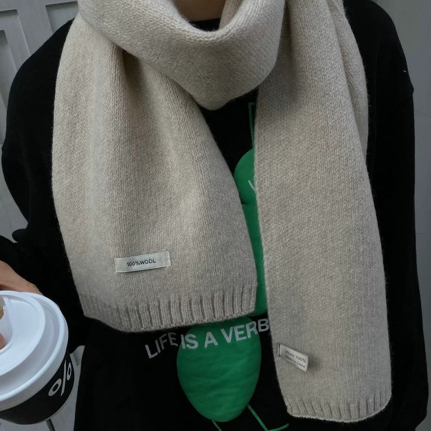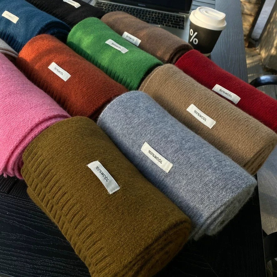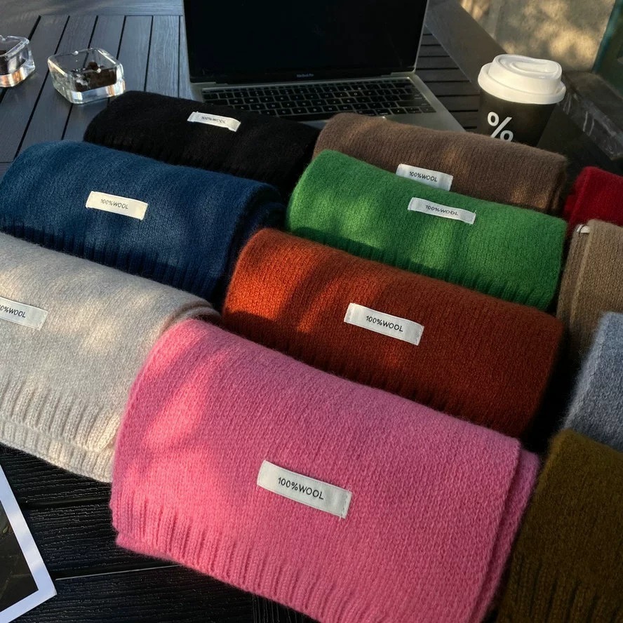 100% WOOL 호주 순수 울 스카프 겨울 올 매치 솔리드 컬러 목도리 듀얼 사용 따뜻한 스카프 학생 커플스토어 가기