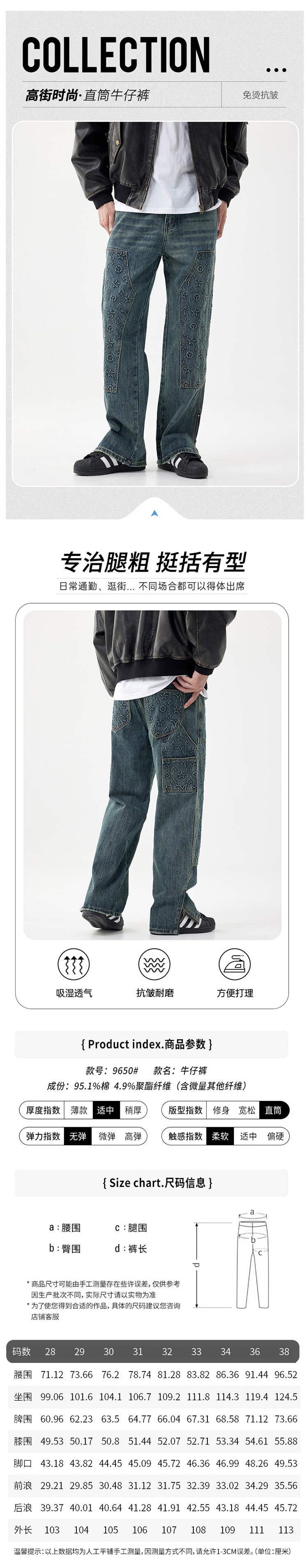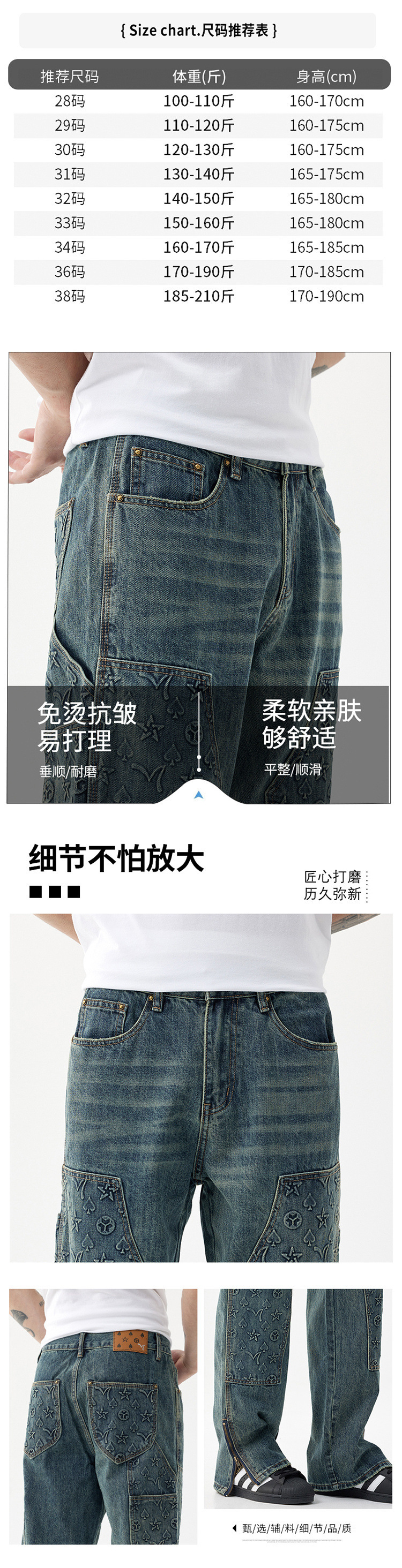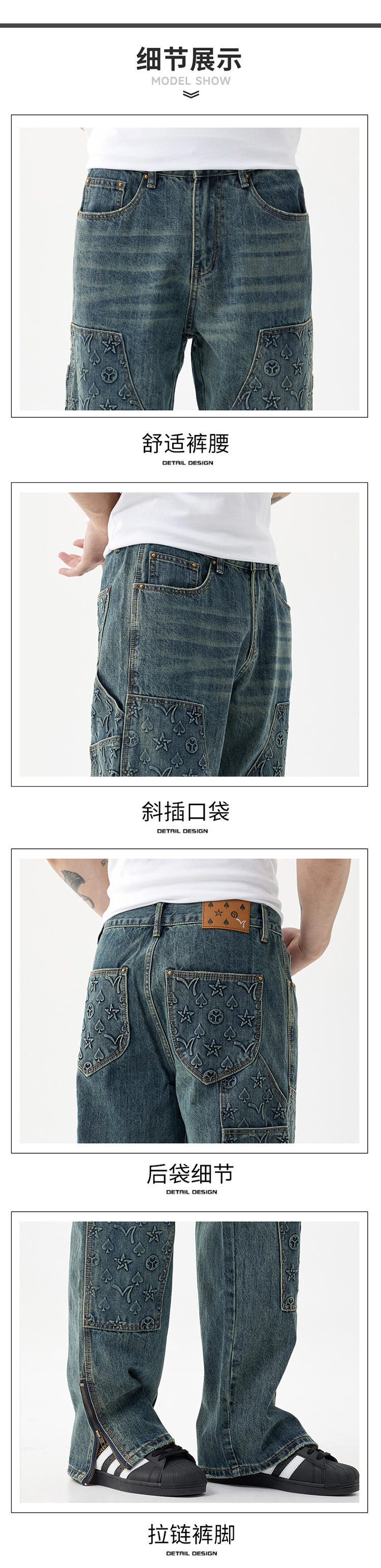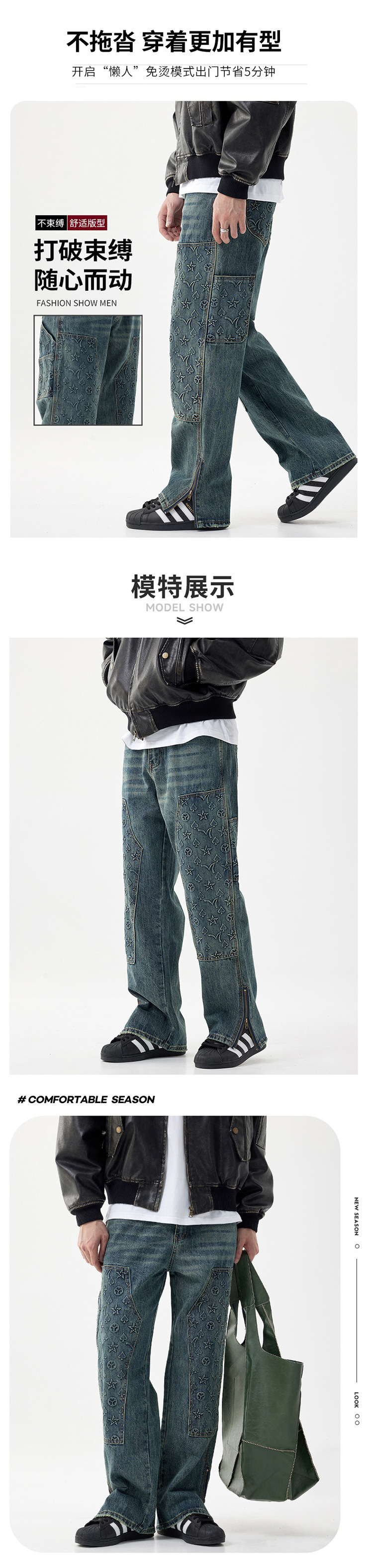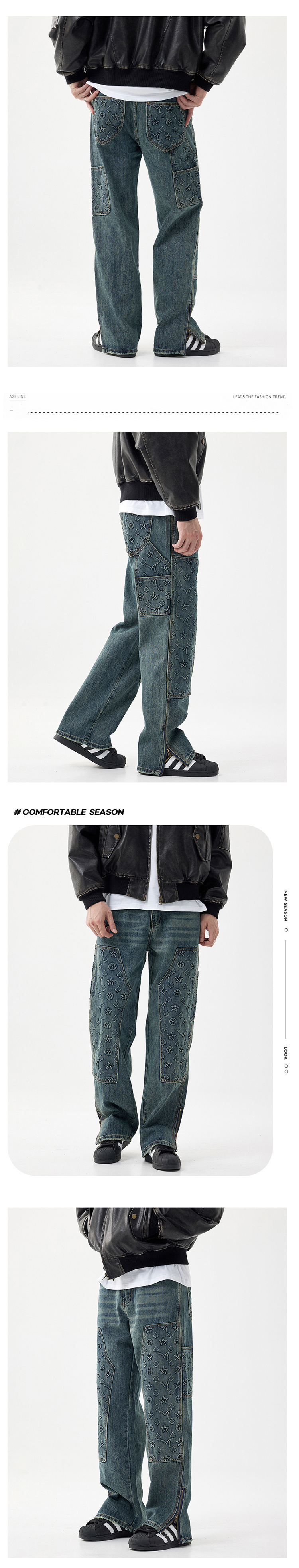 트렌디 한 브랜드 청바지 남성용 루즈 스트레이트 하이 스트리트 툴링 헤비 세척 2024 새로운 압력 인쇄 가을 긴 바지