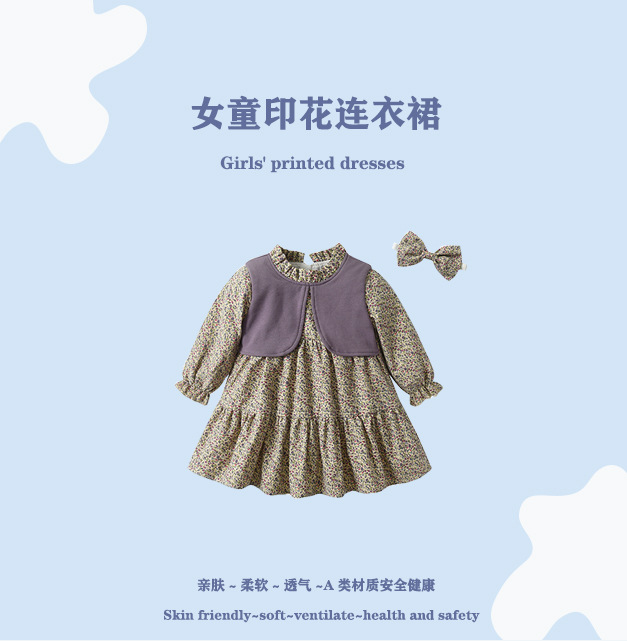 소녀의 봄과 가을 코튼 공주 원피스 소녀 아기 소녀의 한국식 패션 스커트 아기 가짜 투피스스토어 가기