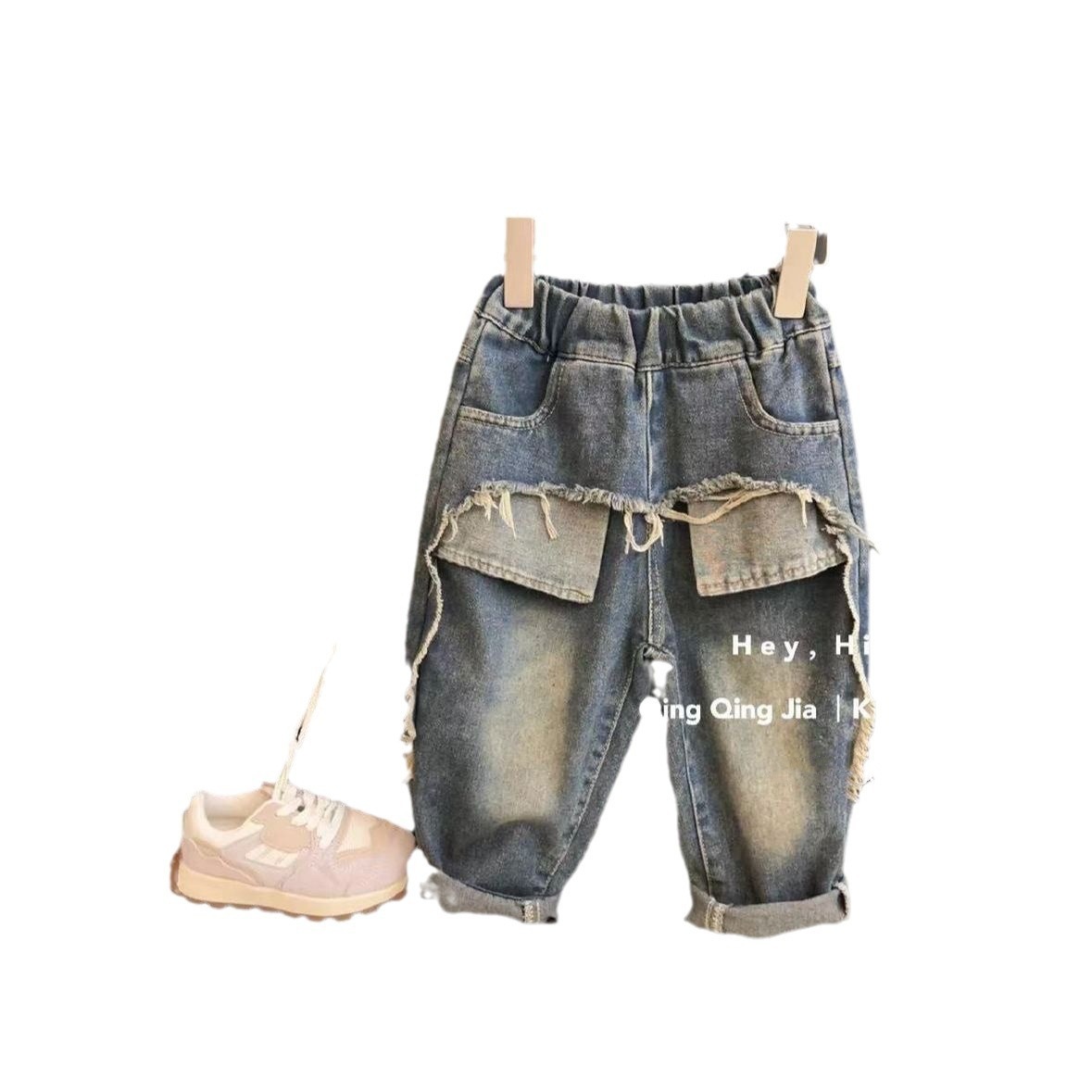 2024 소녀 청바지 가을 새 도착 소년 소녀 아기 백 포켓 세척 청바지