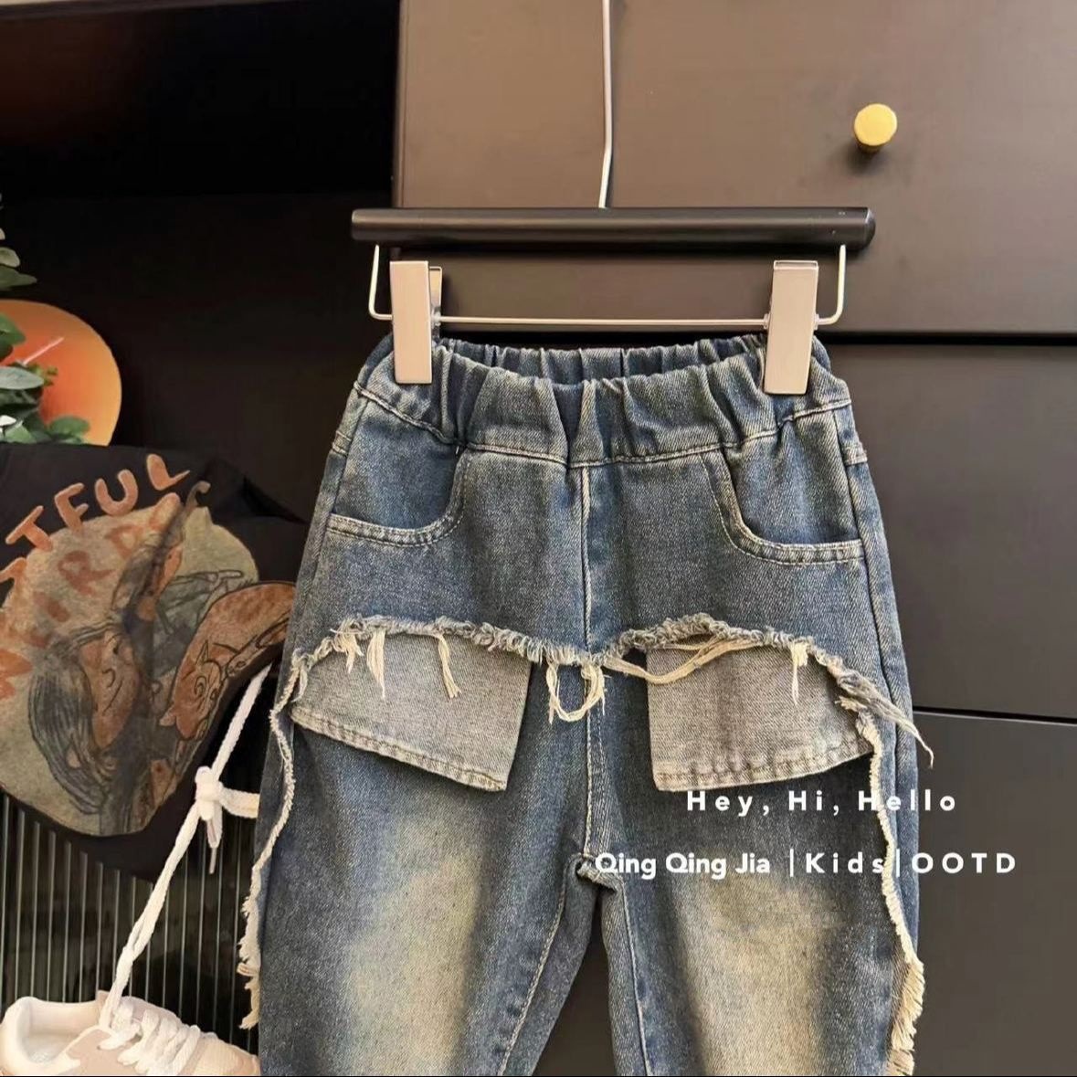 2024 소녀 청바지 가을 새 도착 소년 소녀 아기 백 포켓 세척 청바지스토어 가기