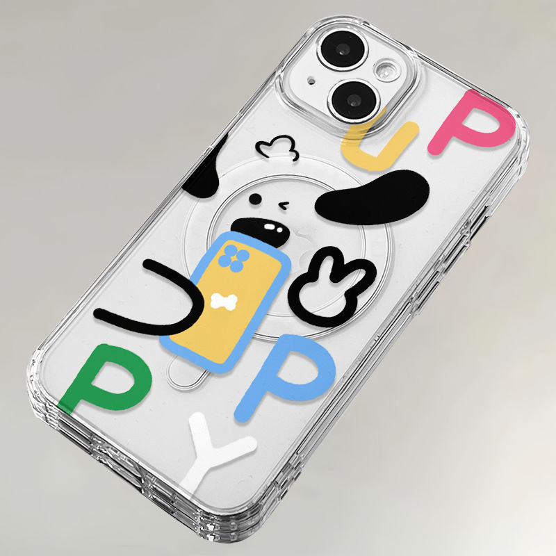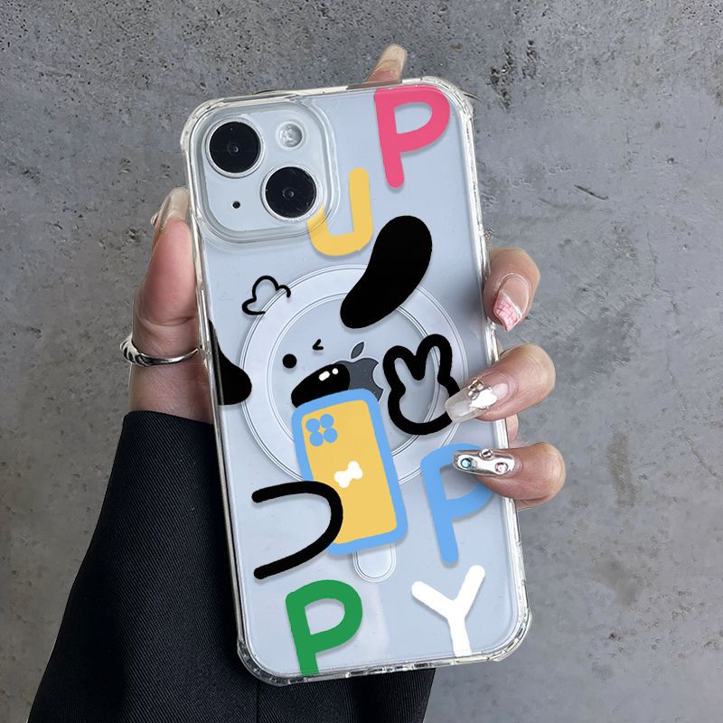 Apple 16/15/14pro에 적합한 Biye 강아지 간단하고 창의적인 13/12/11 자기 대형 구멍 투명 소프트 쉘