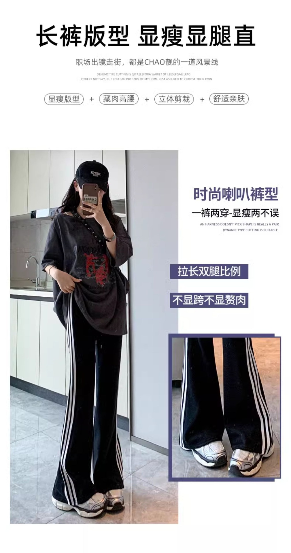 TikTok 품질 Mamba 코튼 캐주얼 마이크로 팬츠 여성의 2024 가을 및 겨울 높은 허리 스트레이트 3 바 스포츠 바지스토어 가기