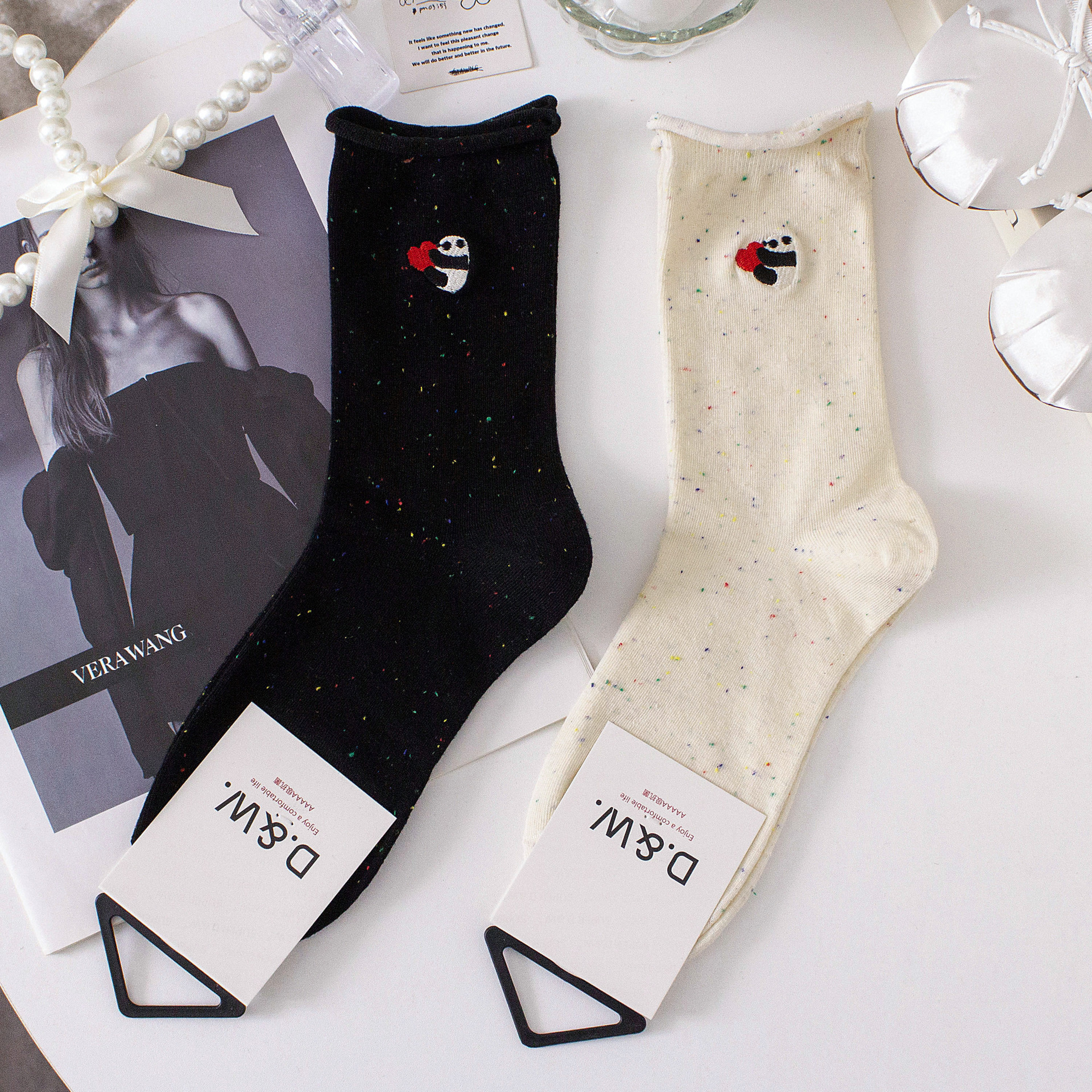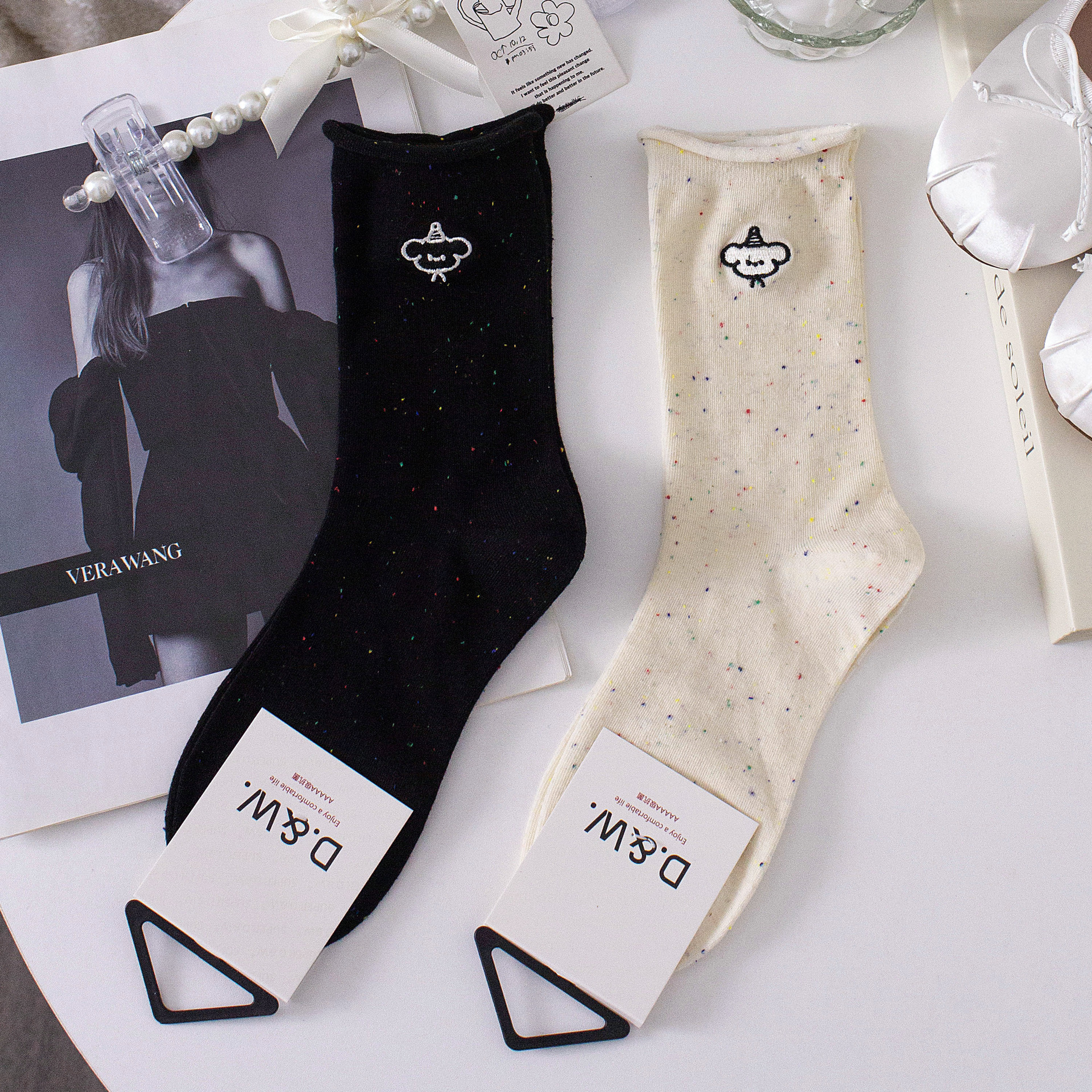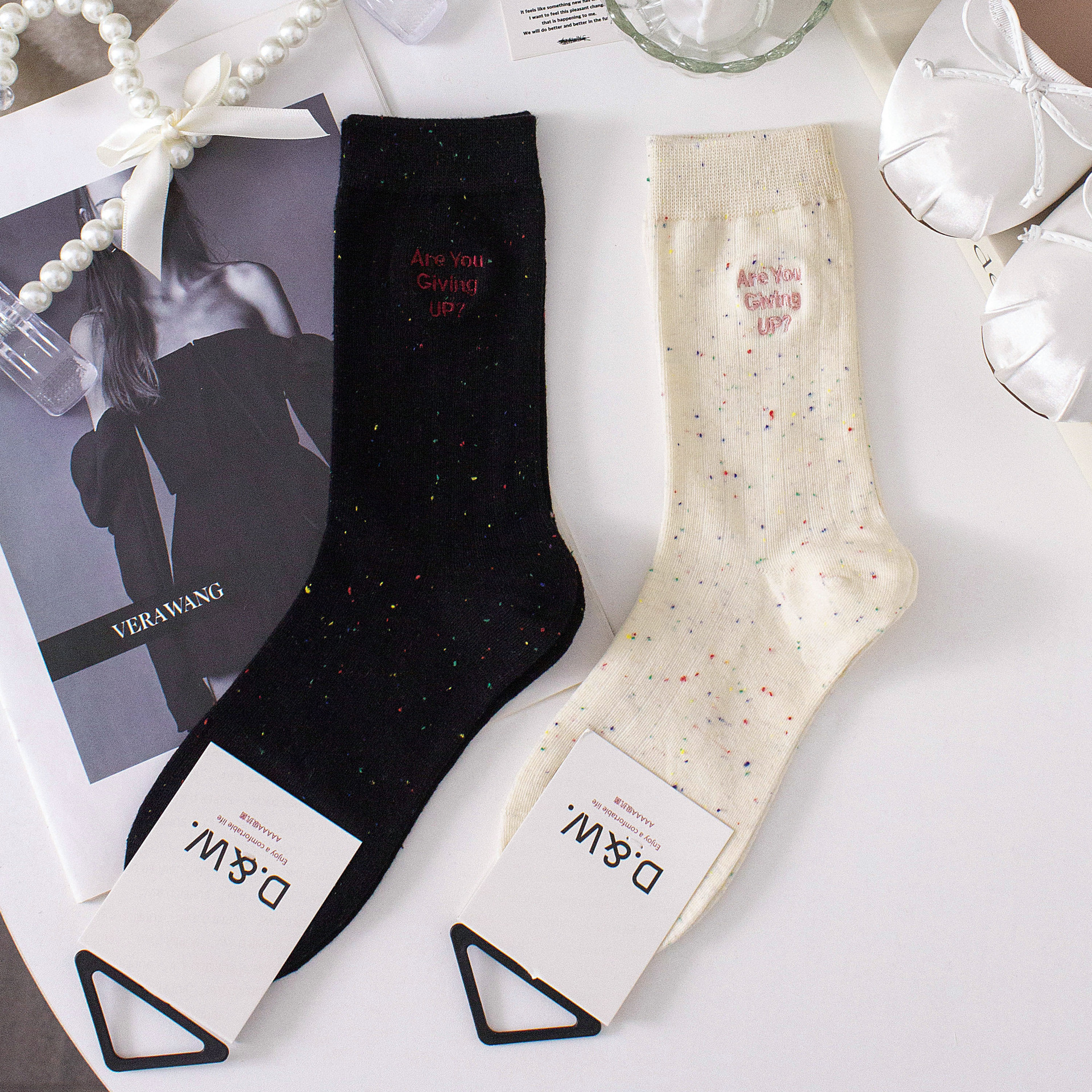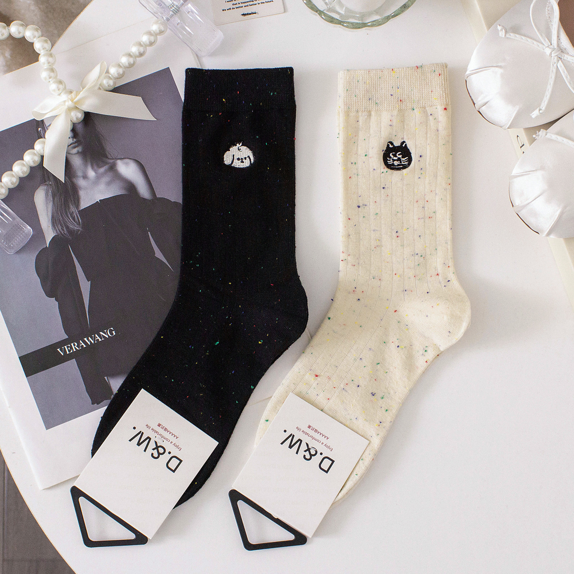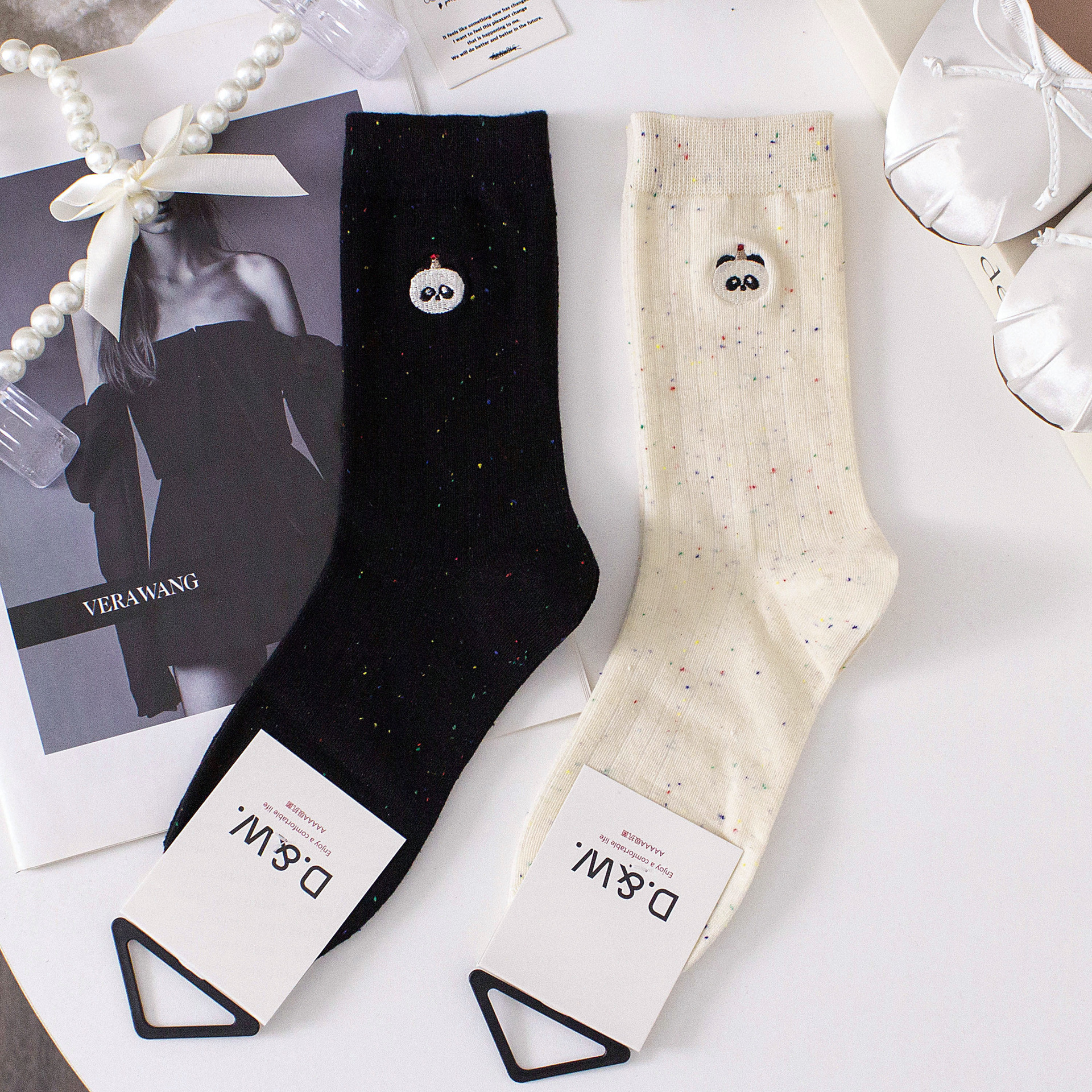 양말 여성용 도트 원사 긴 튜브 자수 봄과 가을 흑백 모리 귀여운 일본 스타일 여성 양말 Ins 트렌디 한 스포츠 대학 스타일스토어 가기