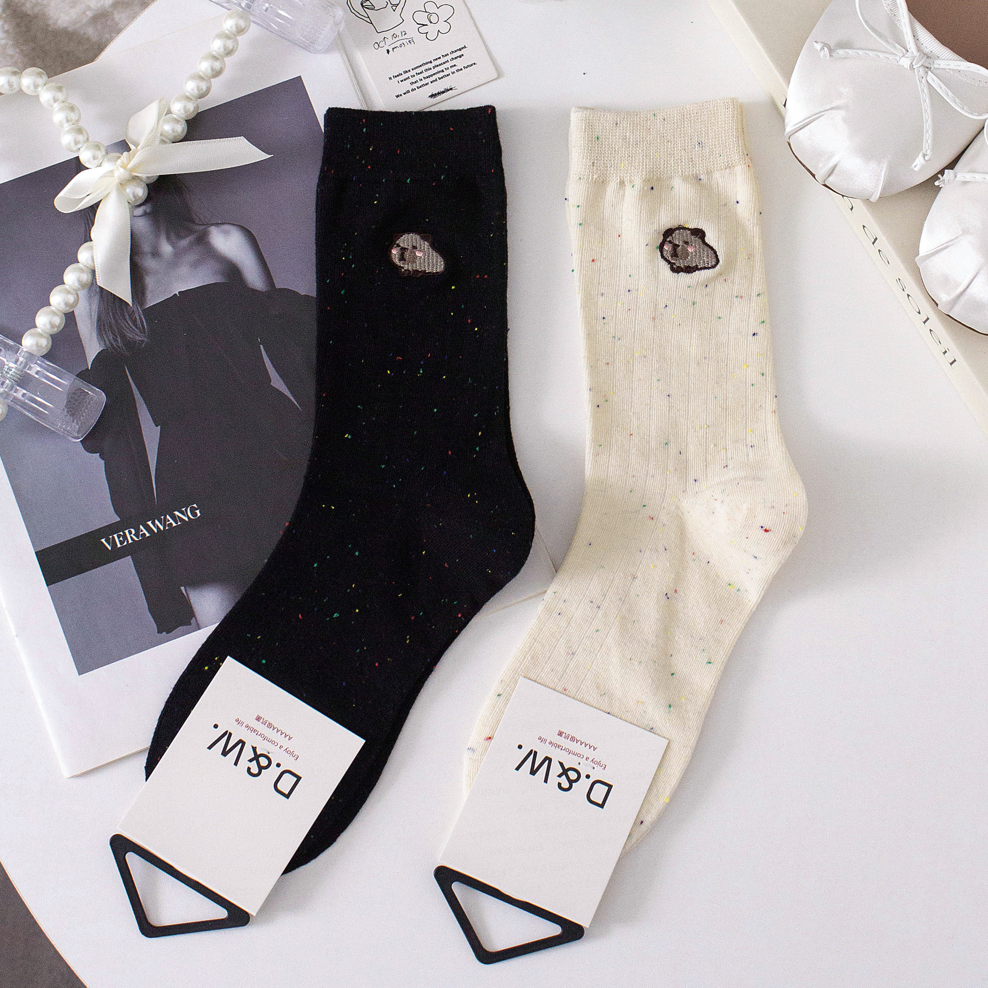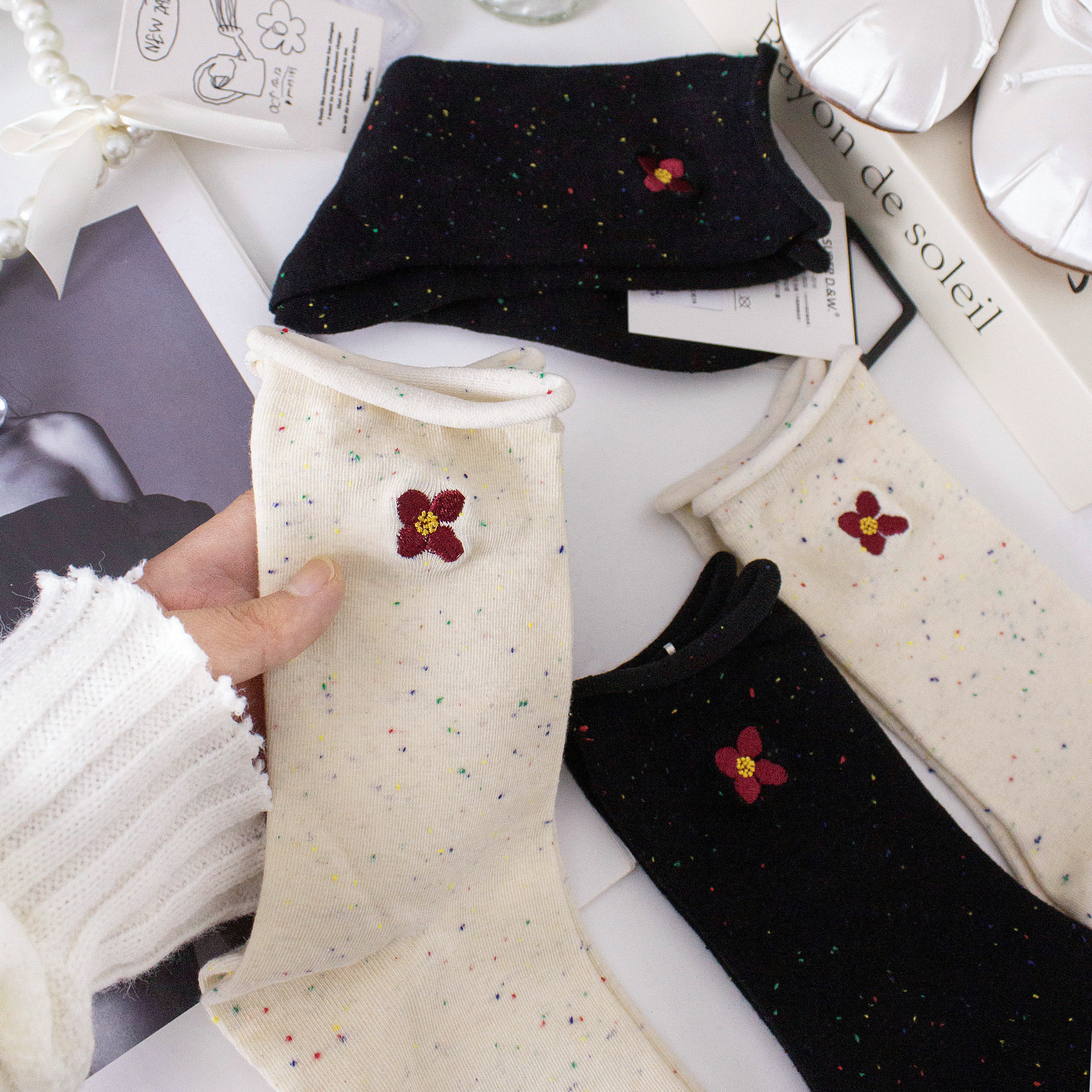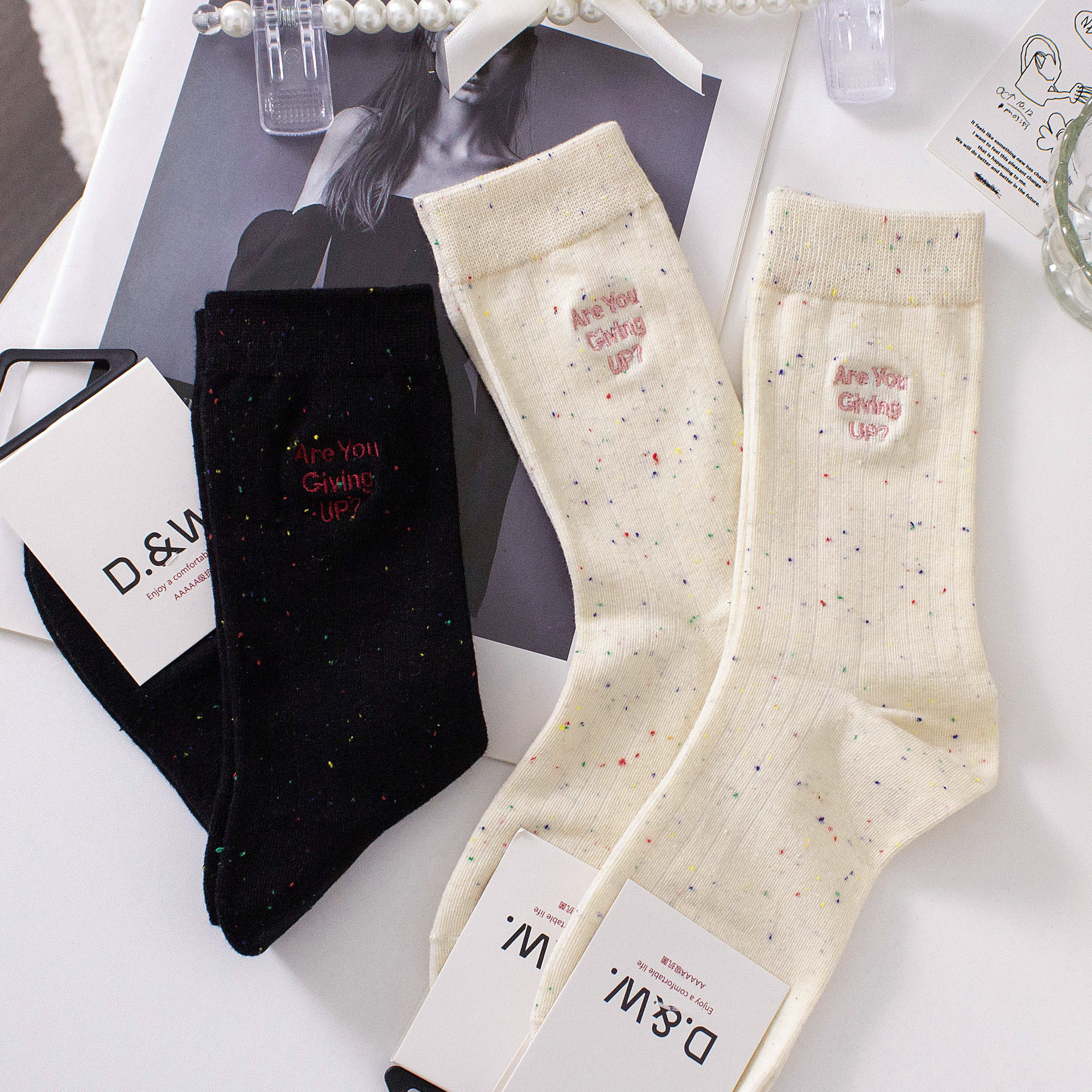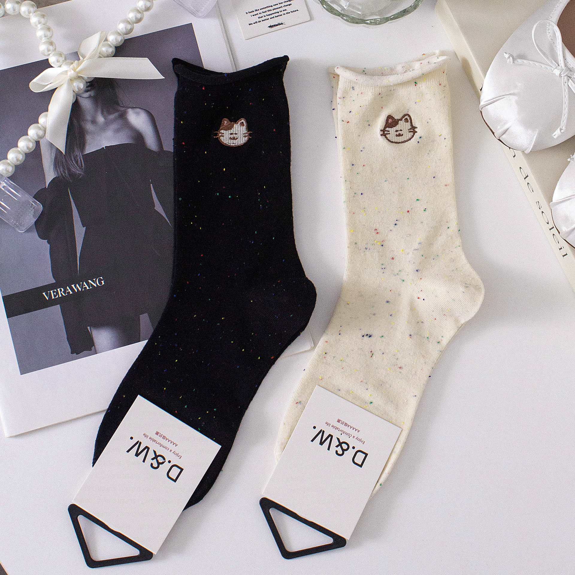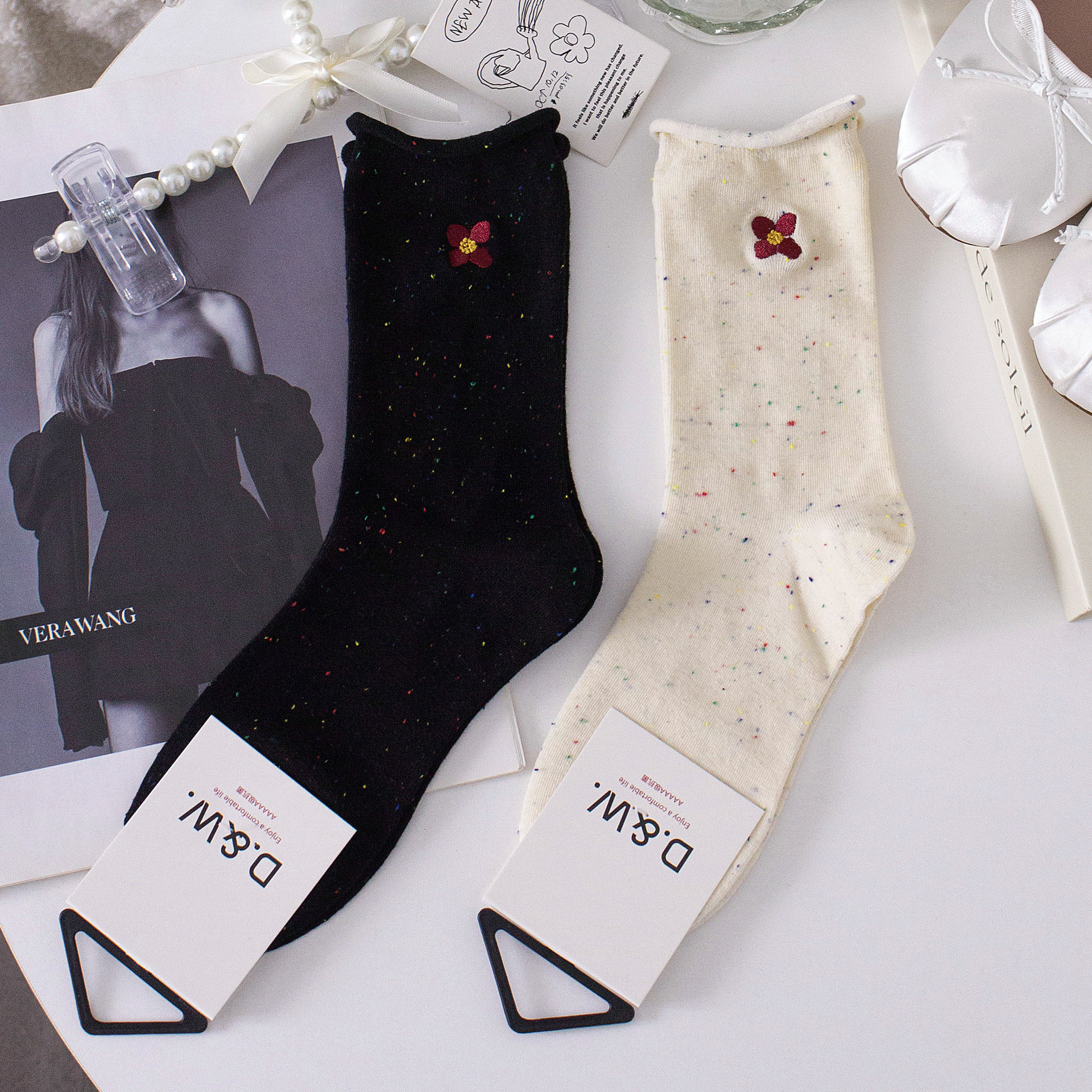 양말 여성용 도트 원사 긴 튜브 자수 봄과 가을 흑백 모리 귀여운 일본 스타일 여성 양말 Ins 트렌디 한 스포츠 대학 스타일스토어 가기