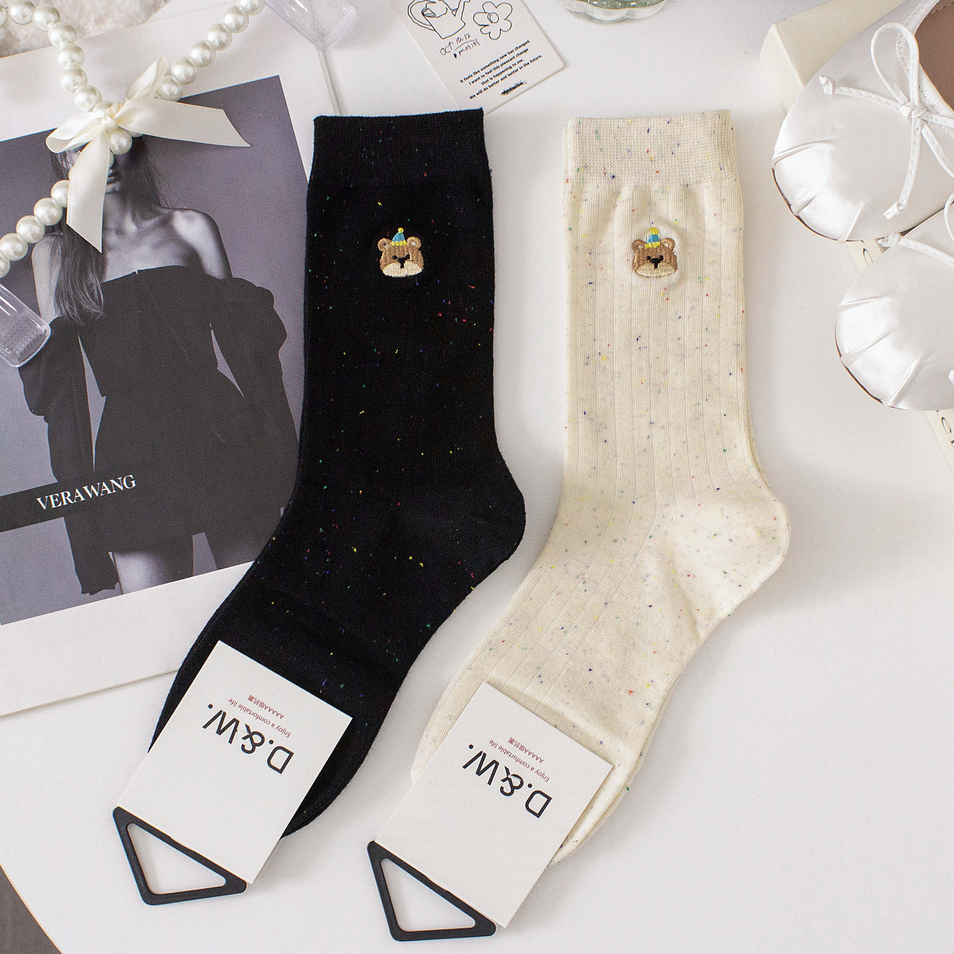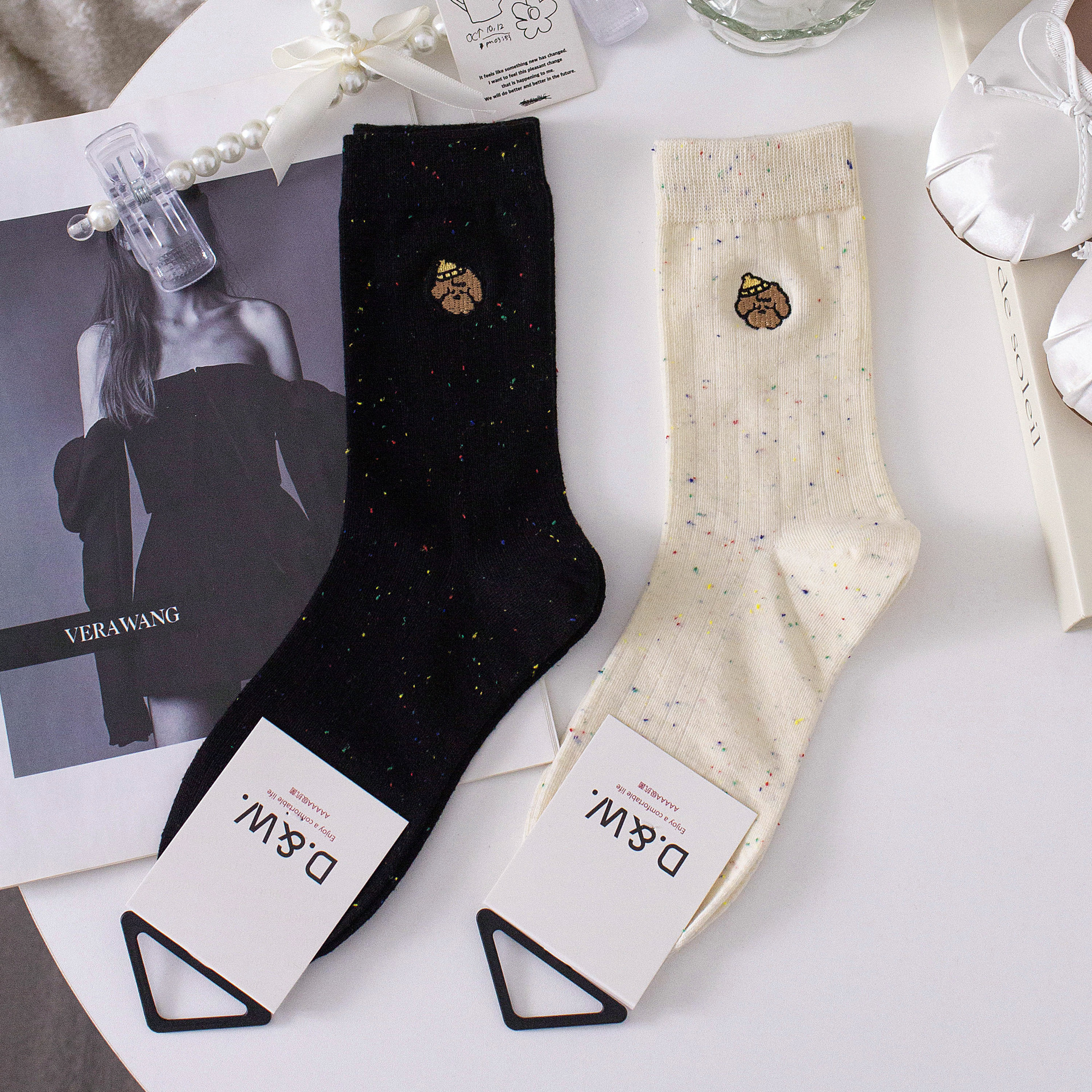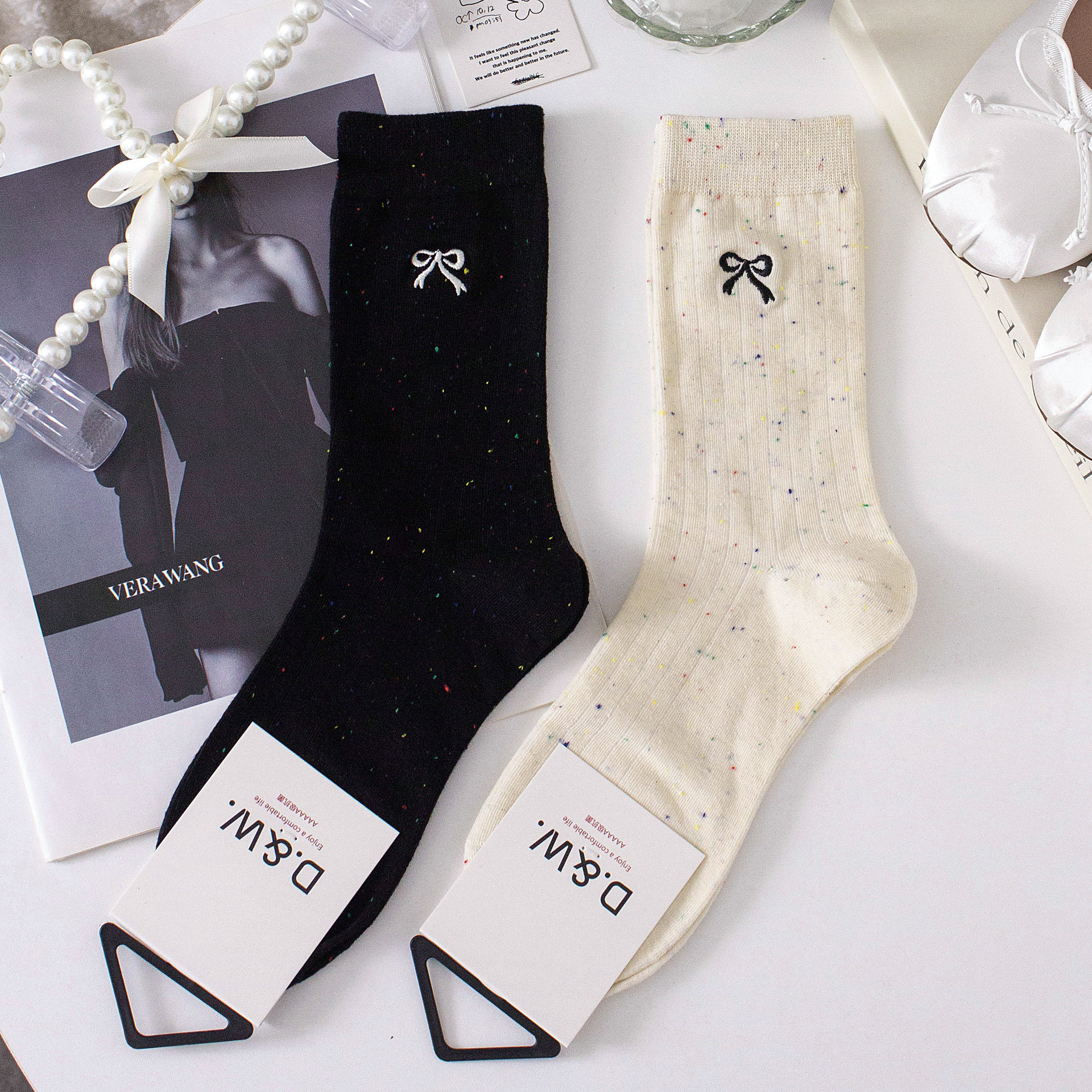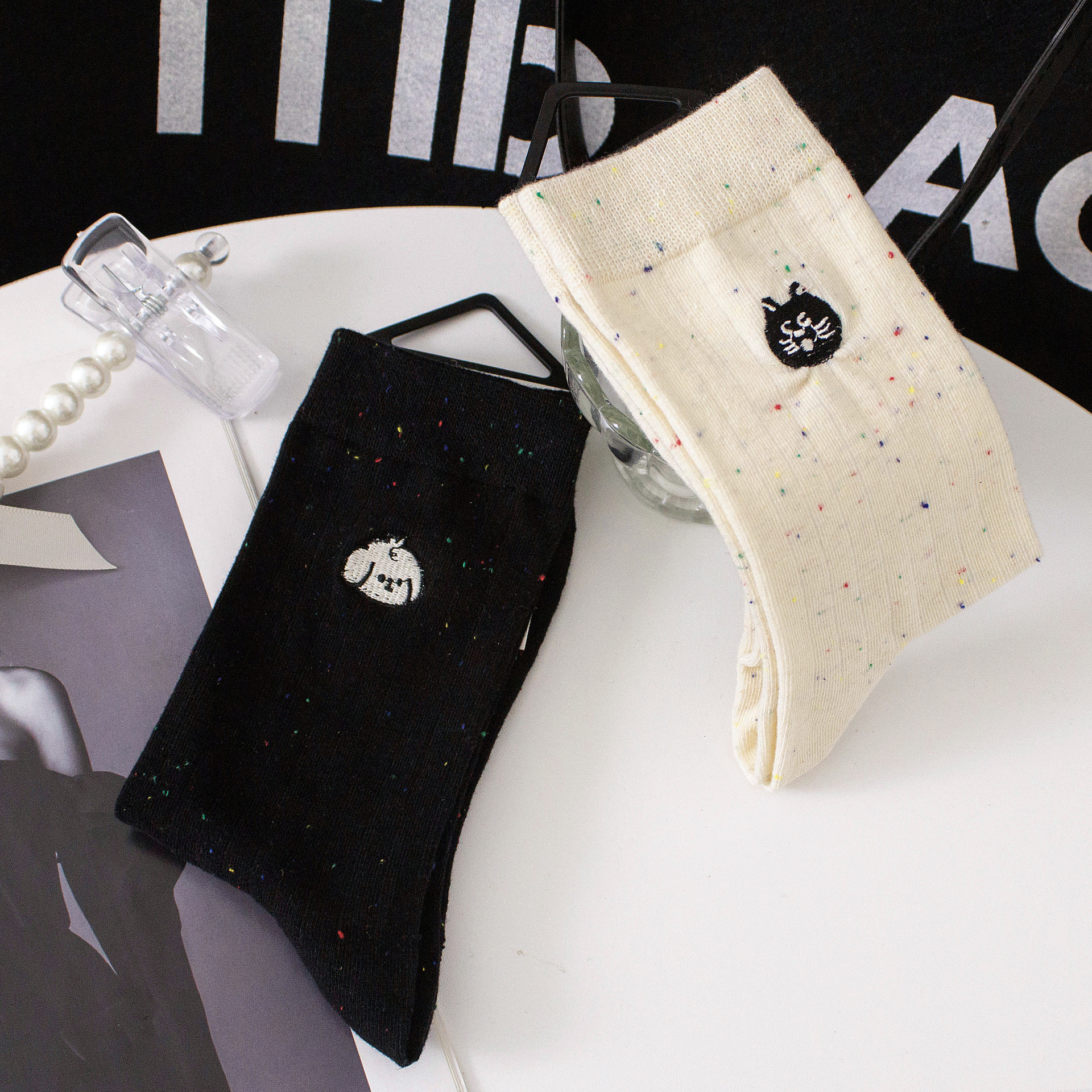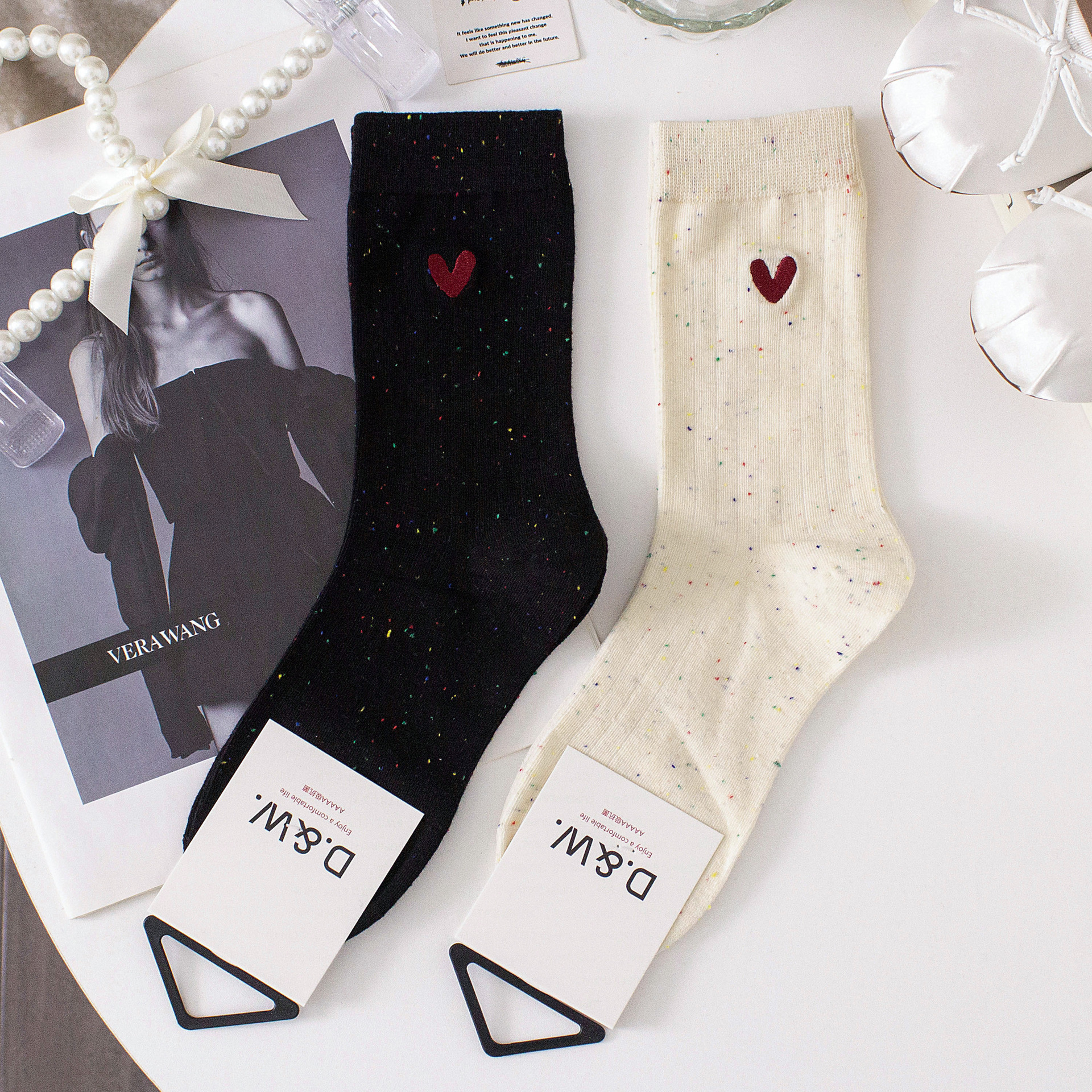 양말 여성용 도트 원사 긴 튜브 자수 봄과 가을 흑백 모리 귀여운 일본 스타일 여성 양말 Ins 트렌디 한 스포츠 대학 스타일스토어 가기