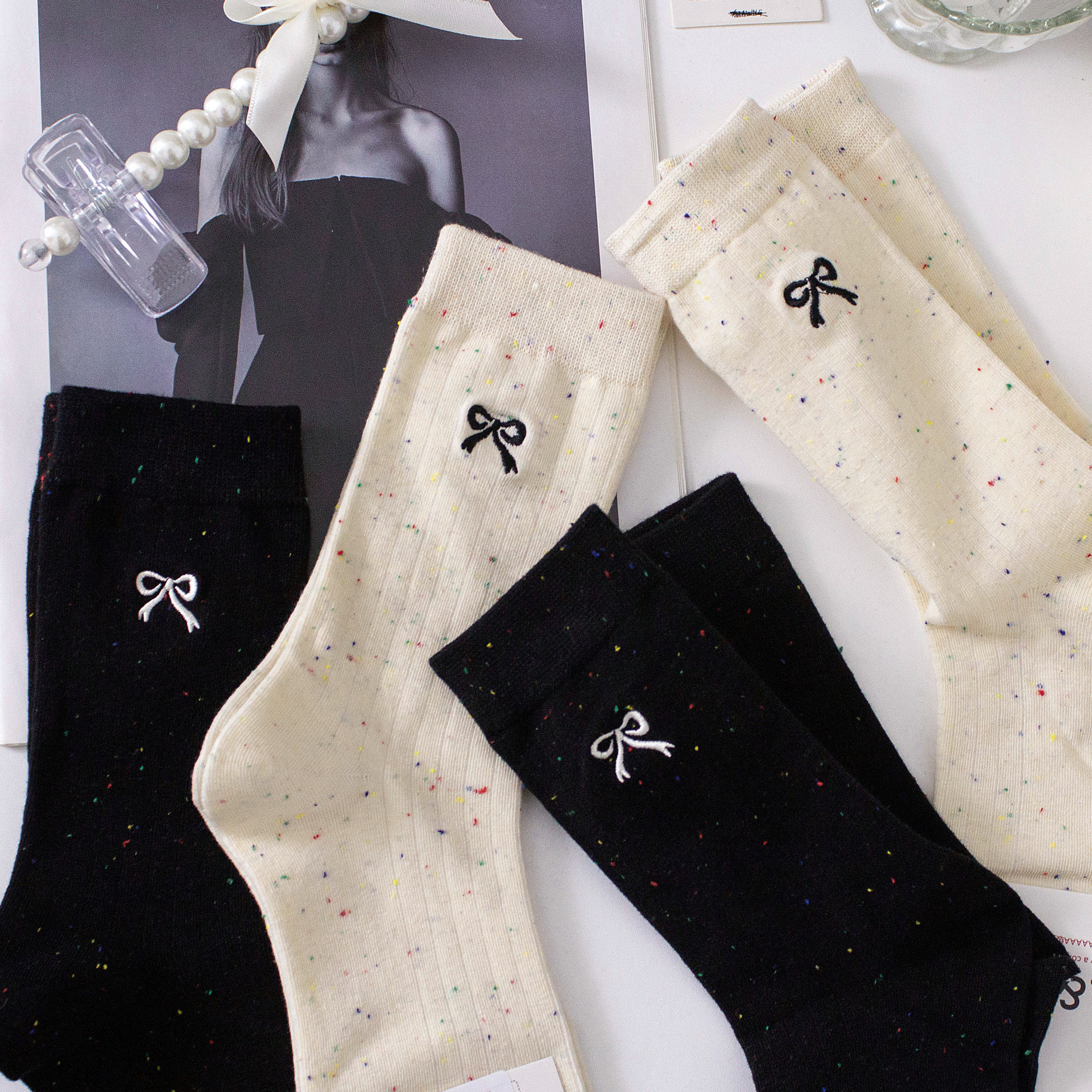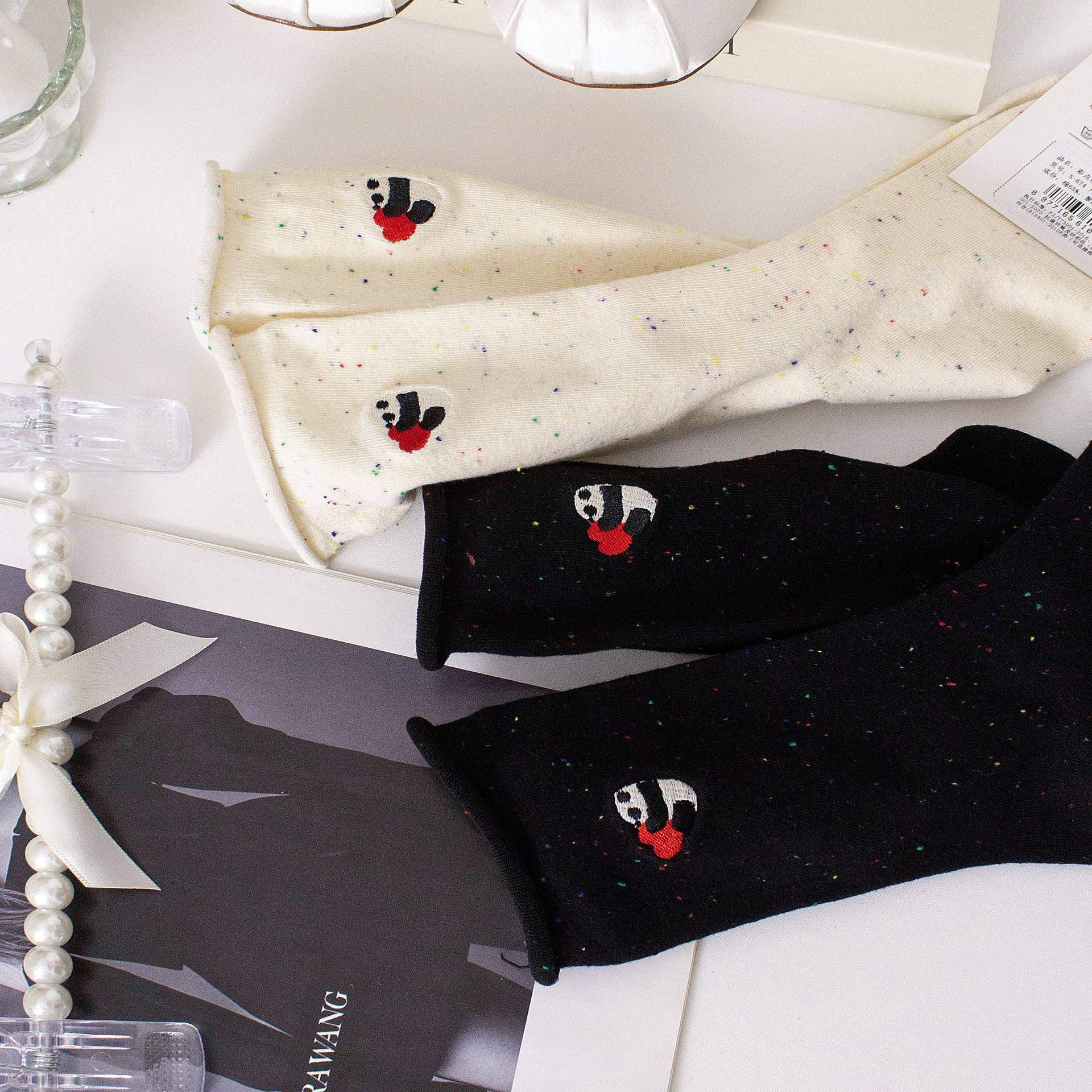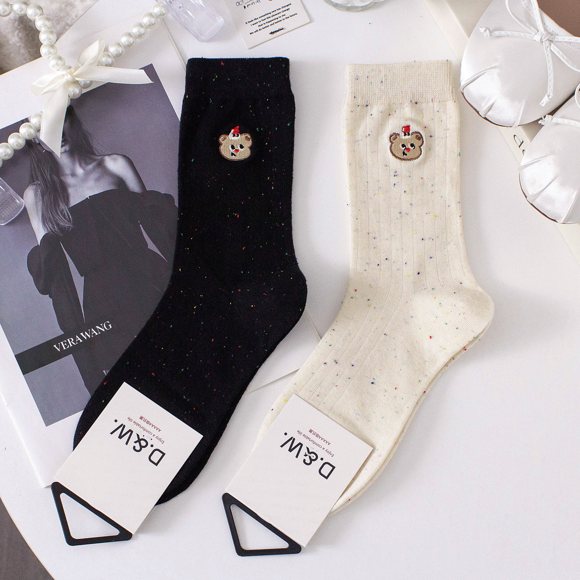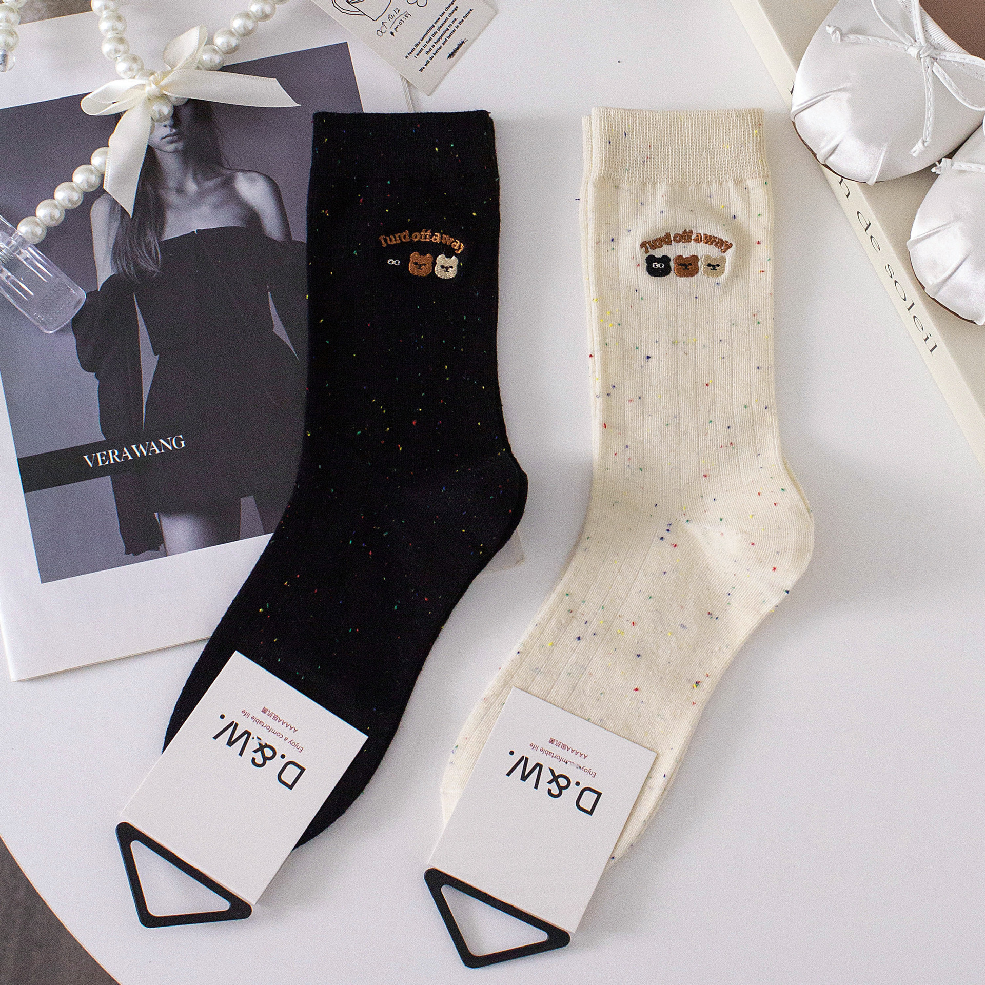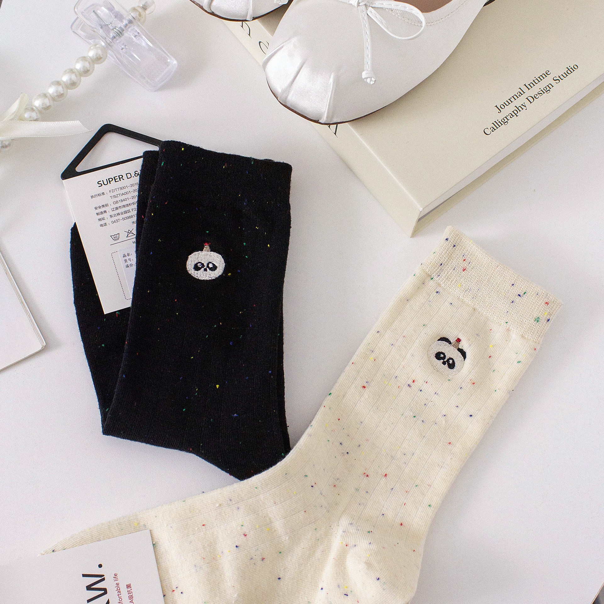 양말 여성용 도트 원사 긴 튜브 자수 봄과 가을 흑백 모리 귀여운 일본 스타일 여성 양말 Ins 트렌디 한 스포츠 대학 스타일스토어 가기