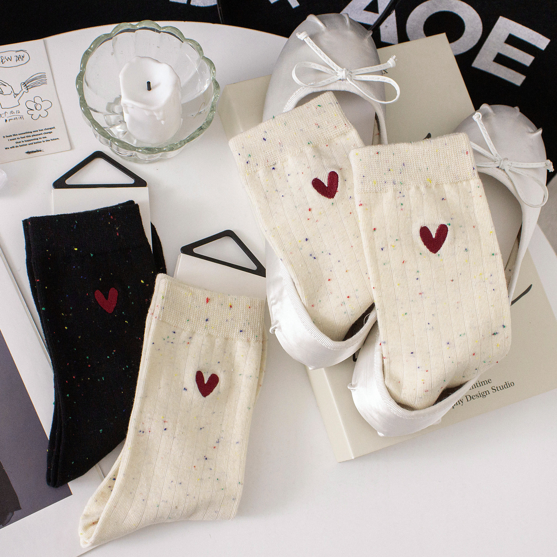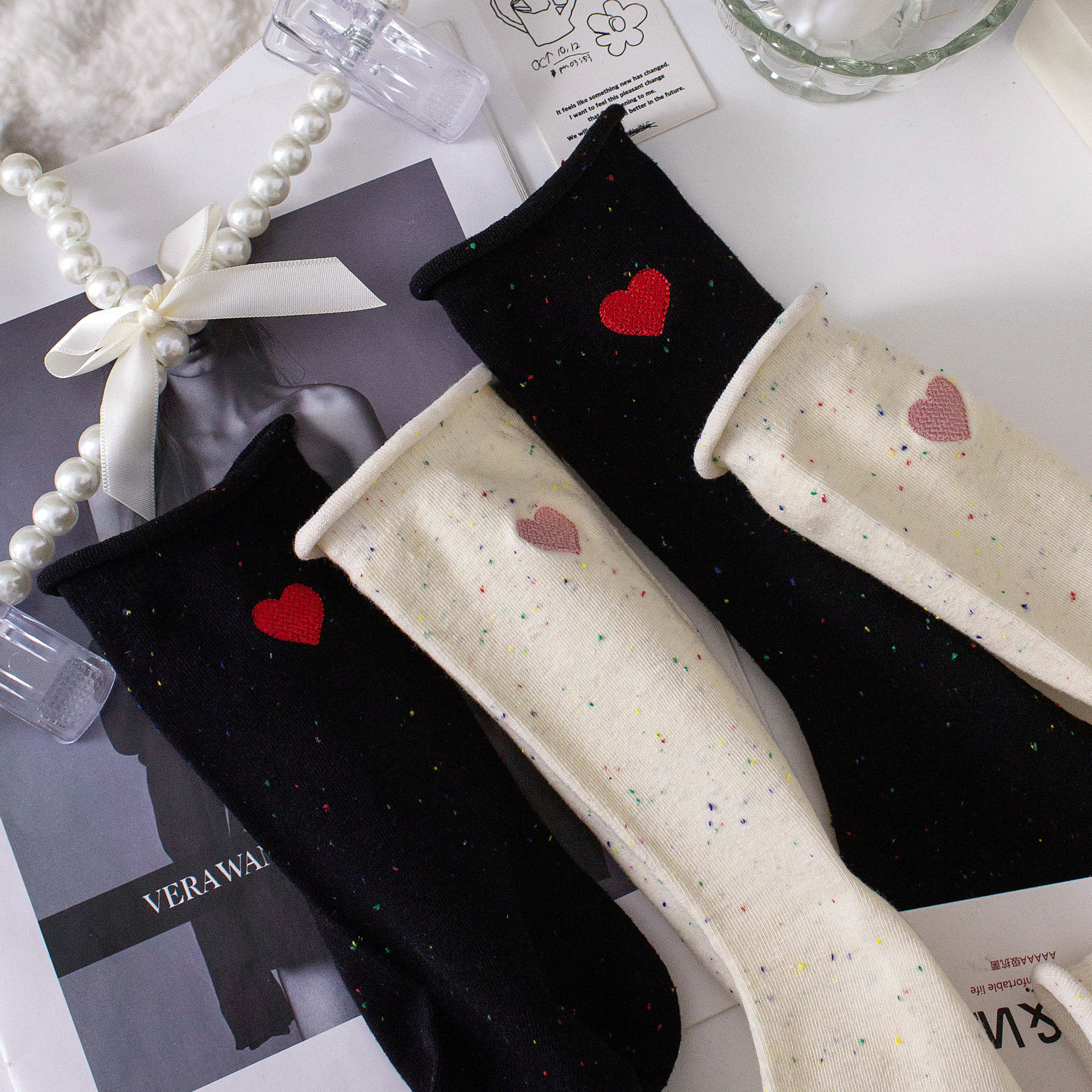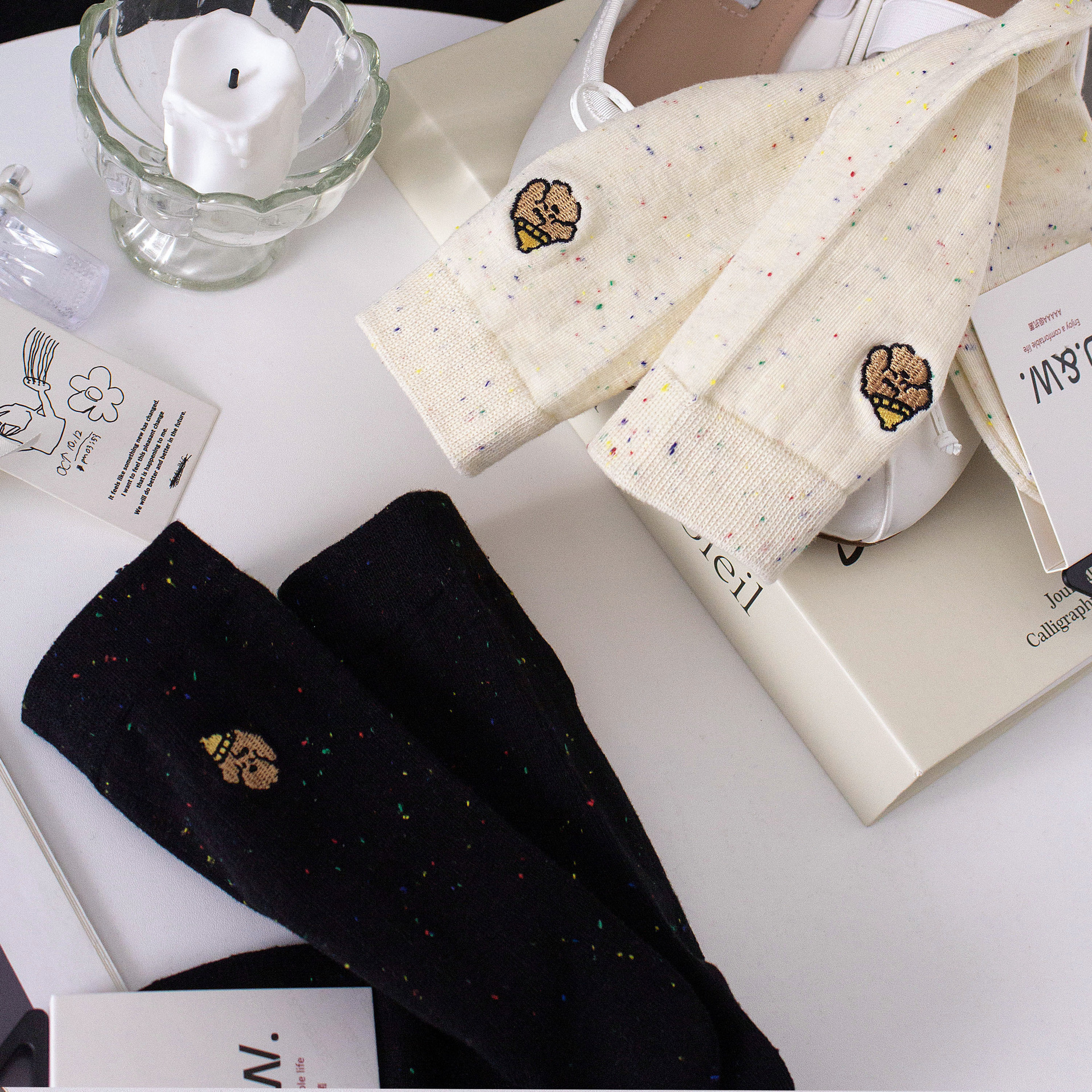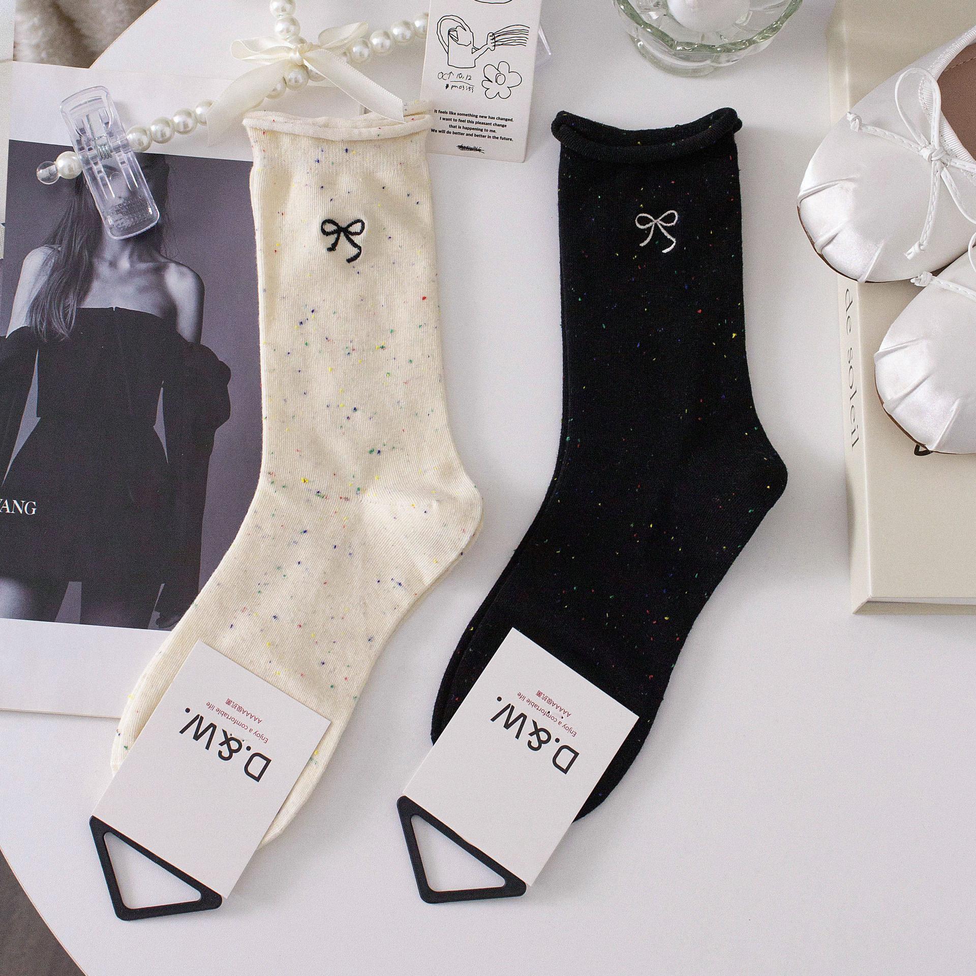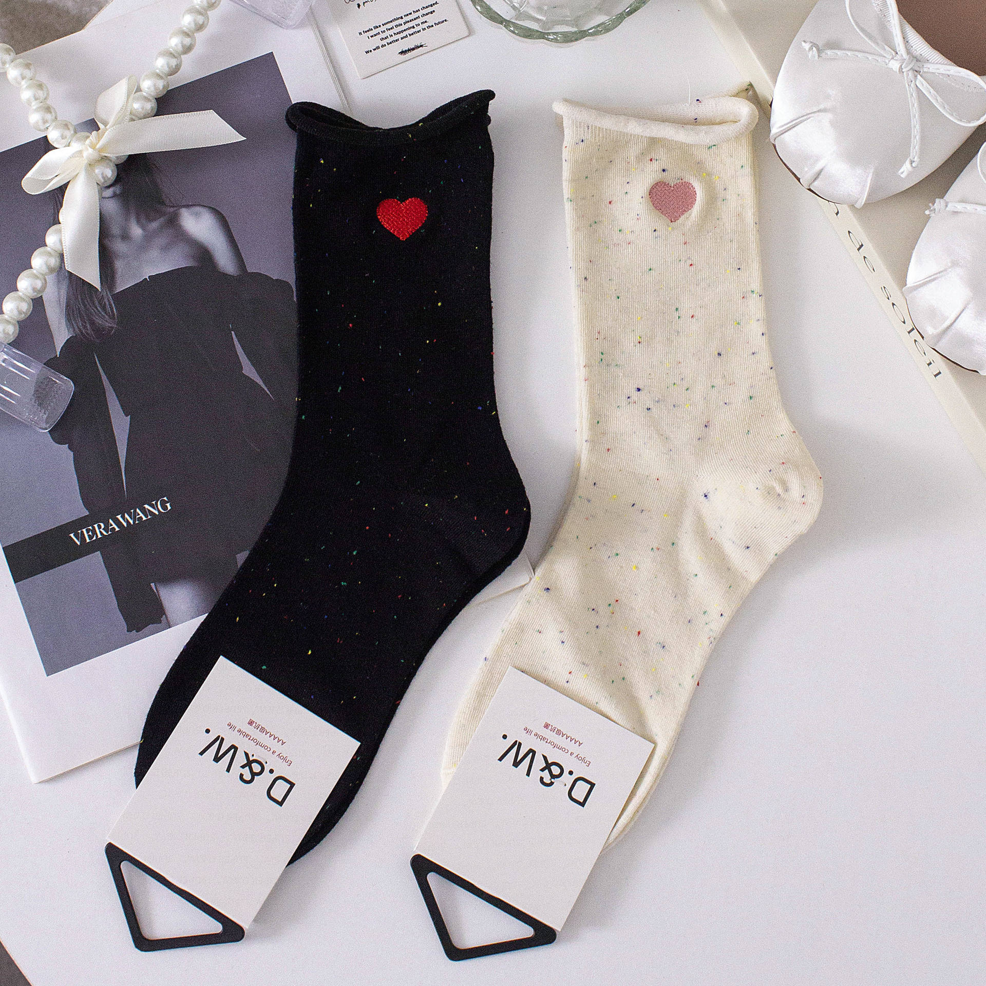 양말 여성용 도트 원사 긴 튜브 자수 봄과 가을 흑백 모리 귀여운 일본 스타일 여성 양말 Ins 트렌디 한 스포츠 대학 스타일스토어 가기