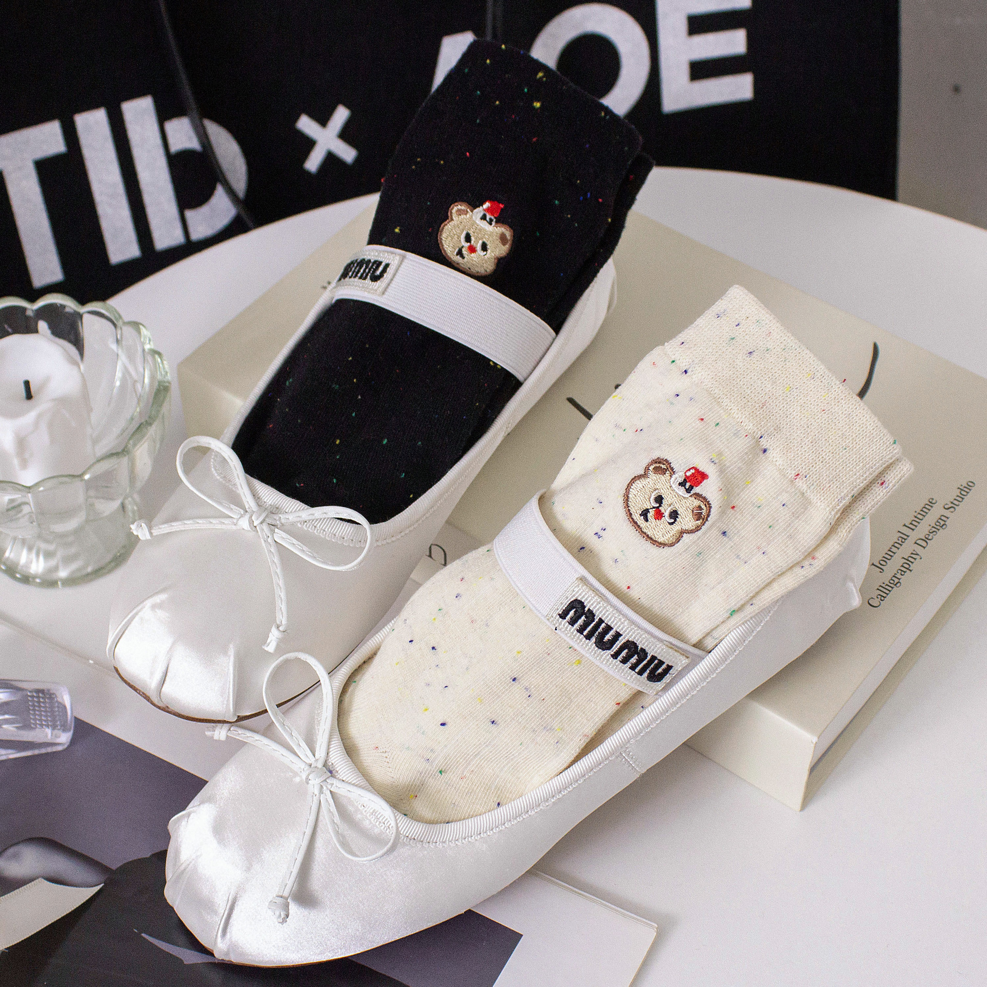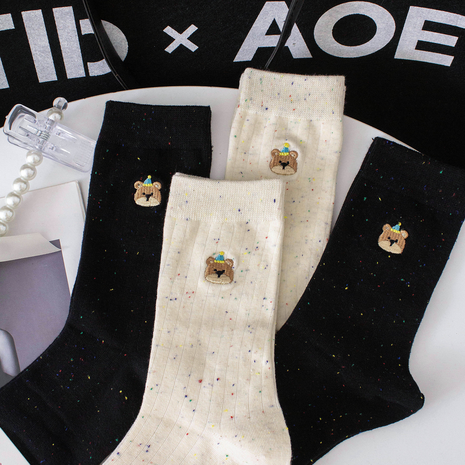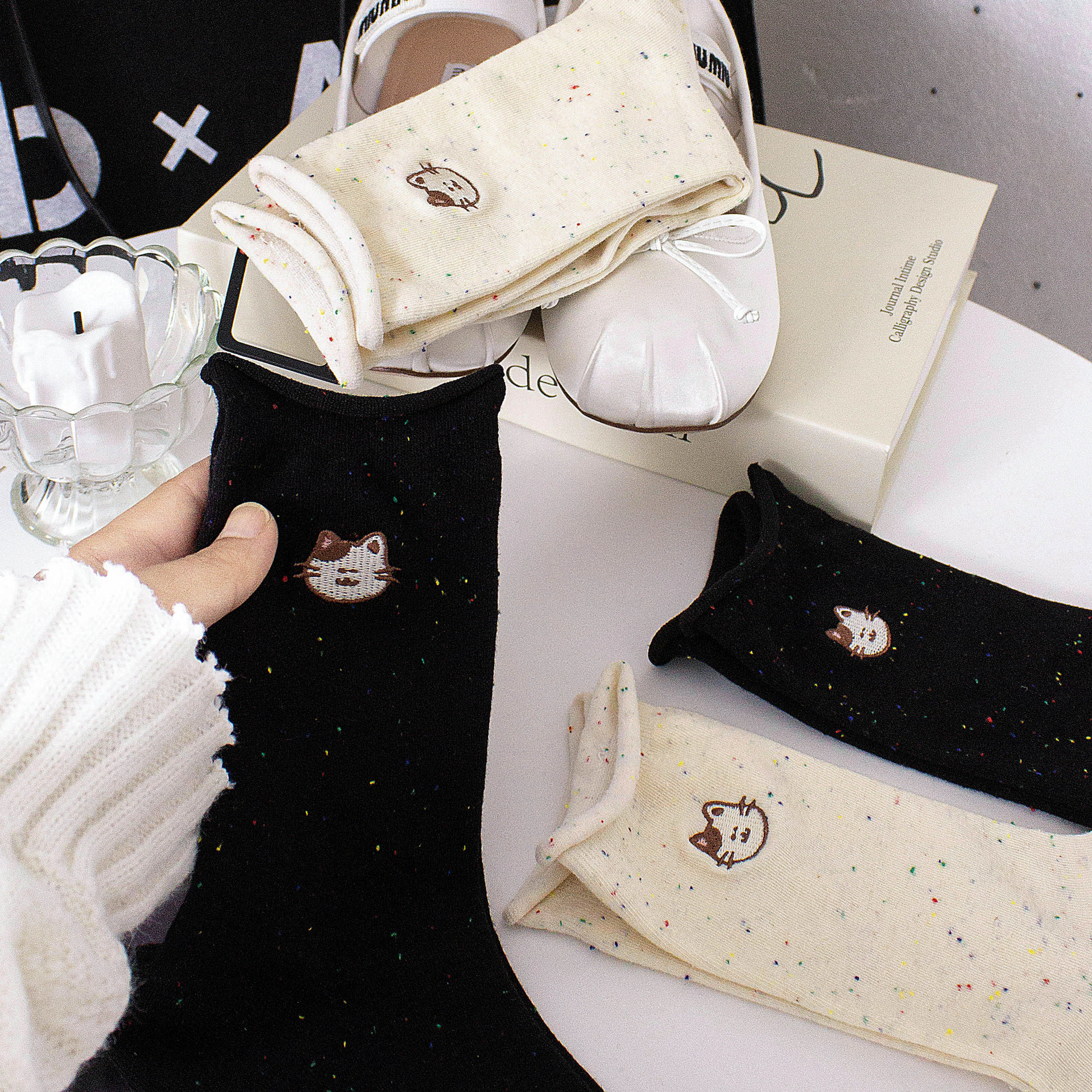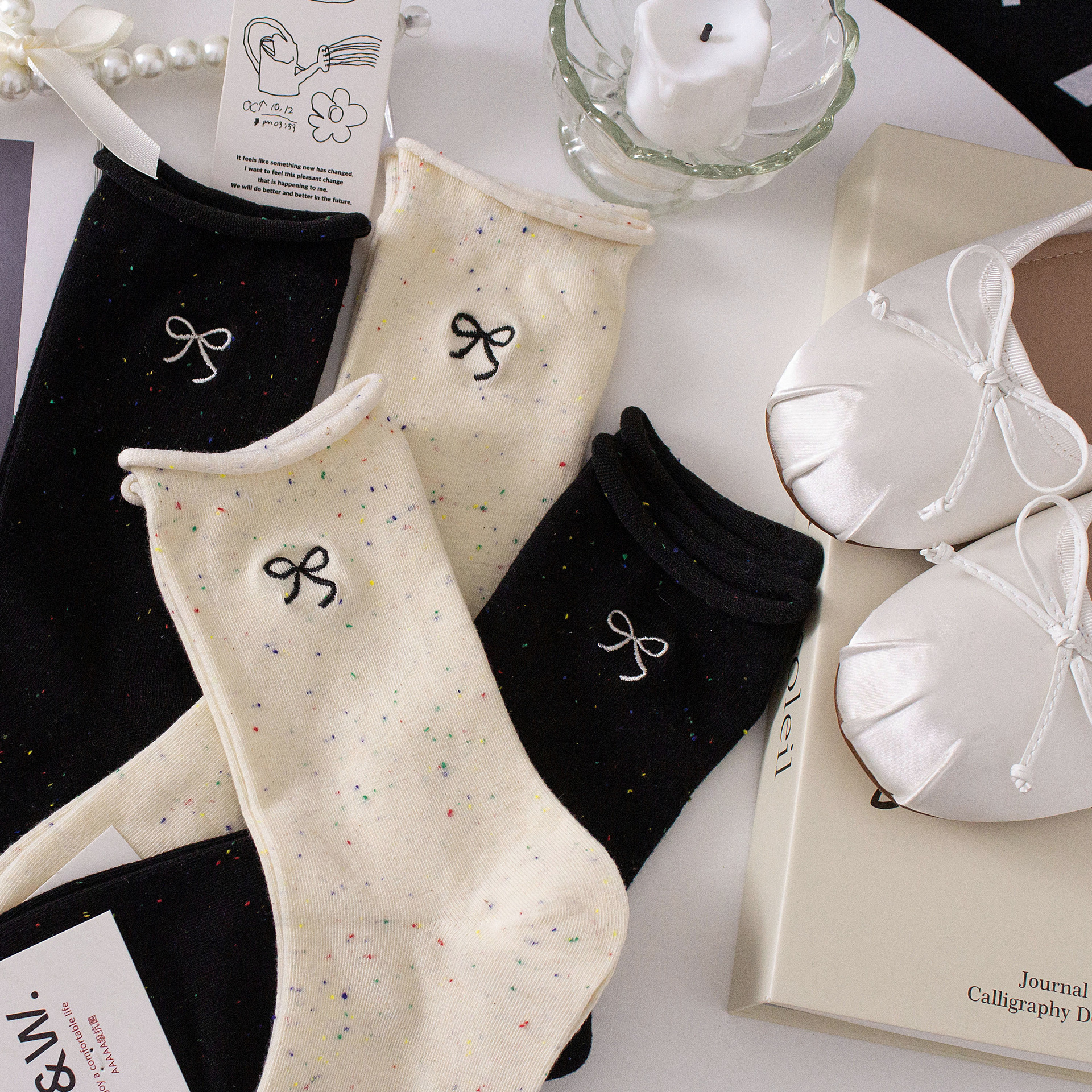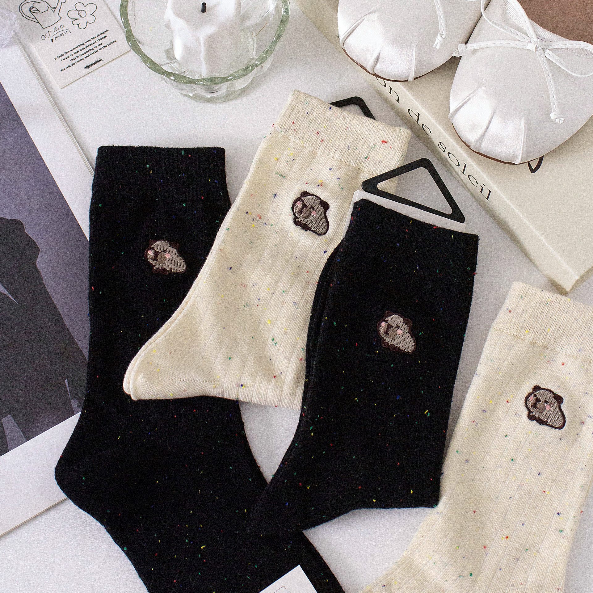 양말 여성용 도트 원사 긴 튜브 자수 봄과 가을 흑백 모리 귀여운 일본 스타일 여성 양말 Ins 트렌디 한 스포츠 대학 스타일스토어 가기