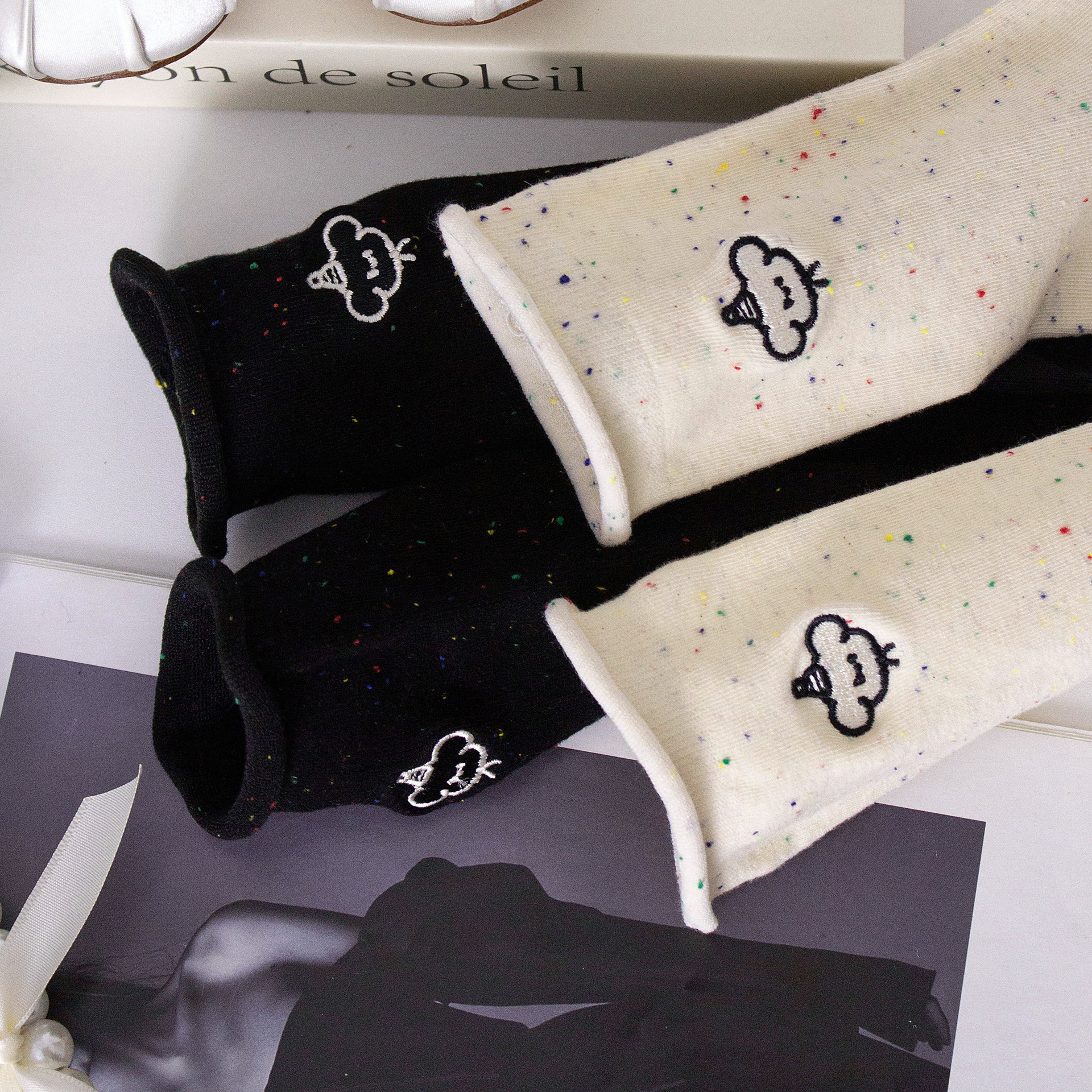 양말 여성용 도트 원사 긴 튜브 자수 봄과 가을 흑백 모리 귀여운 일본 스타일 여성 양말 Ins 트렌디 한 스포츠 대학 스타일
