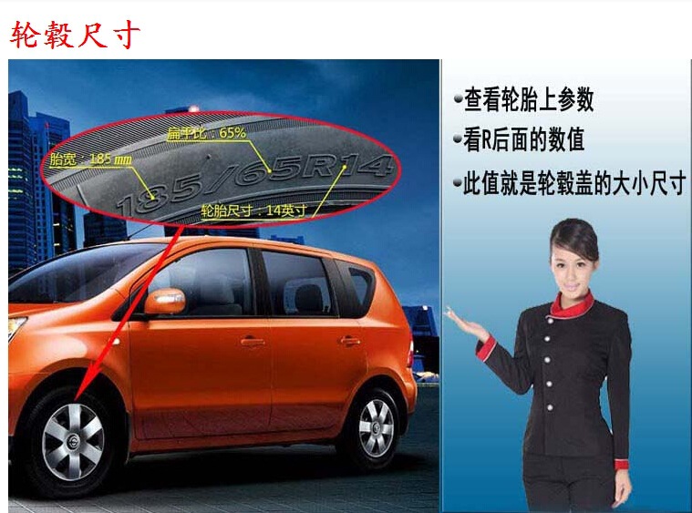 轮毂盖是塑料制品。本店的包装箱都为专用包装,但这并不能保证在运输过程中不发生破损现象,所以亲们在收到宝贝时一定要开箱验货签收,发现破损立刻与卖家联系,如果代收,家人收,或门卫室收货同等于本人签收。本店会在签收运单备注中写有“验货签收”字样。事后所发生的一切关于破损问题与本店无关!谢谢亲的合作与支持!