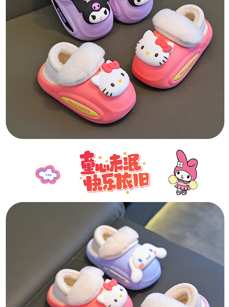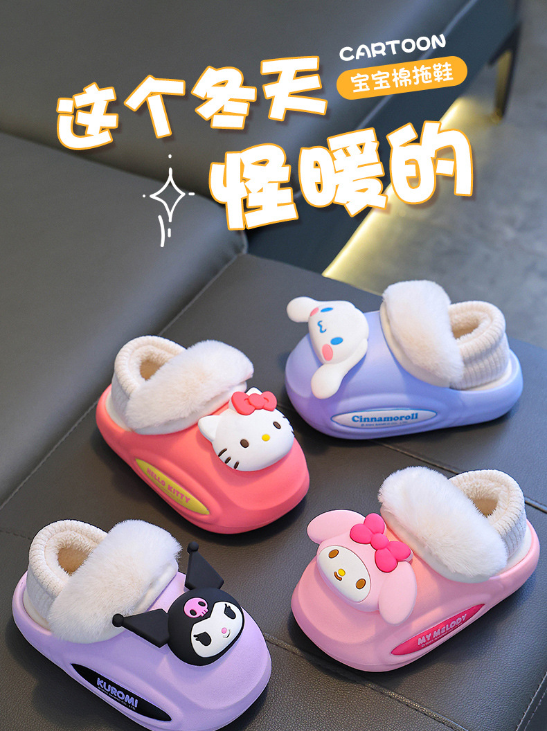 산리오 겨울 어린이 가방 뒤꿈치 코튼 신발 쿨로 미 따뜻한 기모 부모-자식 방수 아기 면화 슬리퍼