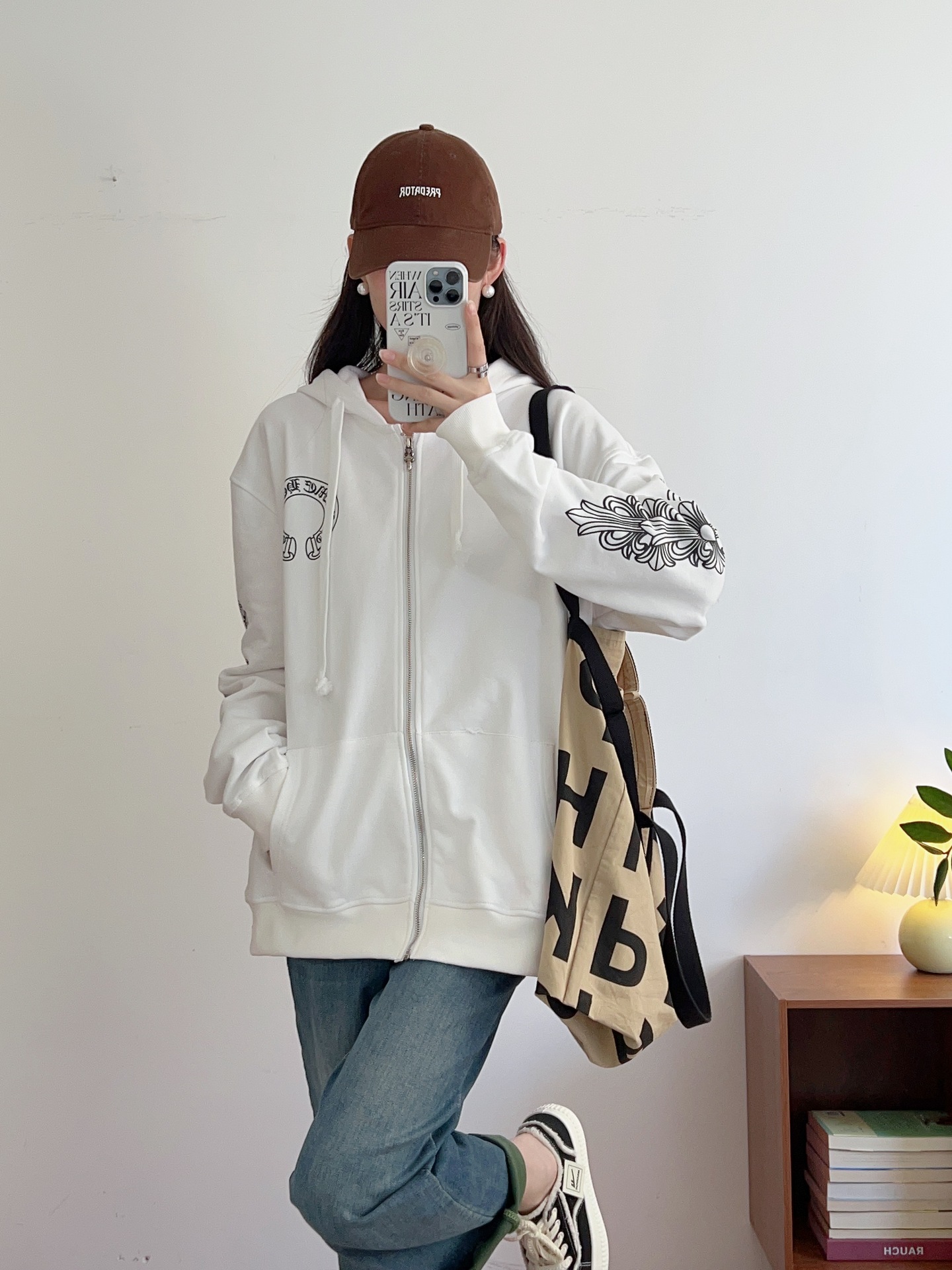 24 조수 브랜드 올바른 버전 크롬 하트 스크롤 로고 간단한 클래식 후드 스웨터 남성과 여성스토어 가기