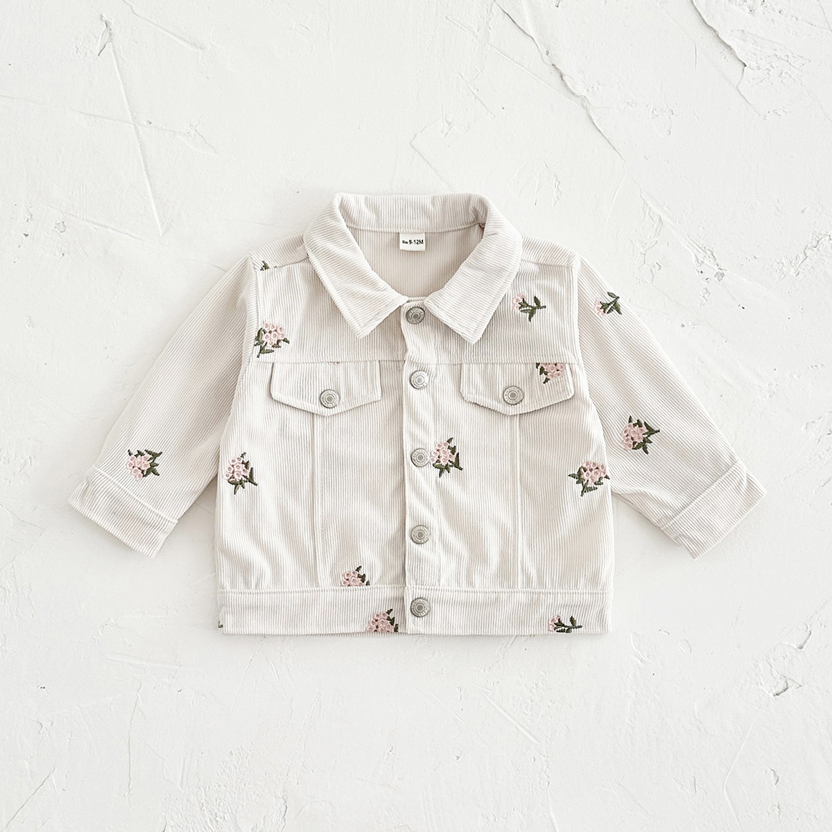 한국 스타일 어린이 아기 꽃 자수 코듀로이 재킷 봄과 가을 유아 아카데미 스타일 재킷 크로스 테두리