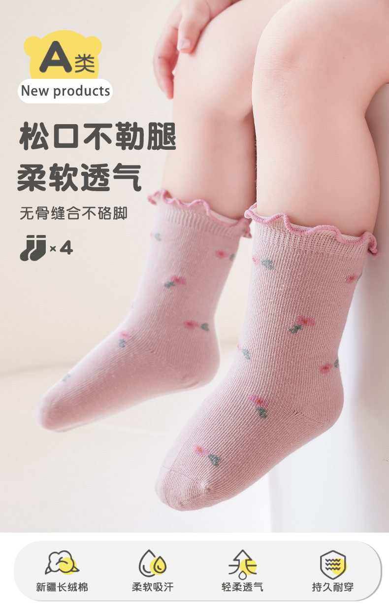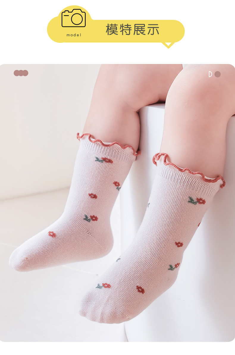 아기 양말 도매 봄과 가을 뼈없는 빗질면 아기 중간 튜브 양말 가을 소녀 작은 꽃 나무 귀 양말스토어 가기