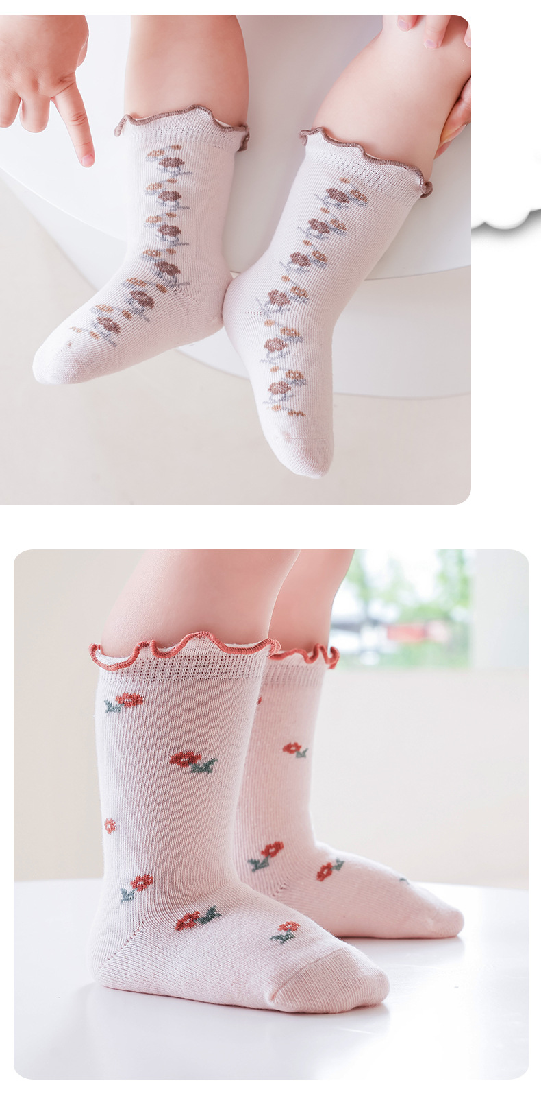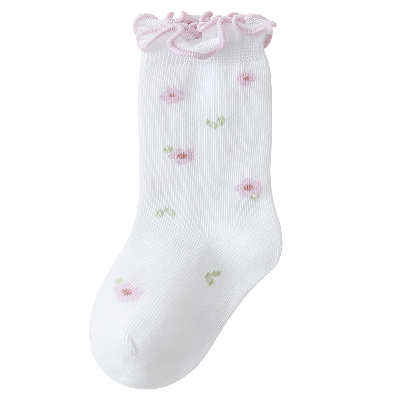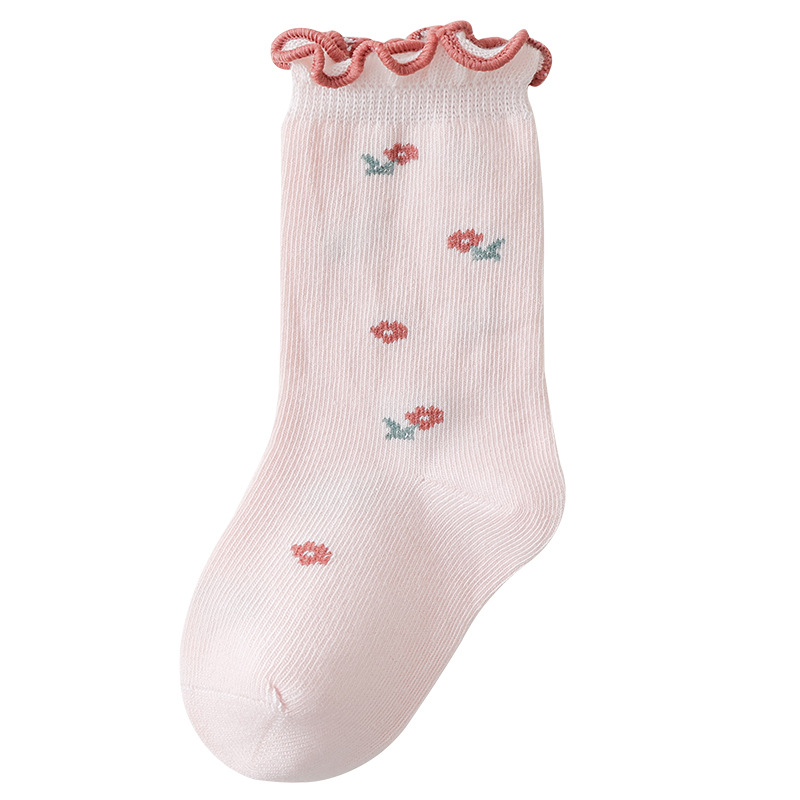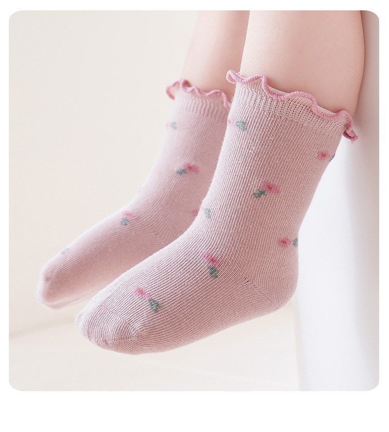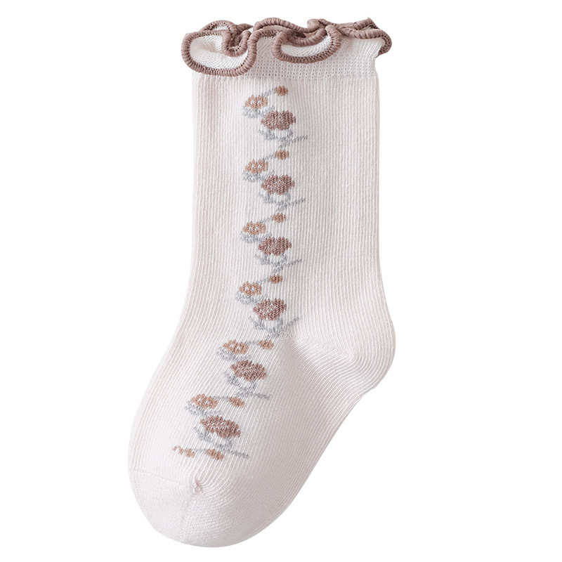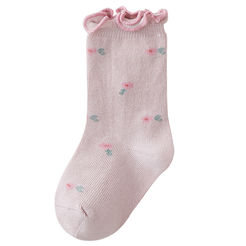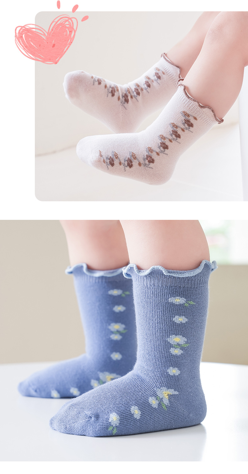아기 양말 도매 봄과 가을 뼈없는 빗질면 아기 중간 튜브 양말 가을 소녀 작은 꽃 나무 귀 양말
