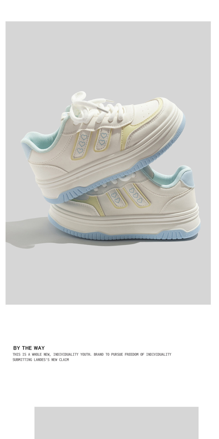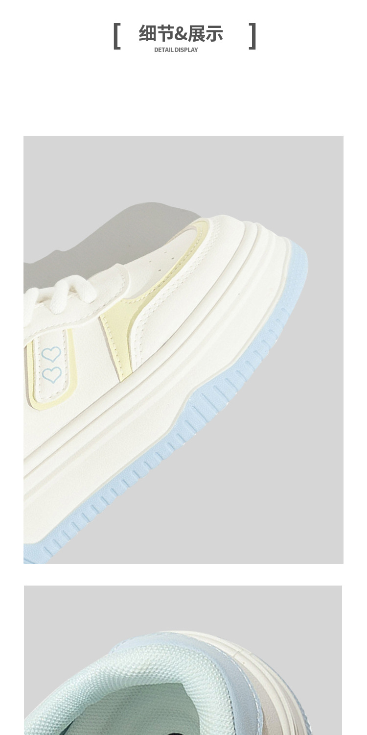 베일 한국 스타일 캐주얼 가죽 통기성 화이트 슈즈 2025 가을 다용도 캐주얼 두꺼운 밑창 빵신발 보드화스토어 가기