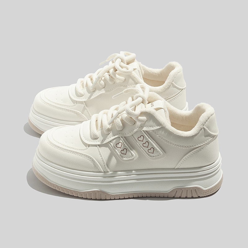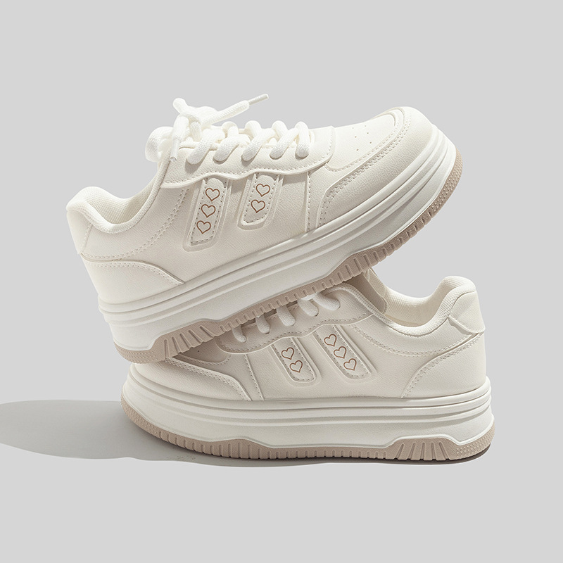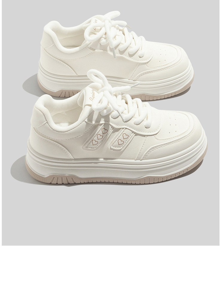 베일 한국 스타일 캐주얼 가죽 통기성 화이트 슈즈 2025 가을 다용도 캐주얼 두꺼운 밑창 빵신발 보드화