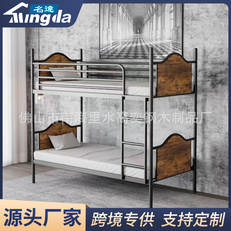 아마존 철 강철 나무 침대 더블 레이어 철 프레임 침대 다기능 이동식 단층 침대 학생 침대