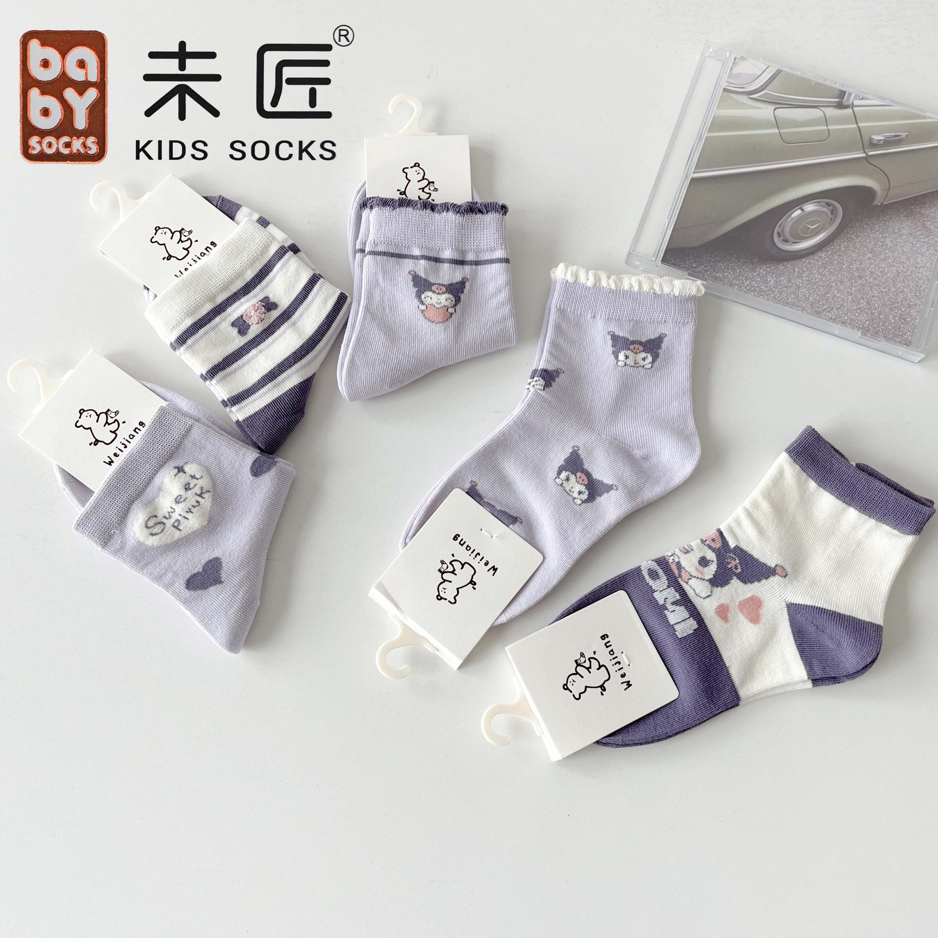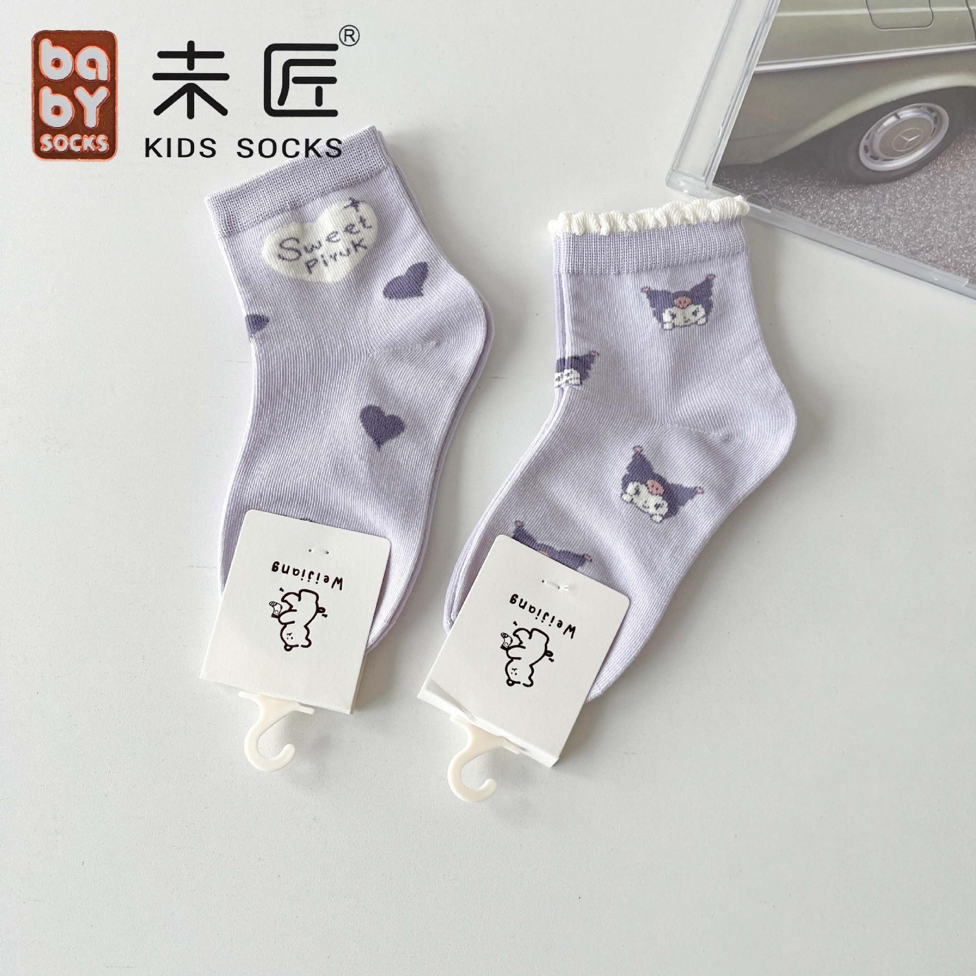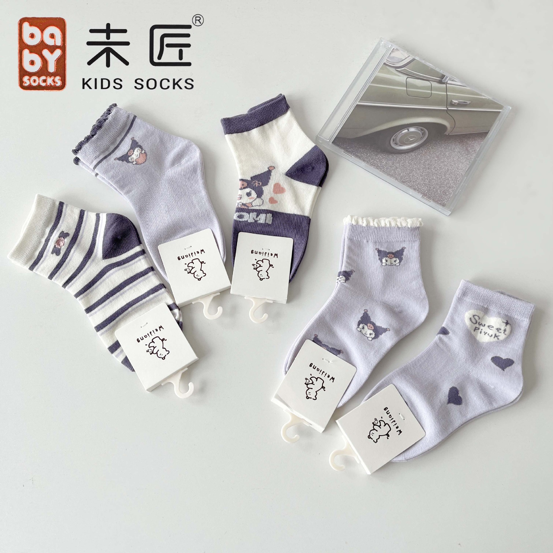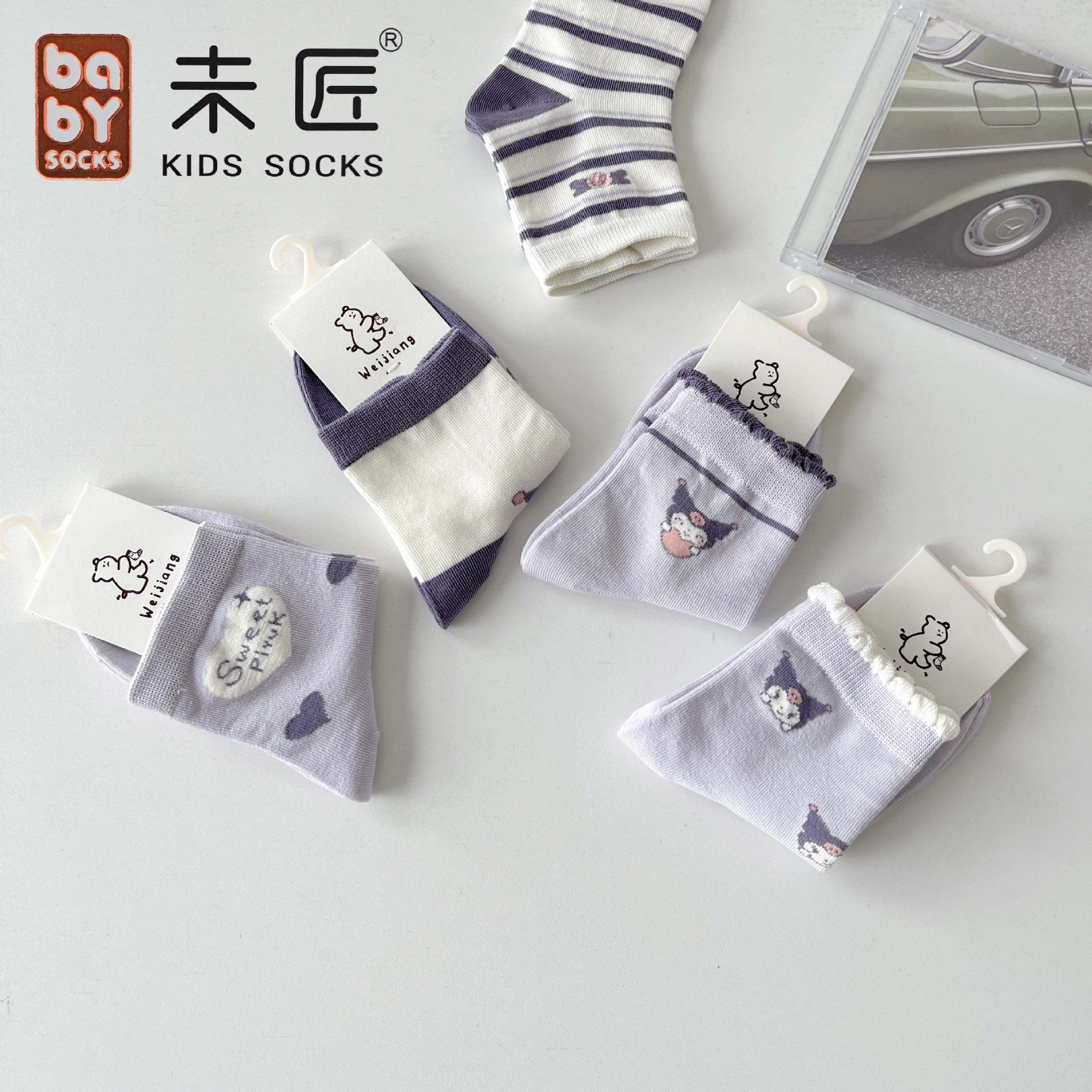 미제 어린이 양말 가을과 겨울 귀여운 만화 줄무늬 레이스 뼈없는 면 양말 중간 튜브 여성의 보물 중견 어린이 올매치