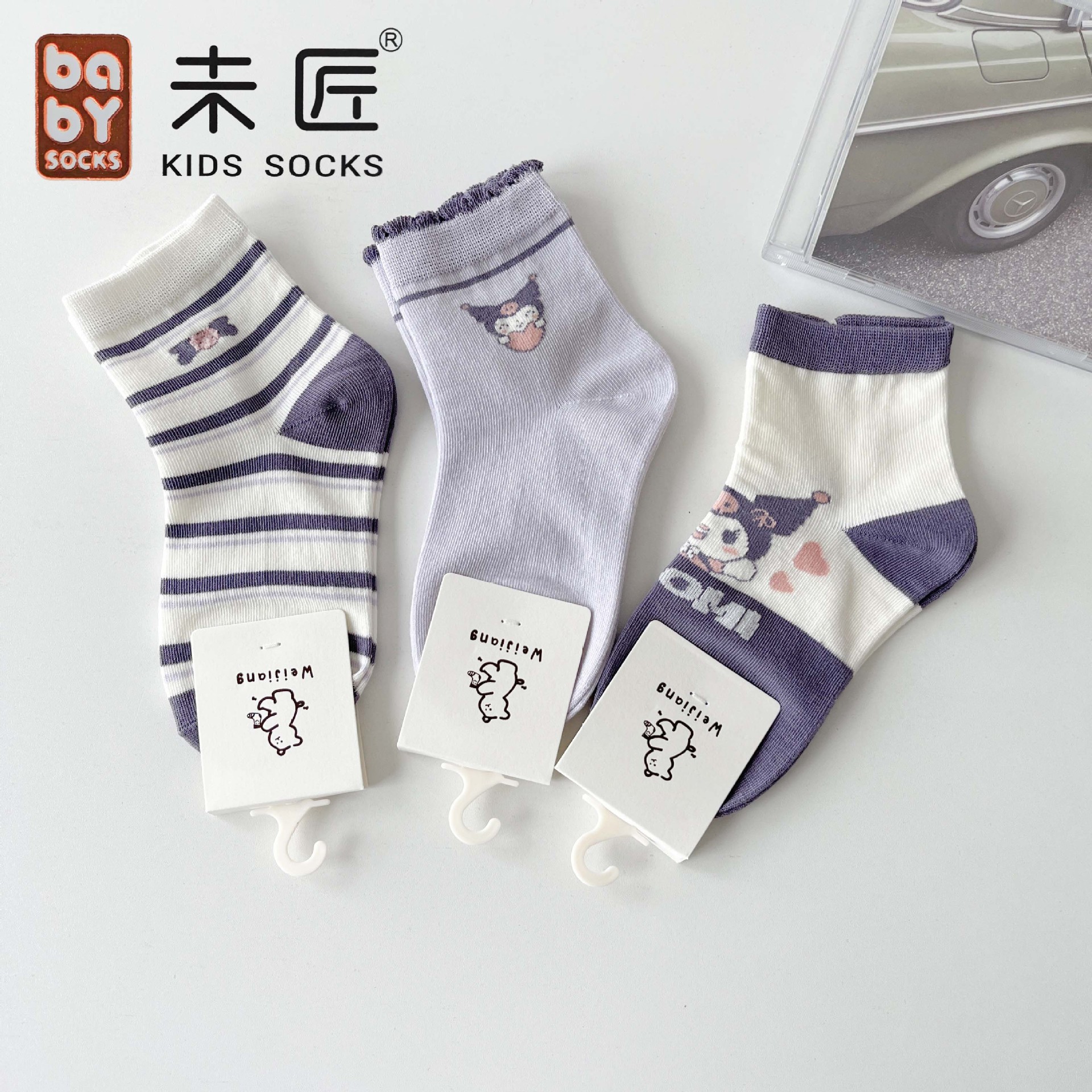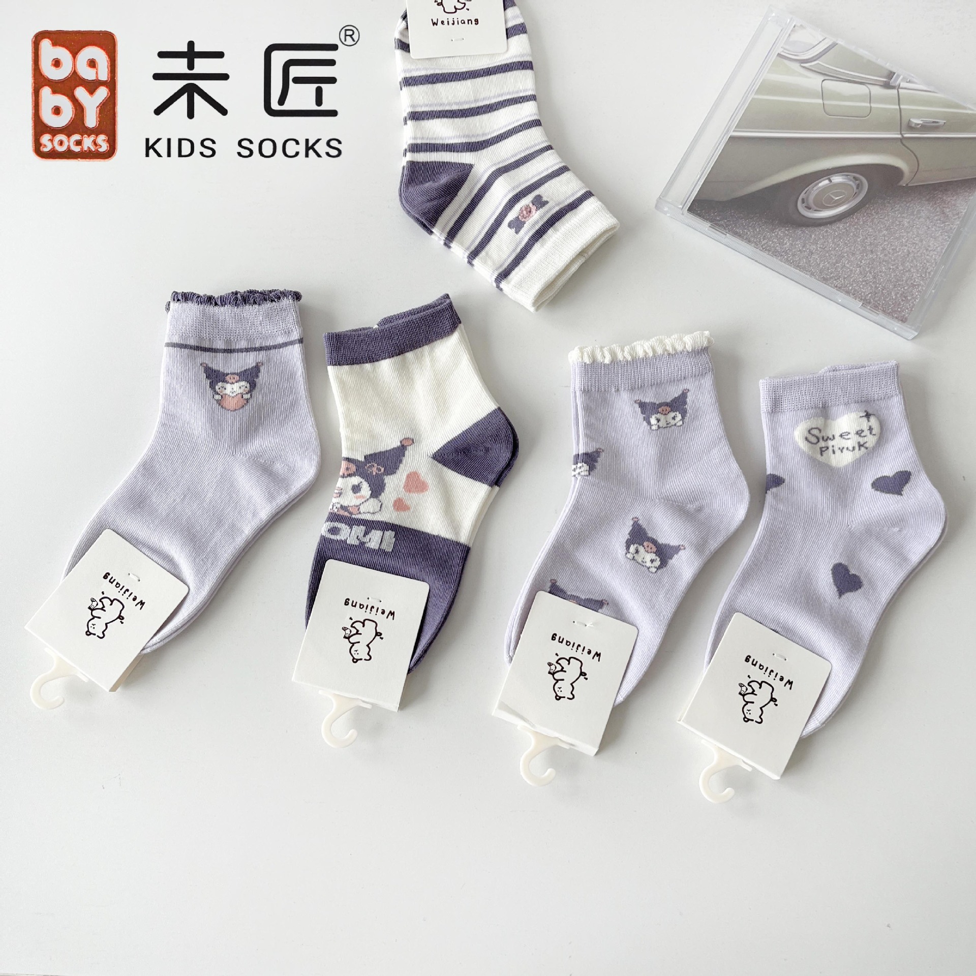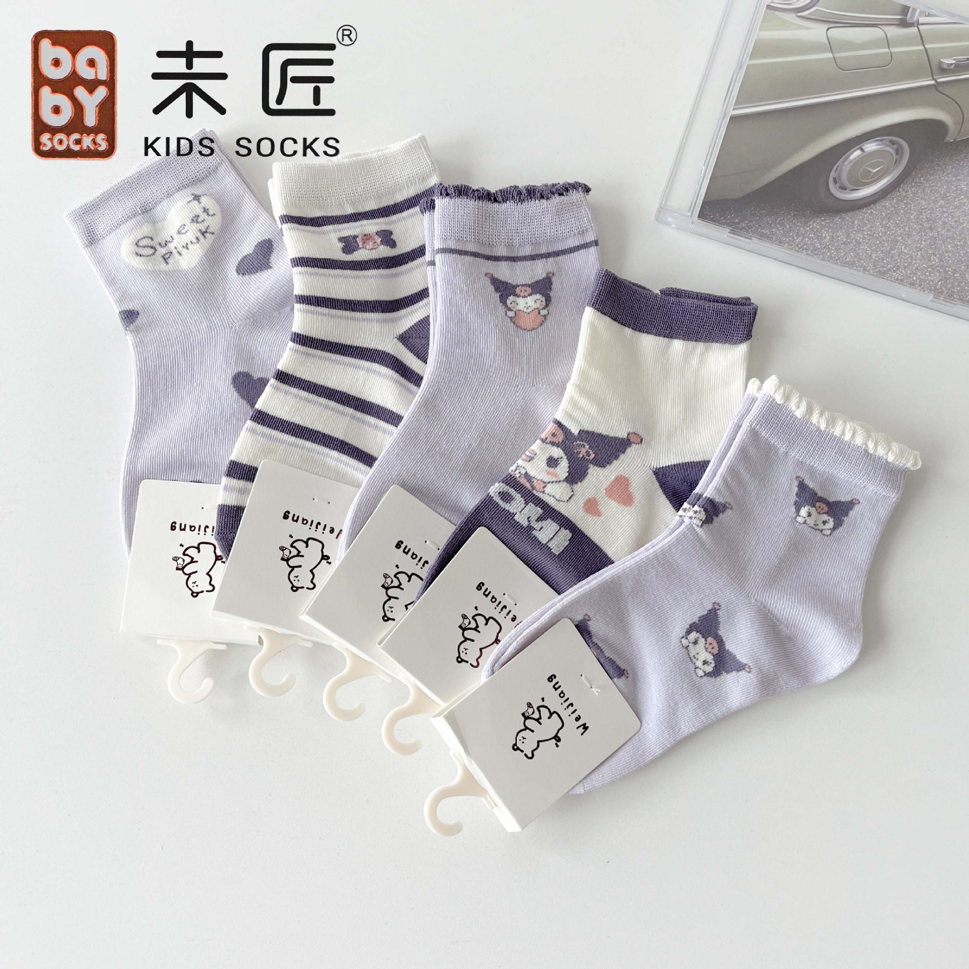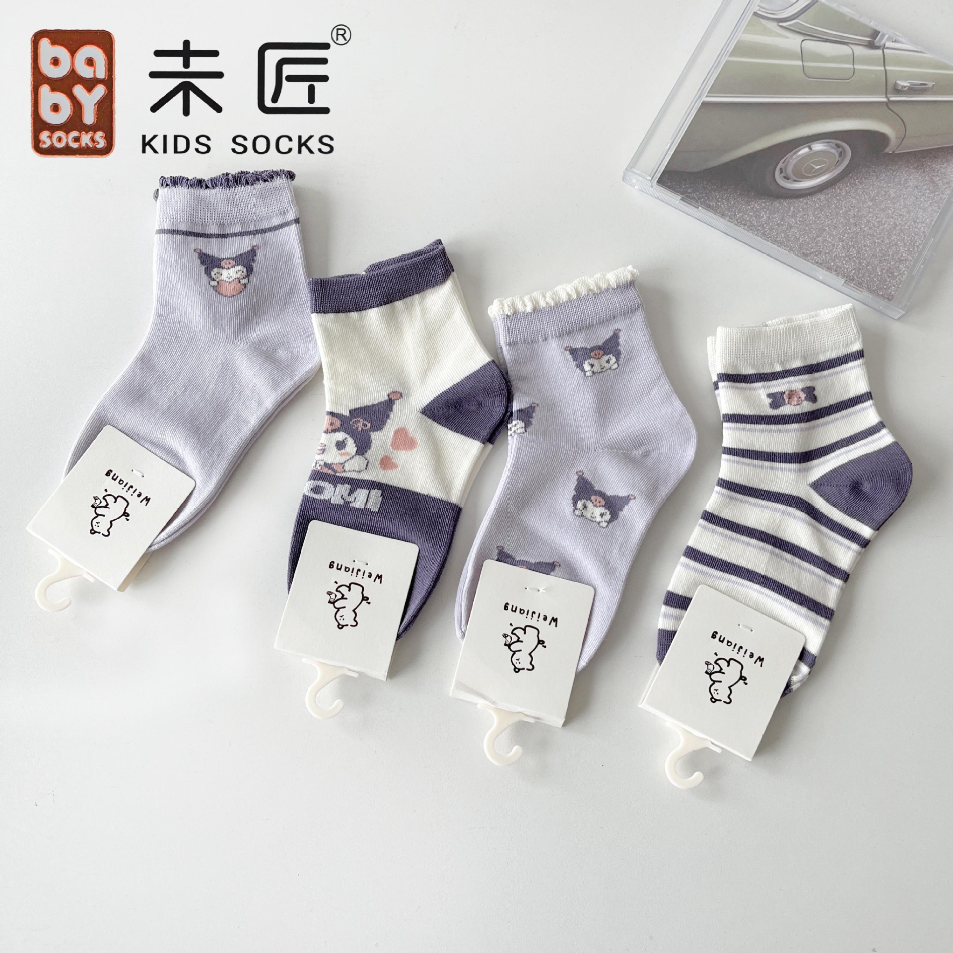 미제 어린이 양말 가을과 겨울 귀여운 만화 줄무늬 레이스 뼈없는 면 양말 중간 튜브 여성의 보물 중견 어린이 올매치
