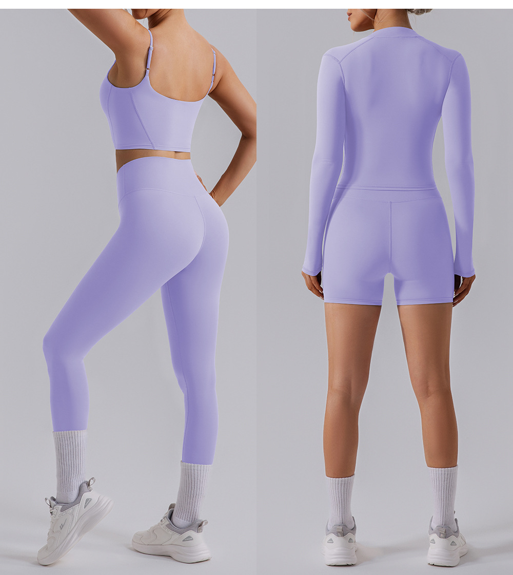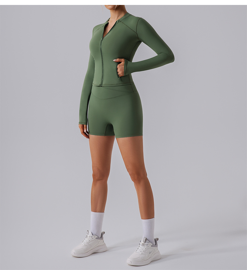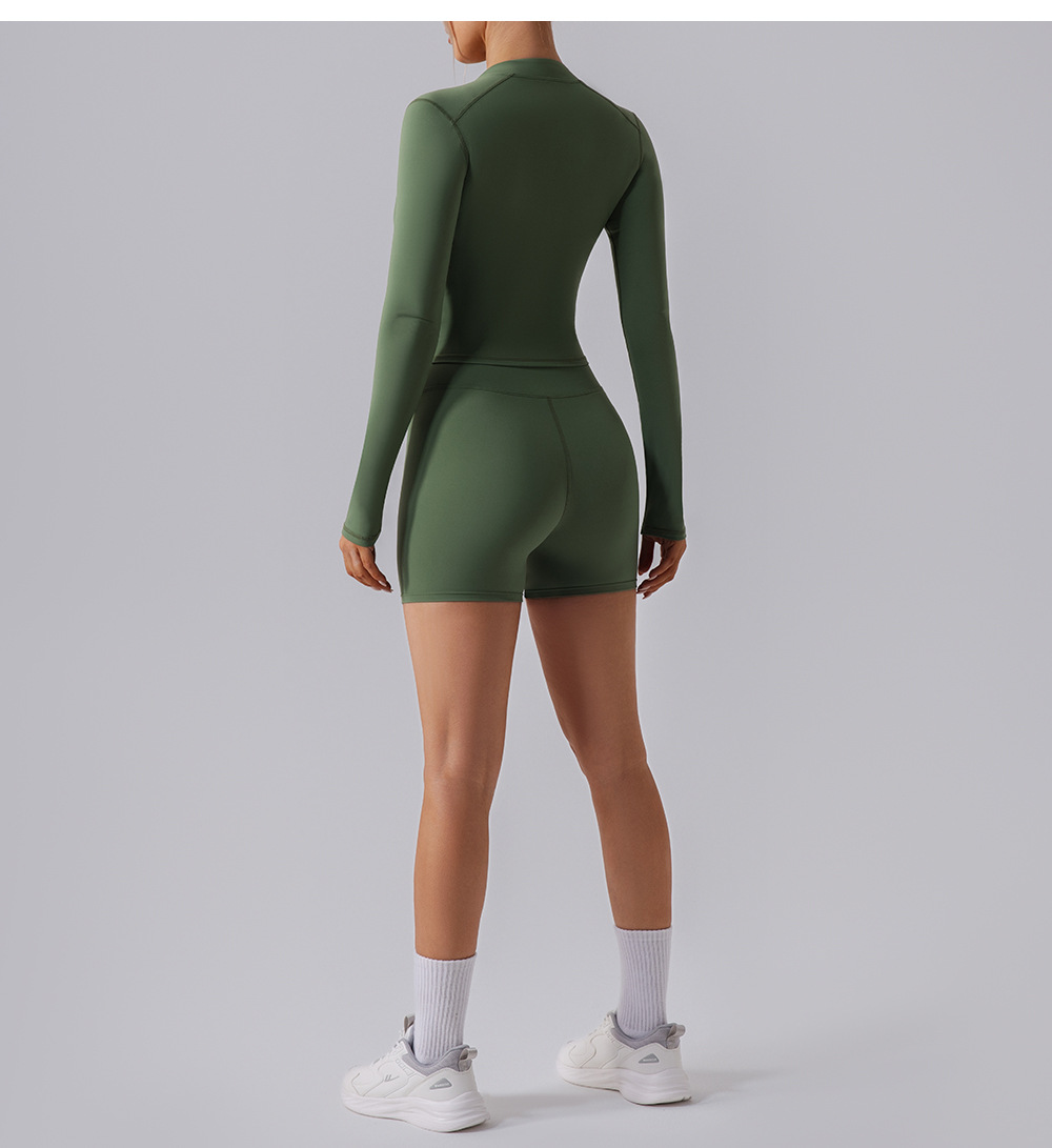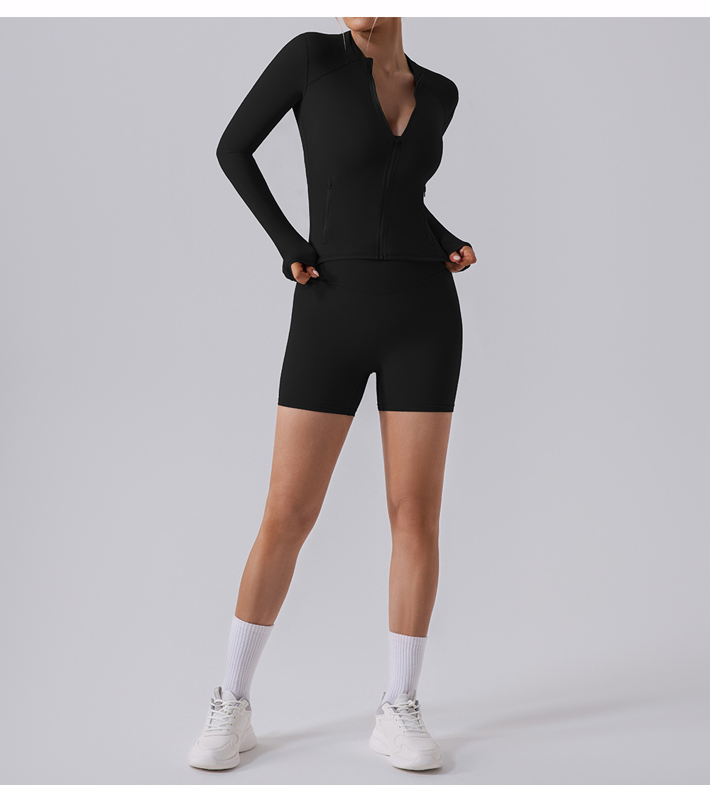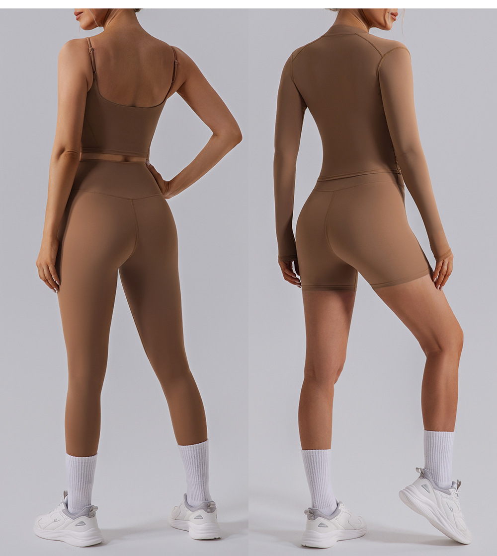 가을과 겨울 벌거 벗은 뷰티 백 요가 의류 세트 높은 허리 타이트 요가 긴 소매 자켓 피트니스 의류 스포츠 세트 여성