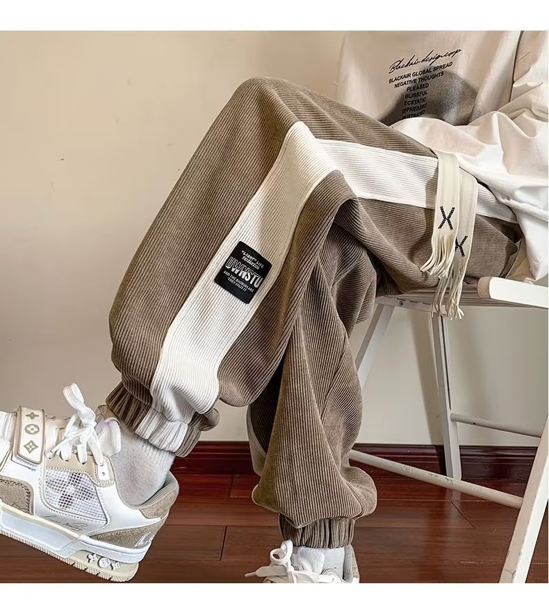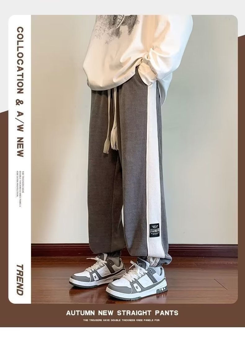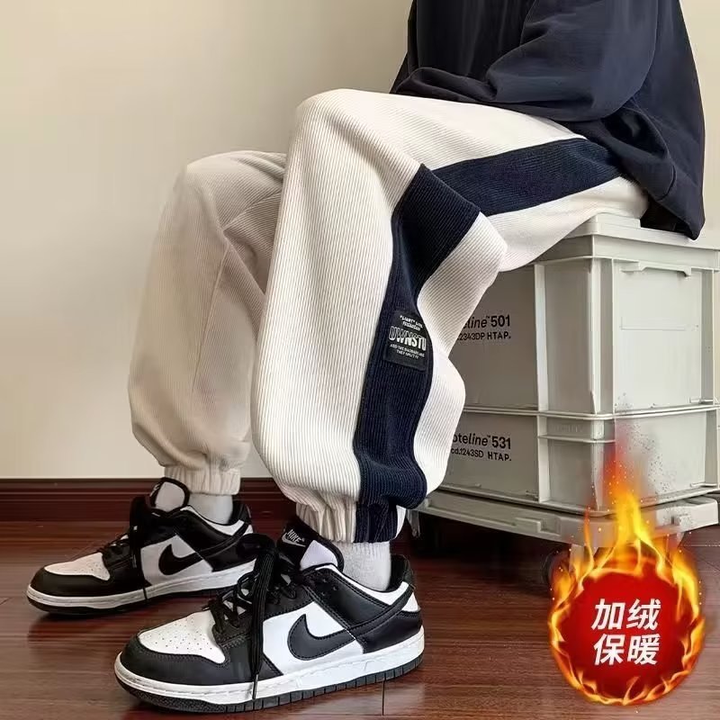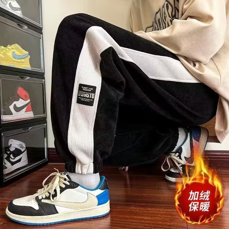 가을과 겨울 새로운 올 매치 다리 바지 남자 기모 캐주얼 바지 스포츠 바지 루즈 인 코듀로이 바지스토어 가기