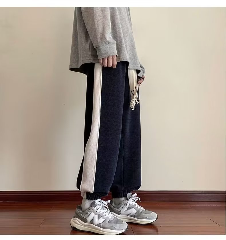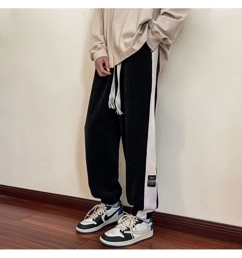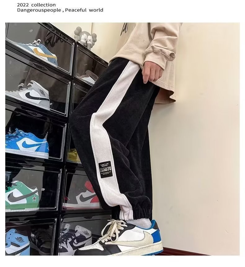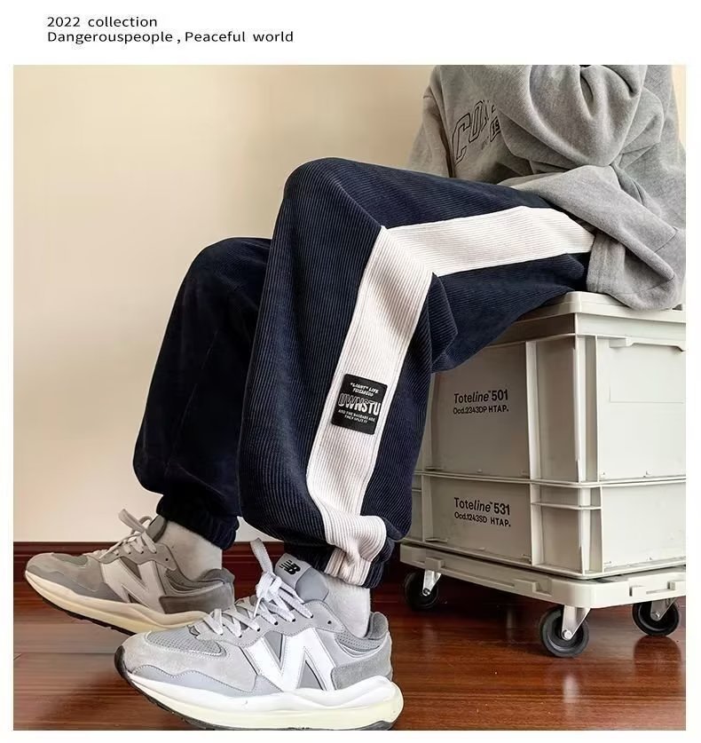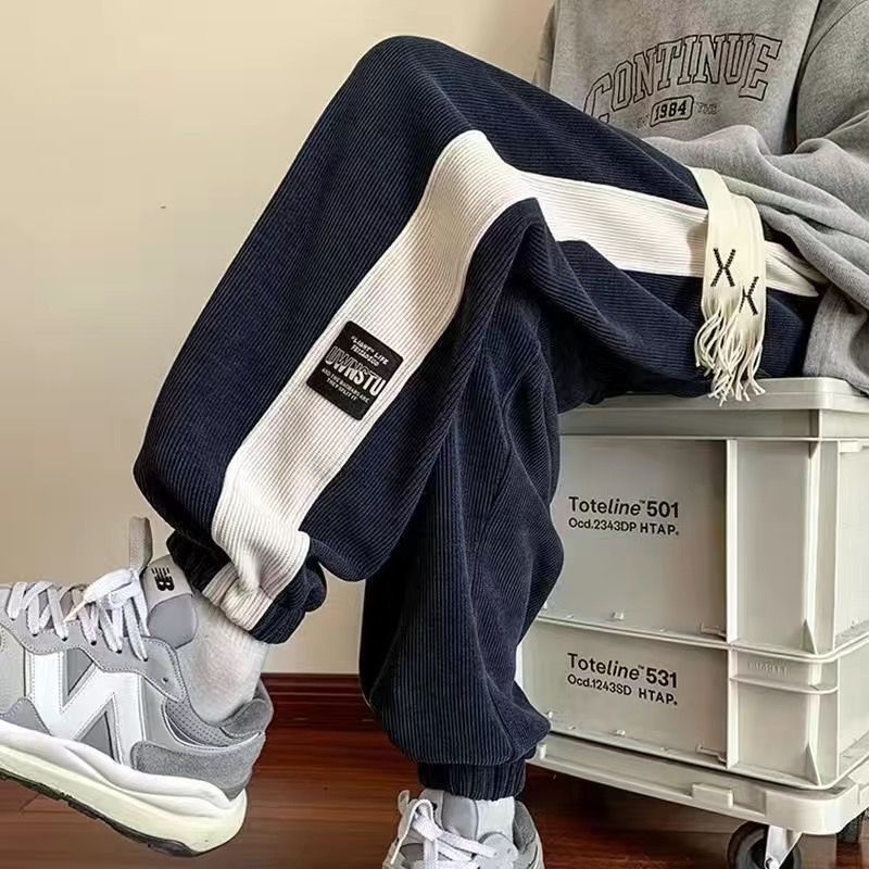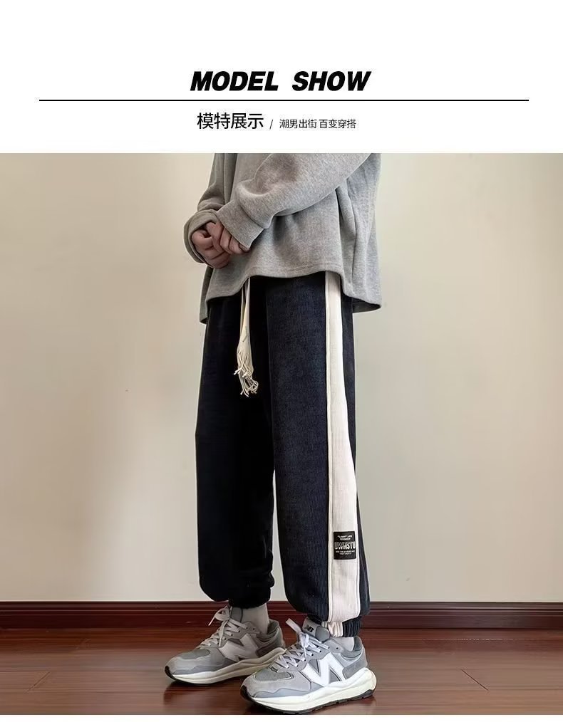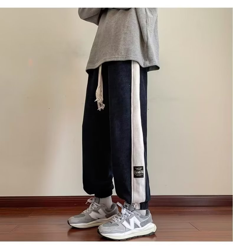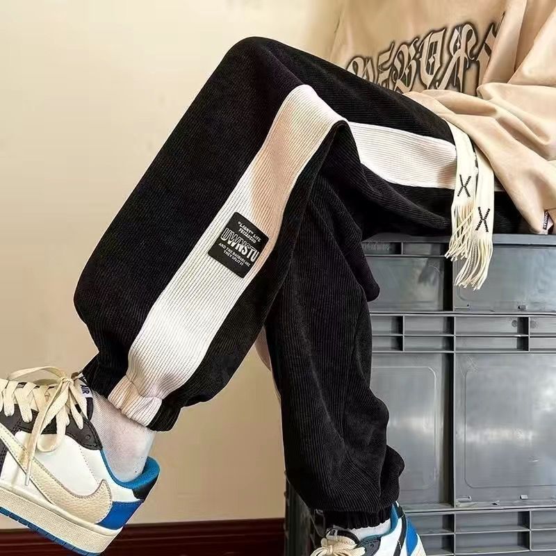 가을과 겨울 새로운 올 매치 다리 바지 남자 기모 캐주얼 바지 스포츠 바지 루즈 인 코듀로이 바지