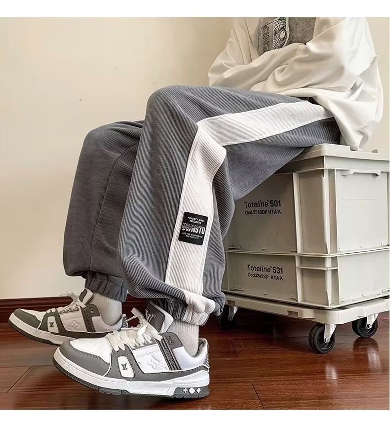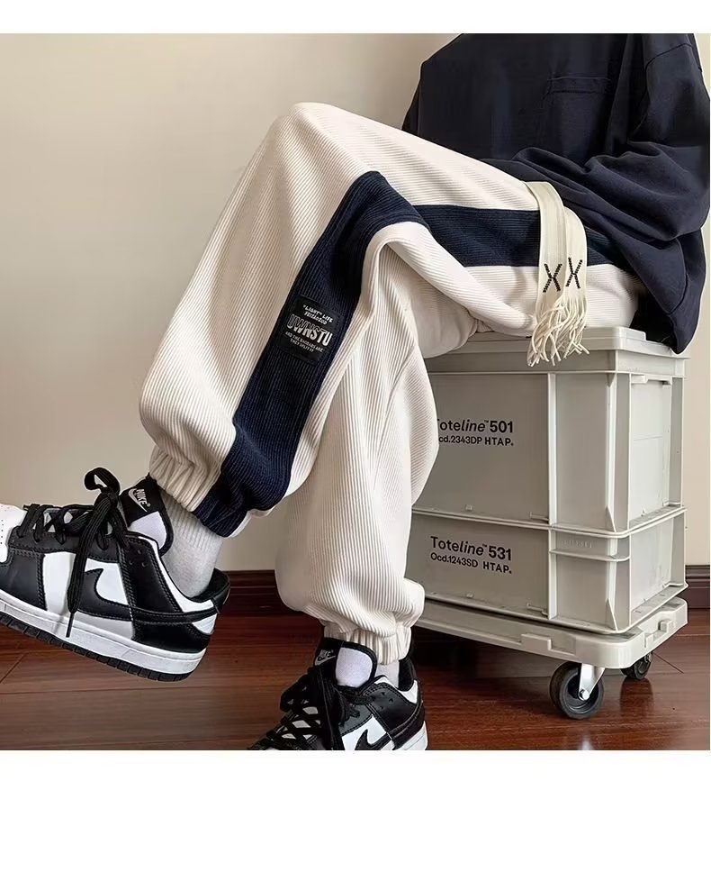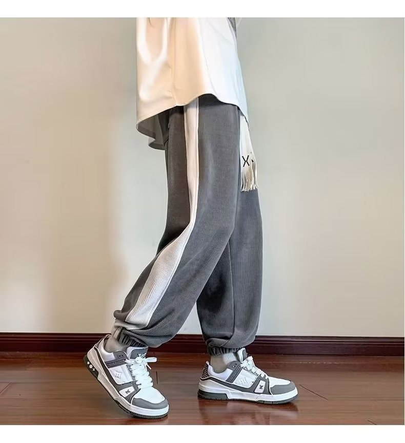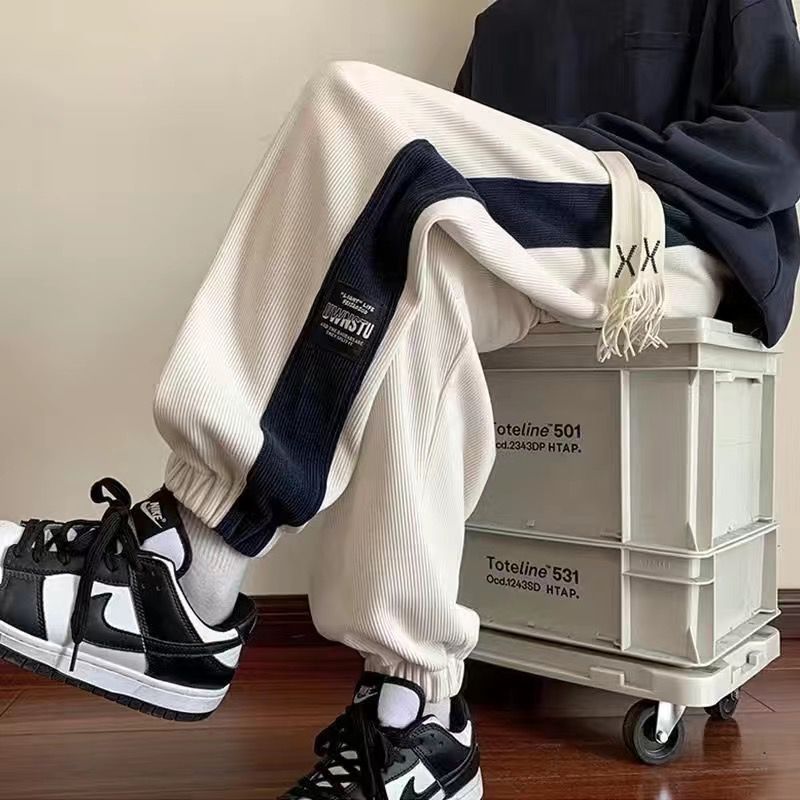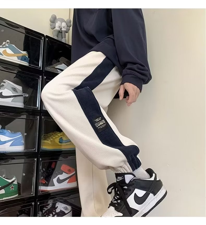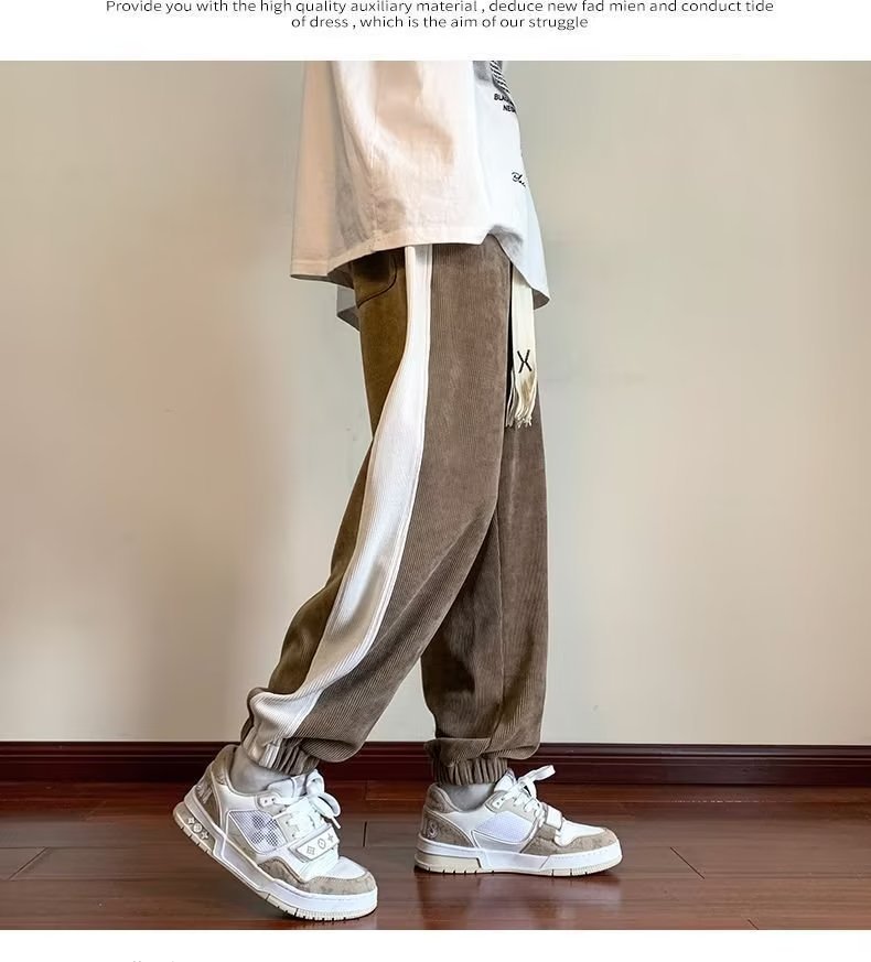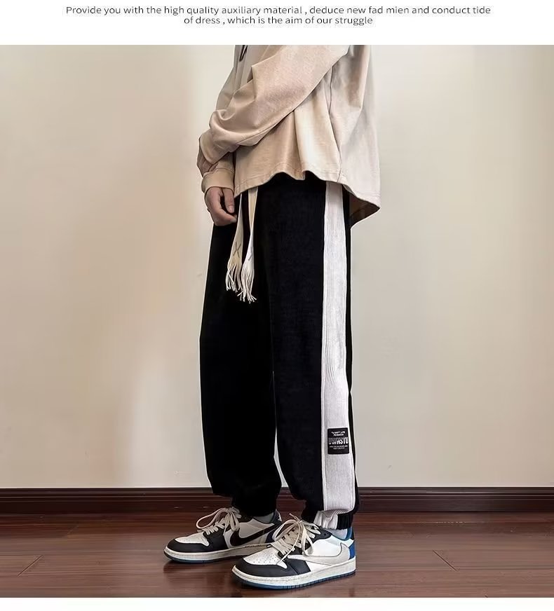 가을과 겨울 새로운 올 매치 다리 바지 남자 기모 캐주얼 바지 스포츠 바지 루즈 인 코듀로이 바지