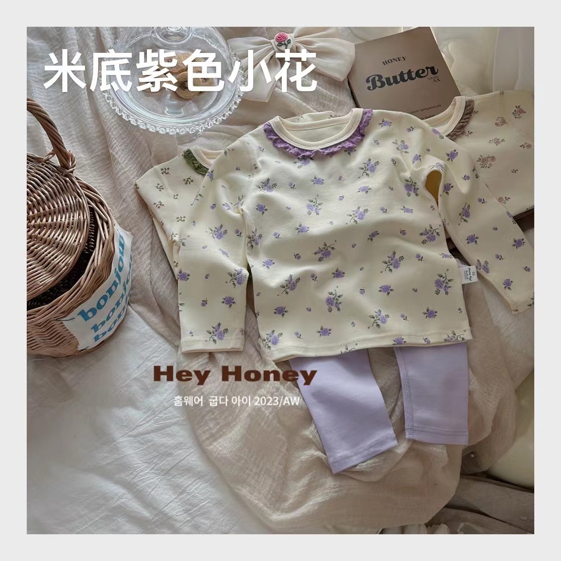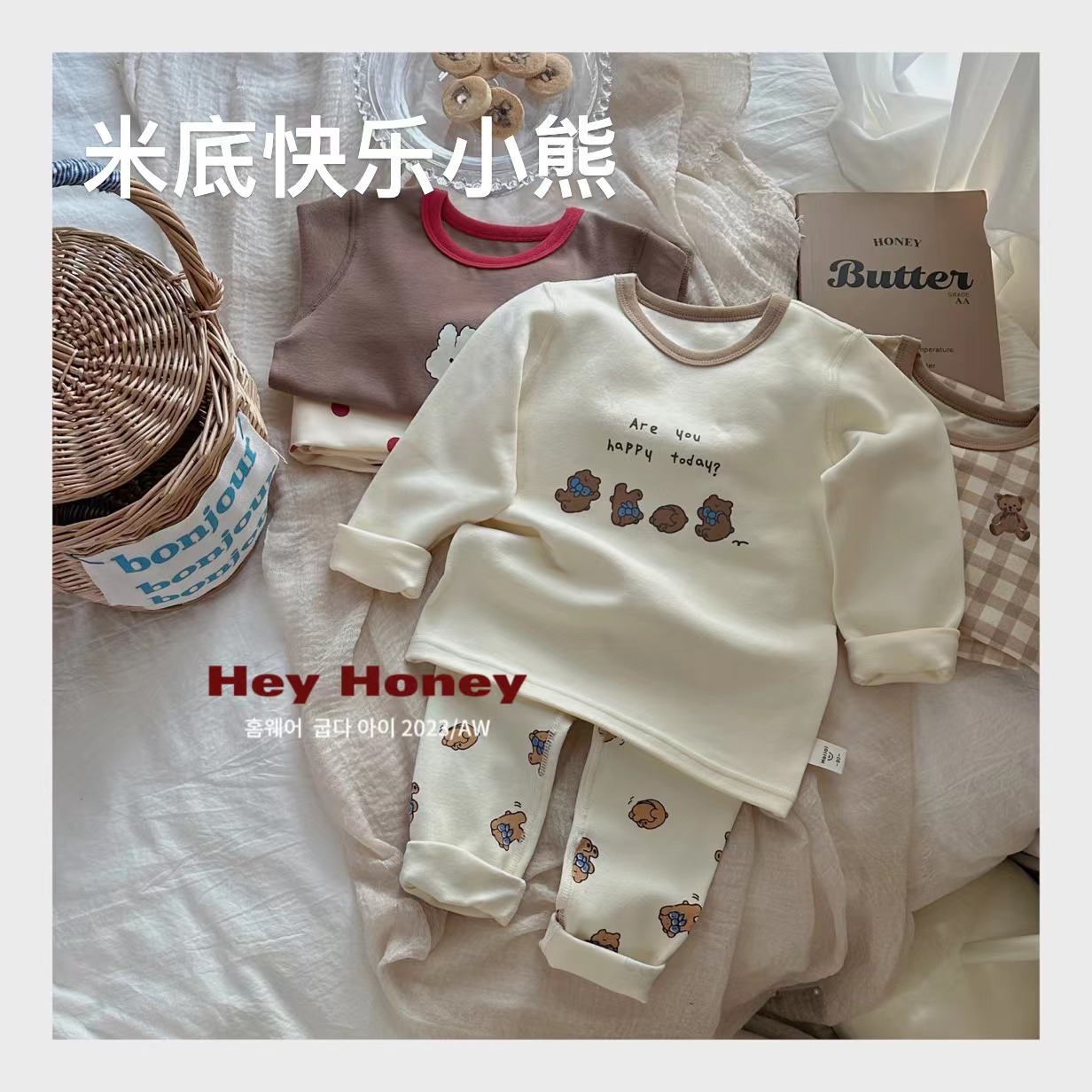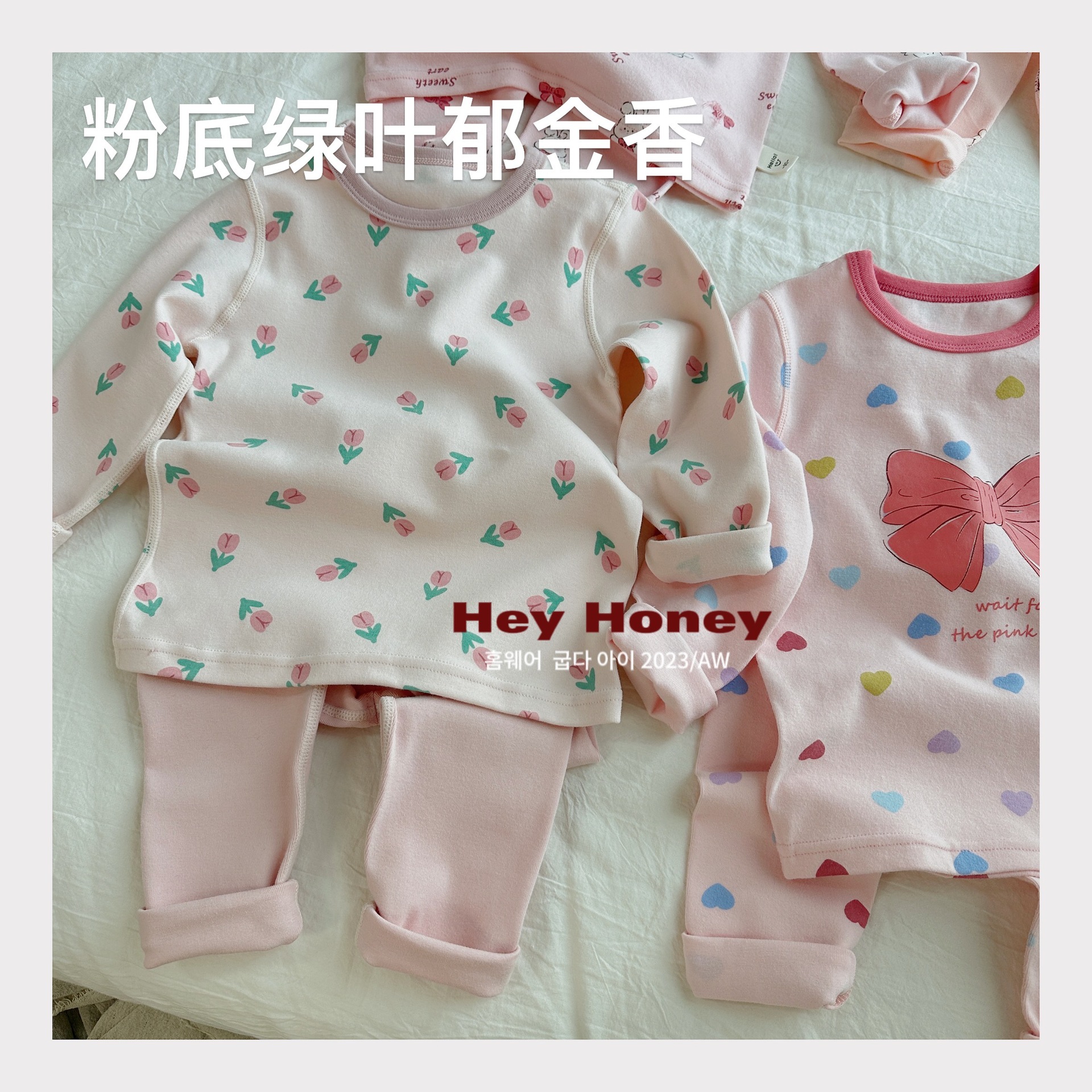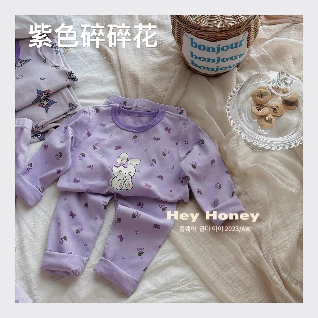 재고 크기 롤 어린이 가을과 겨울 양모 브래지어 열 속옷 세트 인쇄 된 홈 옷 파자마 두 조각 세트