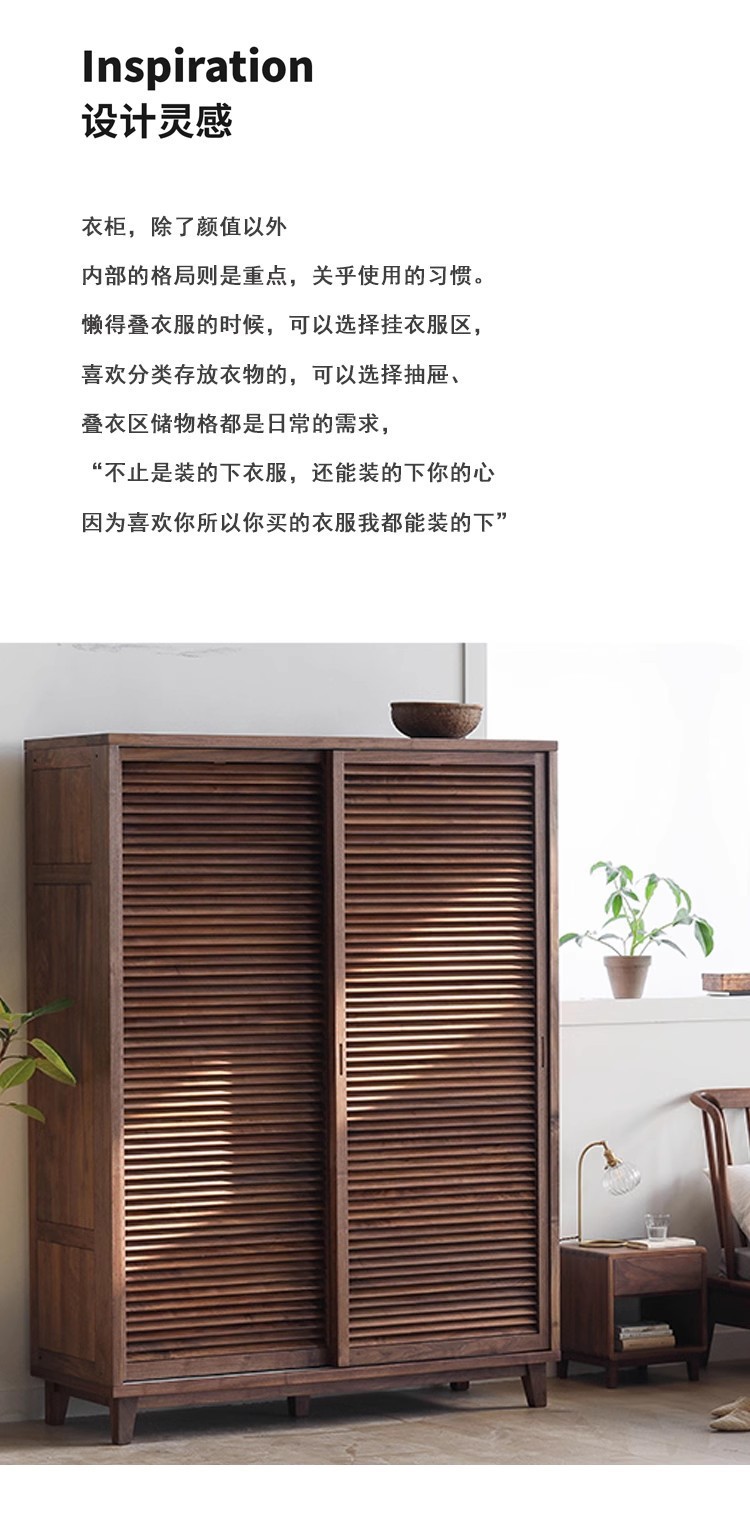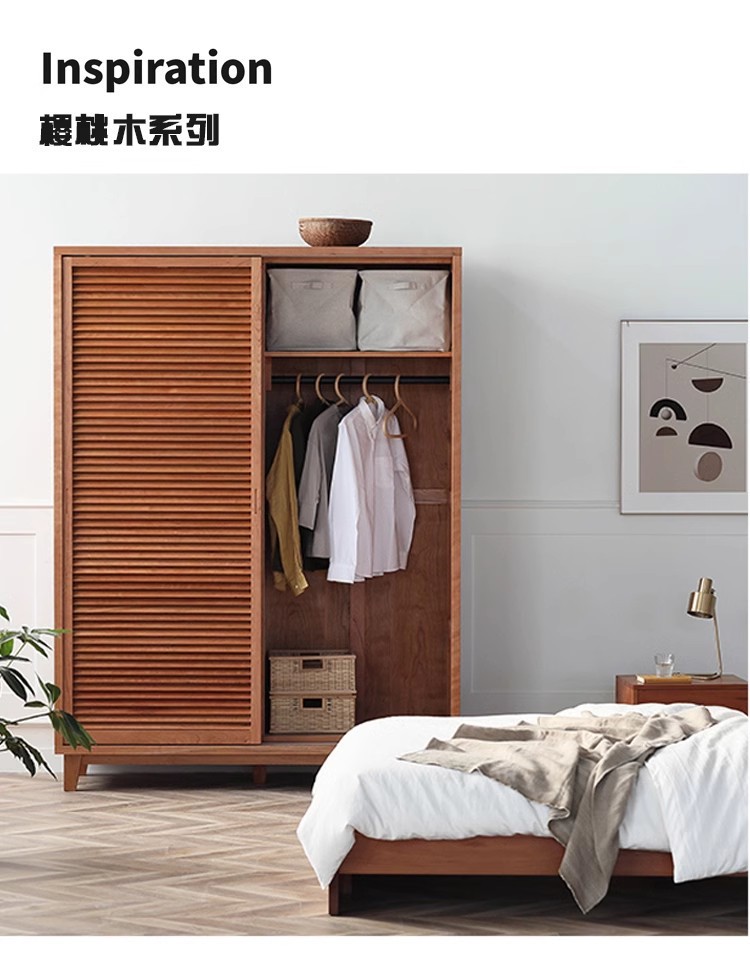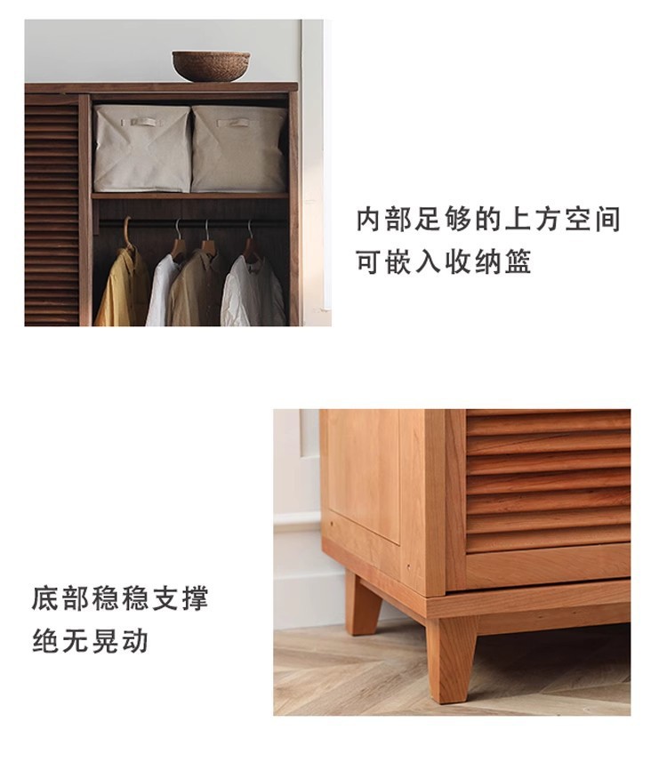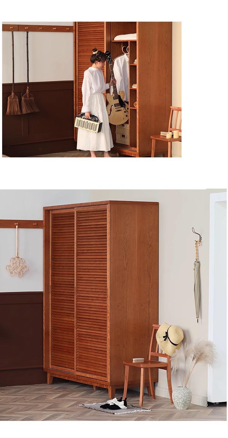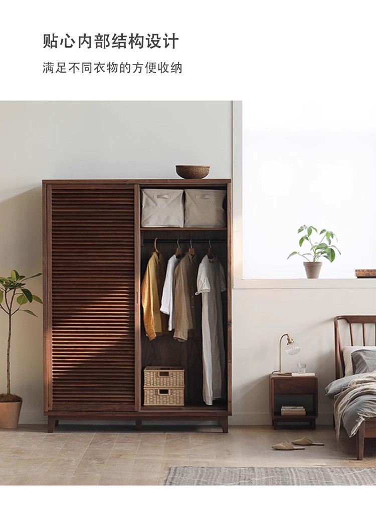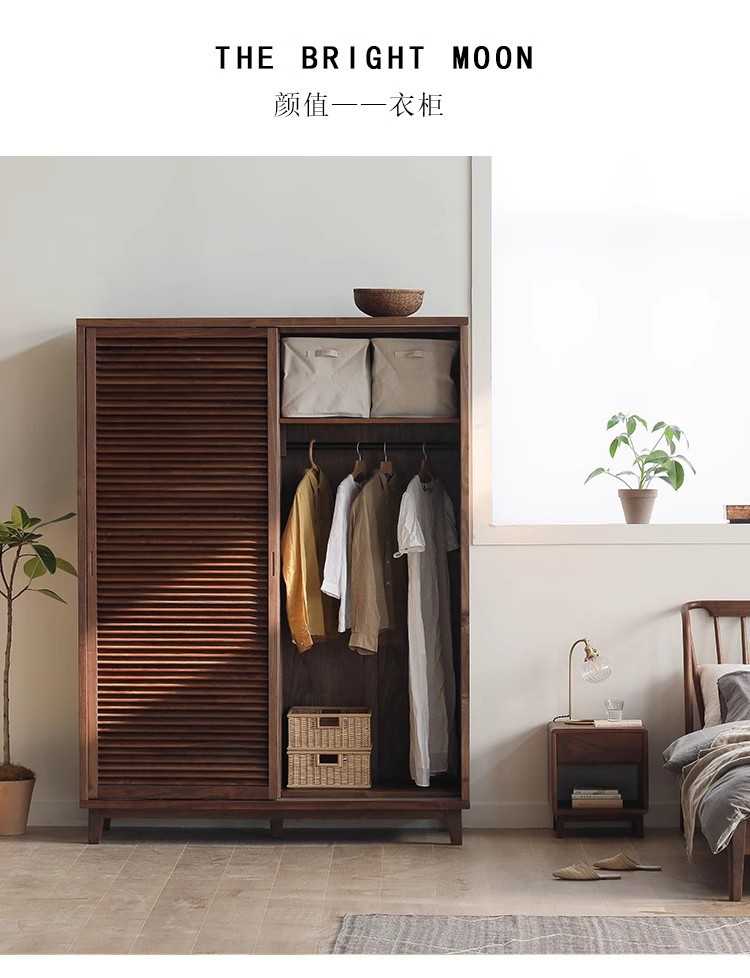 북유럽 모든 단단한 나무 검은 호두 옷장 현대 간단한 체리 우드 셔터 문 일본 그릴 슬라이딩 도어 옷장
