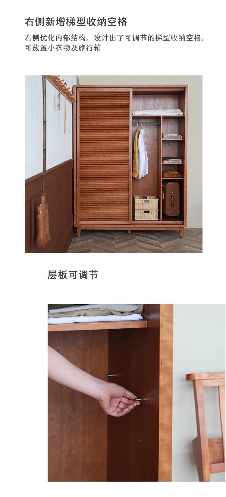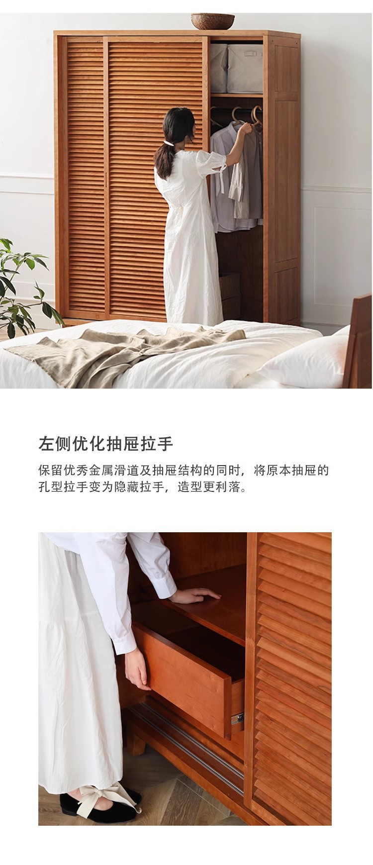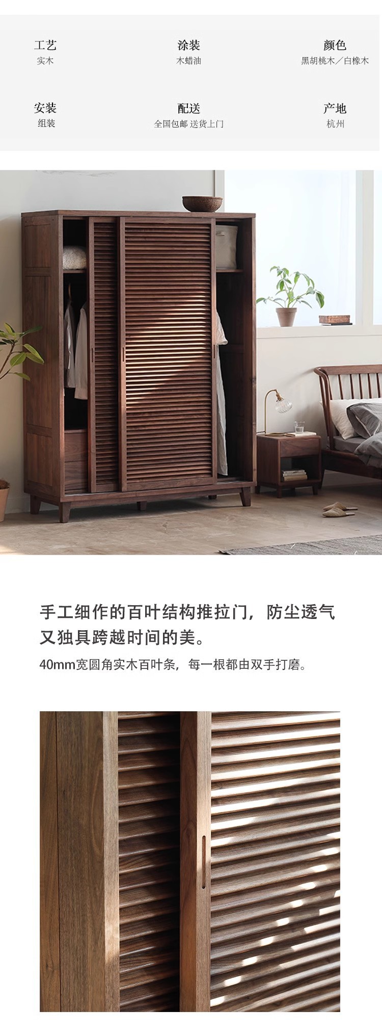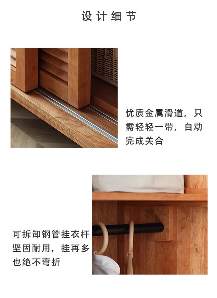 북유럽 모든 단단한 나무 검은 호두 옷장 현대 간단한 체리 우드 셔터 문 일본 그릴 슬라이딩 도어 옷장