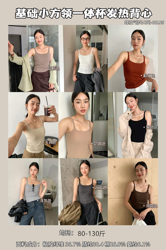 韓社한국사회-6615#基础款小方领一体杯发热背心