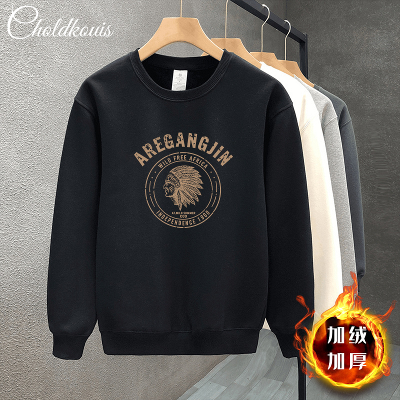 무거운 둥근 목 스웨트 셔츠 남자의 후드 가을과 겨울 편지 인쇄 캐주얼 코트 십대 유행 브랜드 남성 코트 두껍게