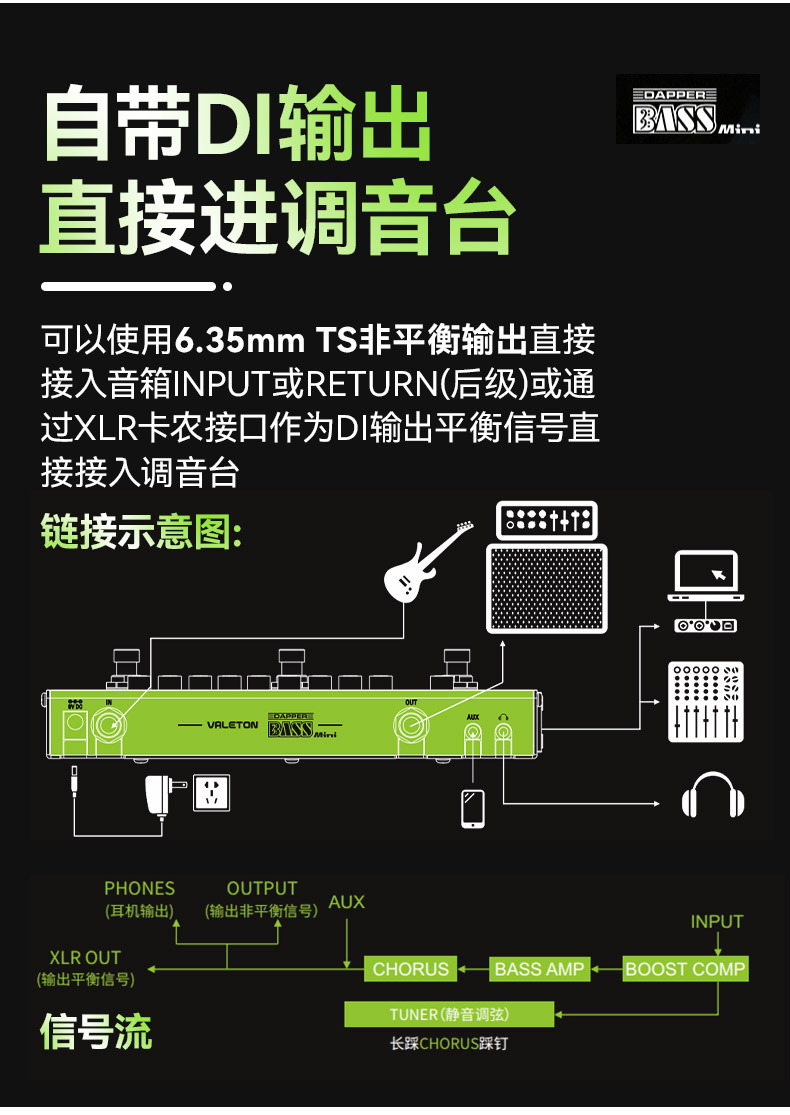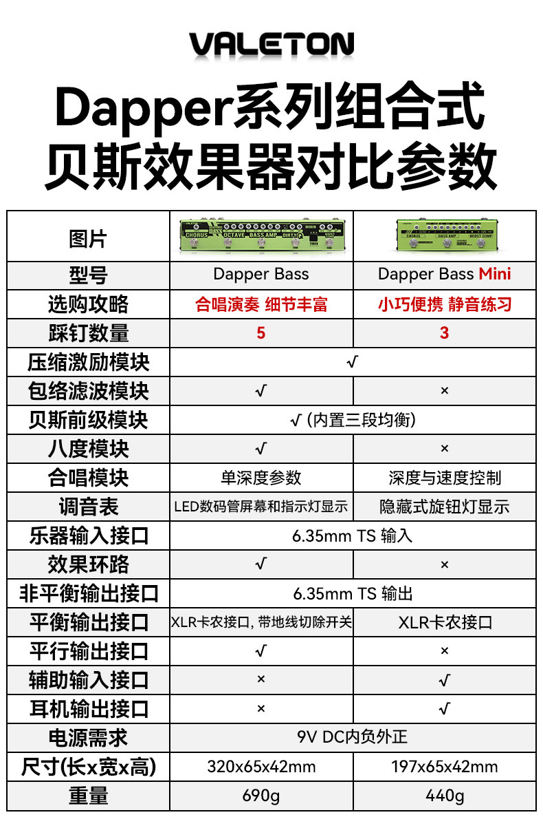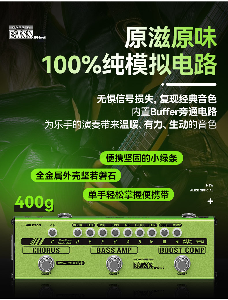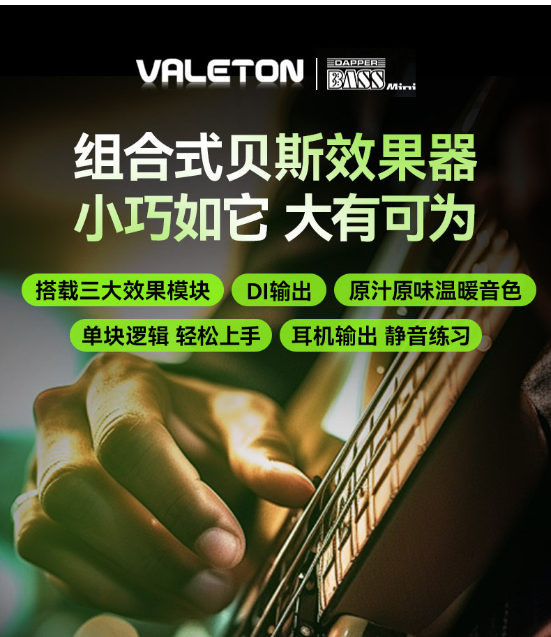 Valeton베이스 싱글 블록 이펙터 Dapper베이스 미니 작은 녹색 바 디 박스 과부하 압축 리버브