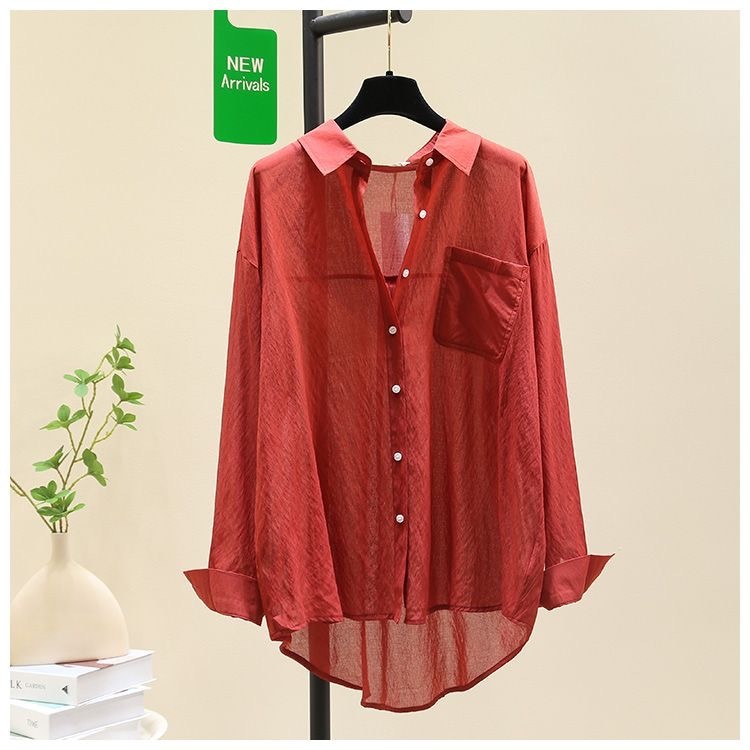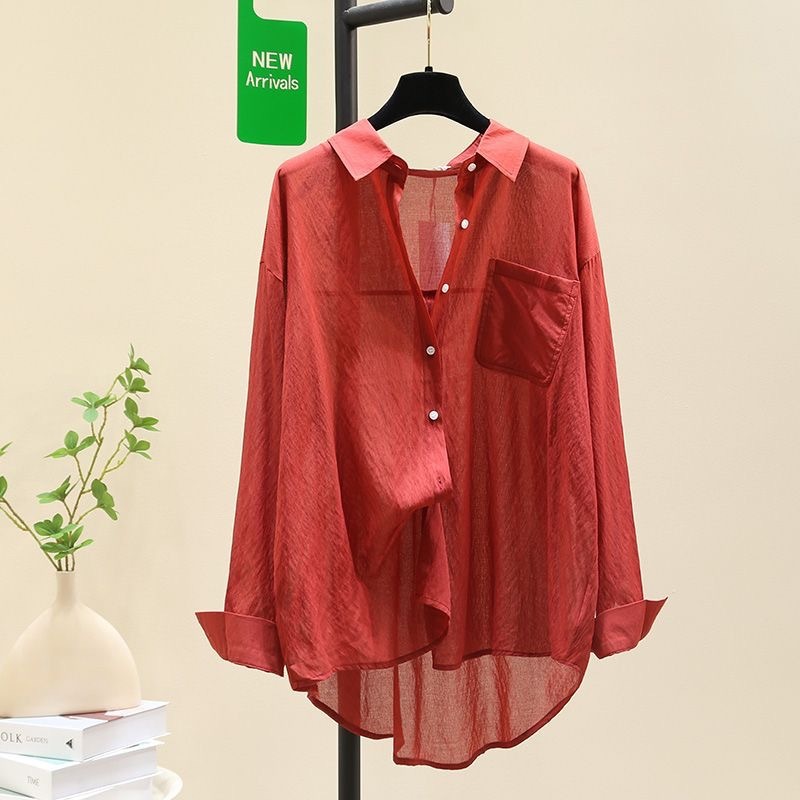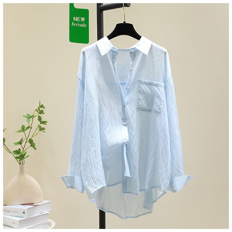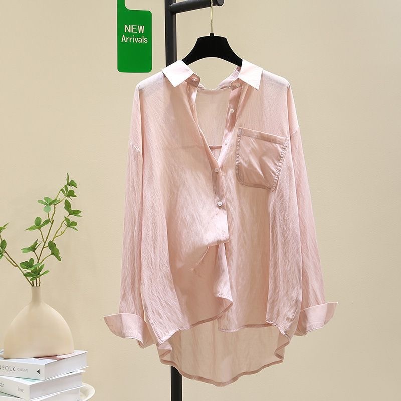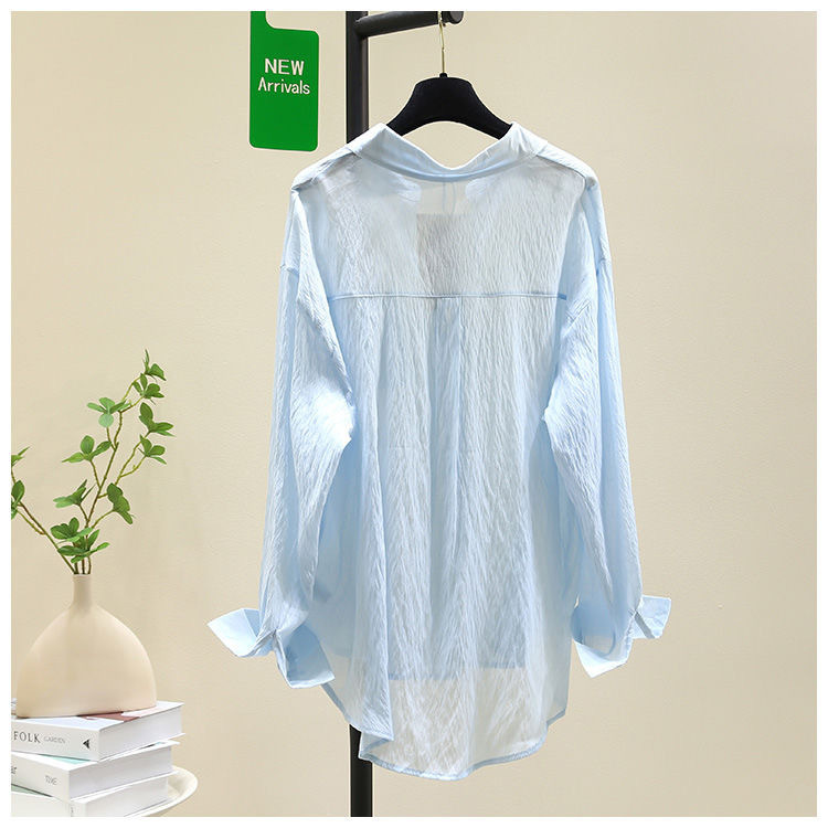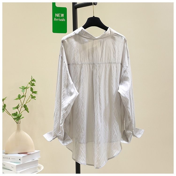 얇은 긴팔 셔츠 여자의 2024 여름 새로운 스타일 우아한 올 매치 캐주얼 느슨한 중간 길이 카디건 셔츠스토어 가기
