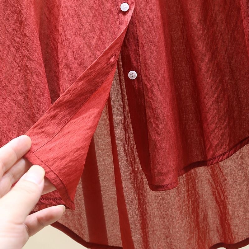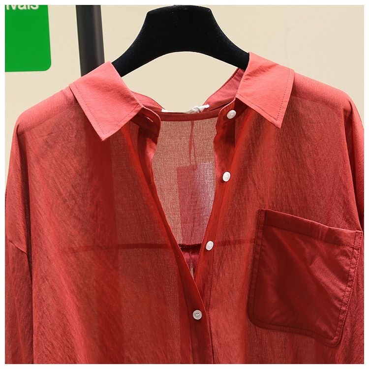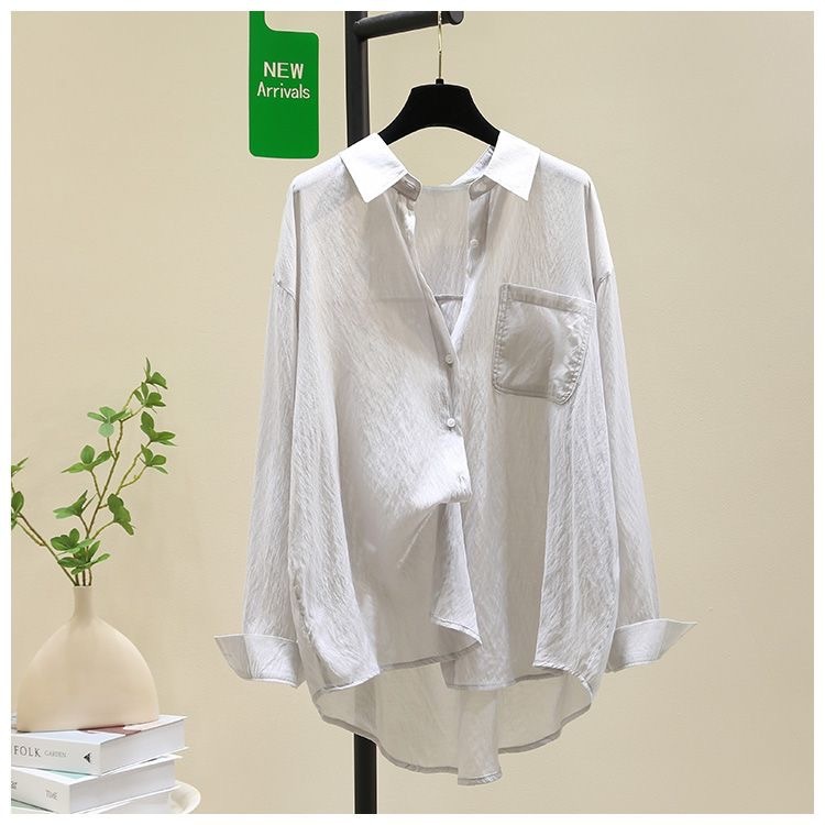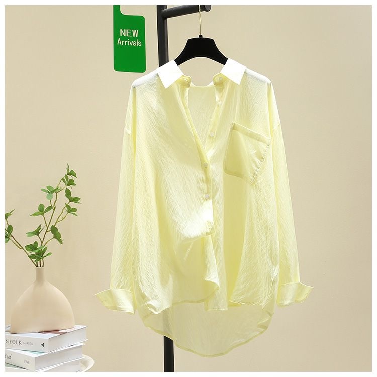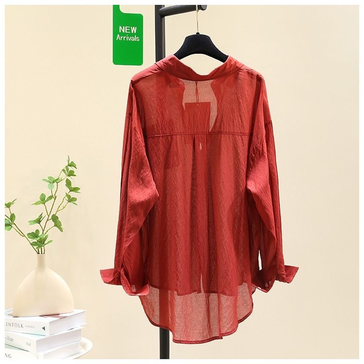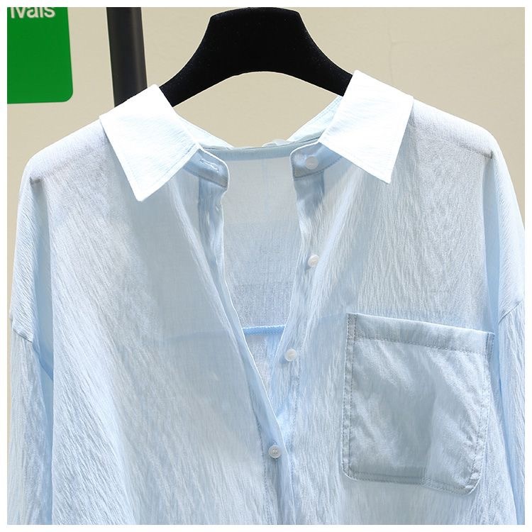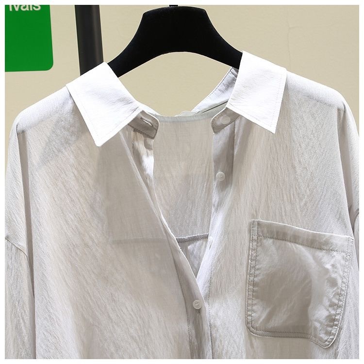 얇은 긴팔 셔츠 여자의 2024 여름 새로운 스타일 우아한 올 매치 캐주얼 느슨한 중간 길이 카디건 셔츠스토어 가기