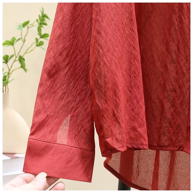 얇은 긴팔 셔츠 여자의 2024 여름 새로운 스타일 우아한 올 매치 캐주얼 느슨한 중간 길이 카디건 셔츠