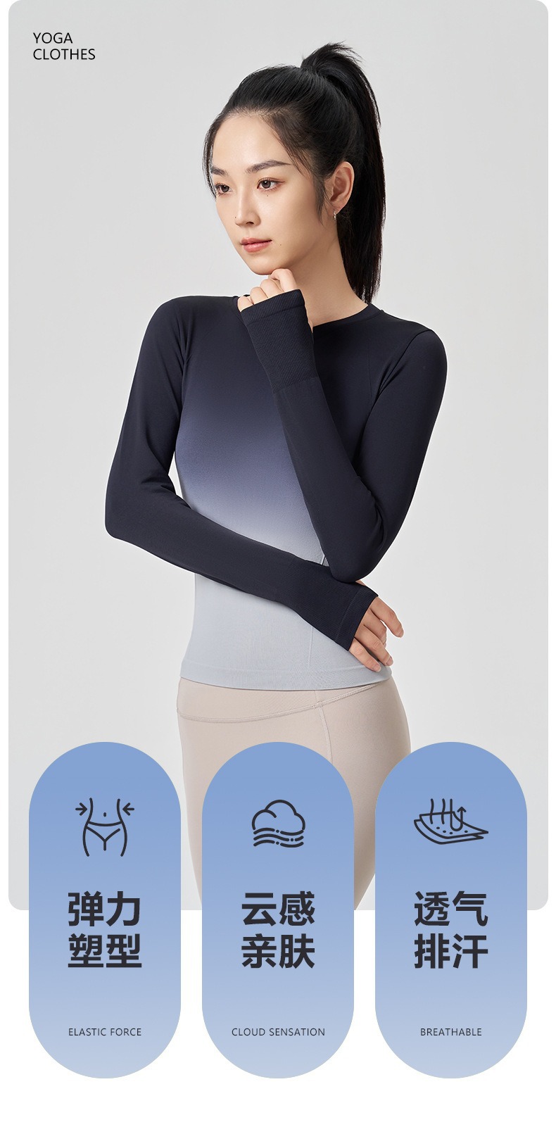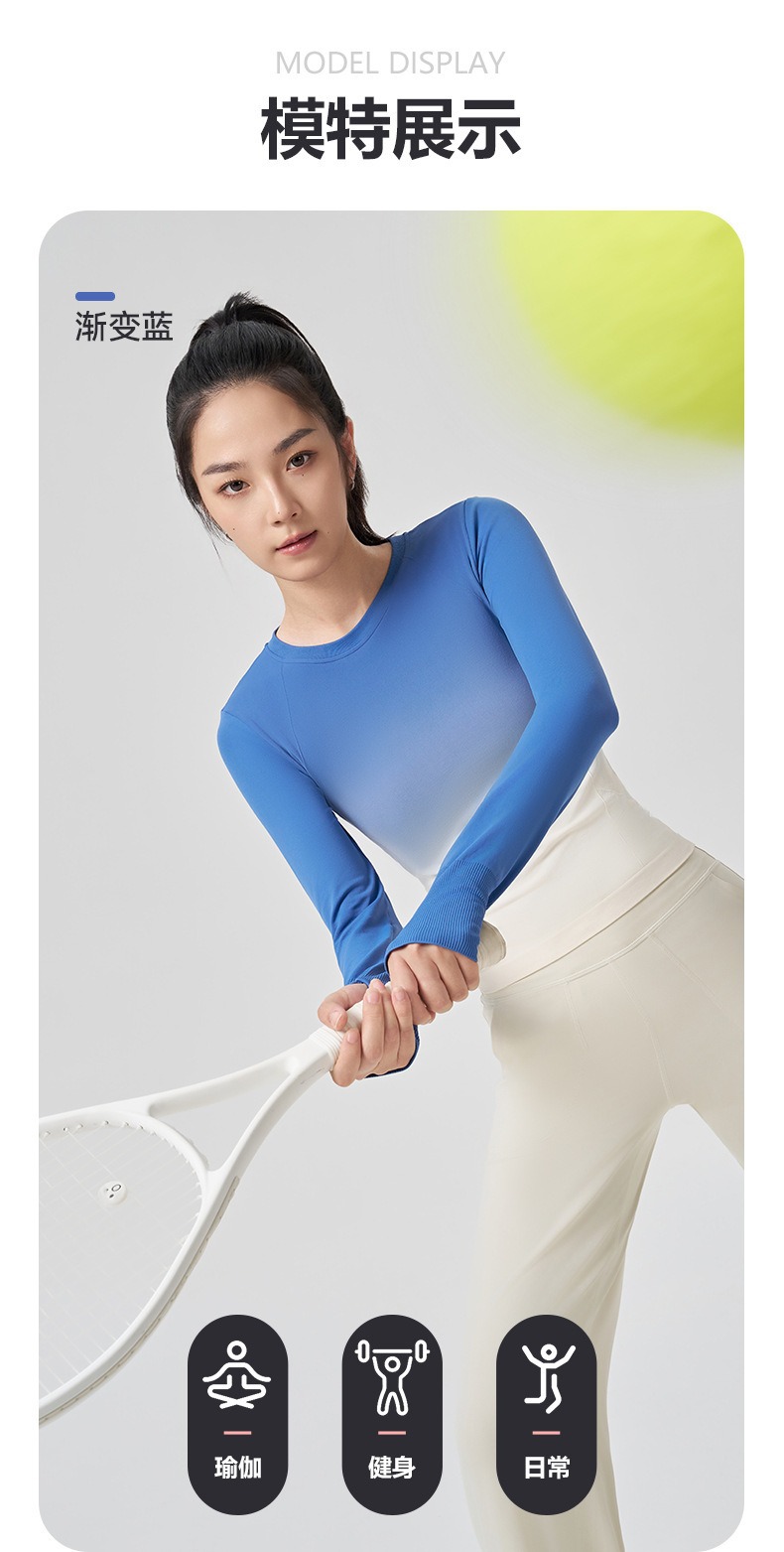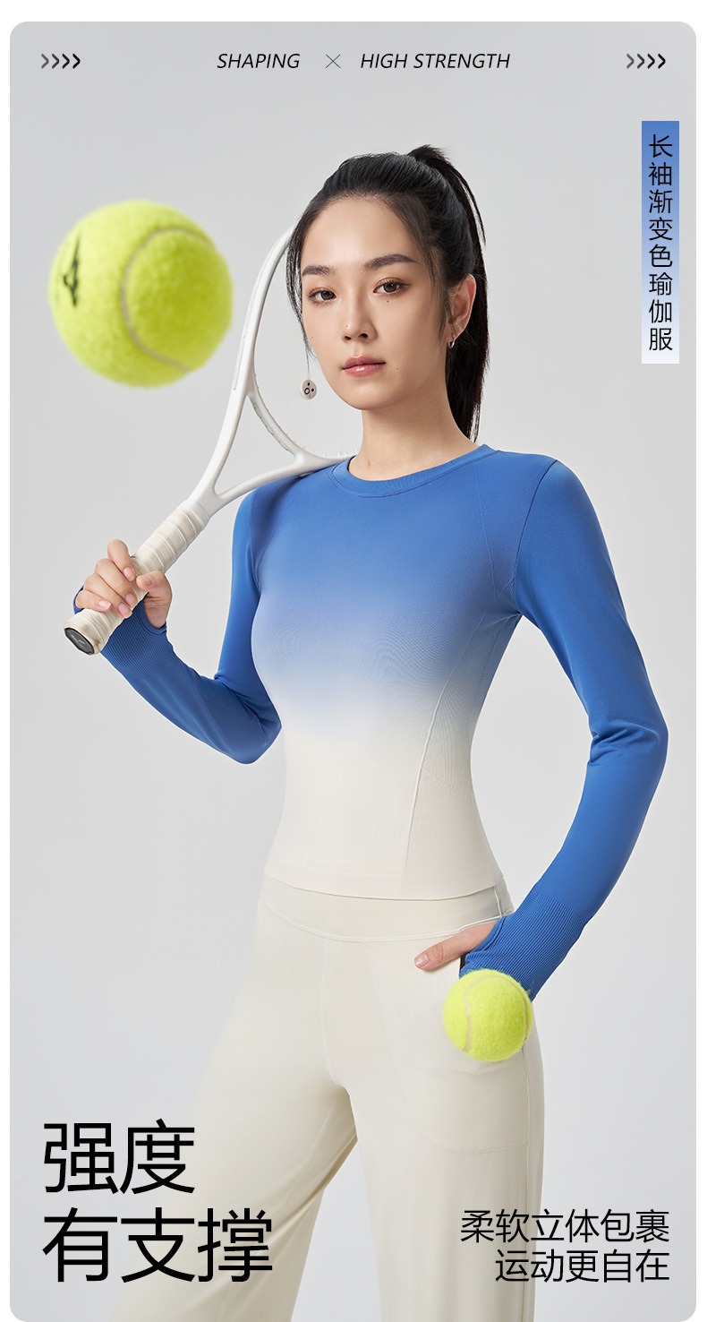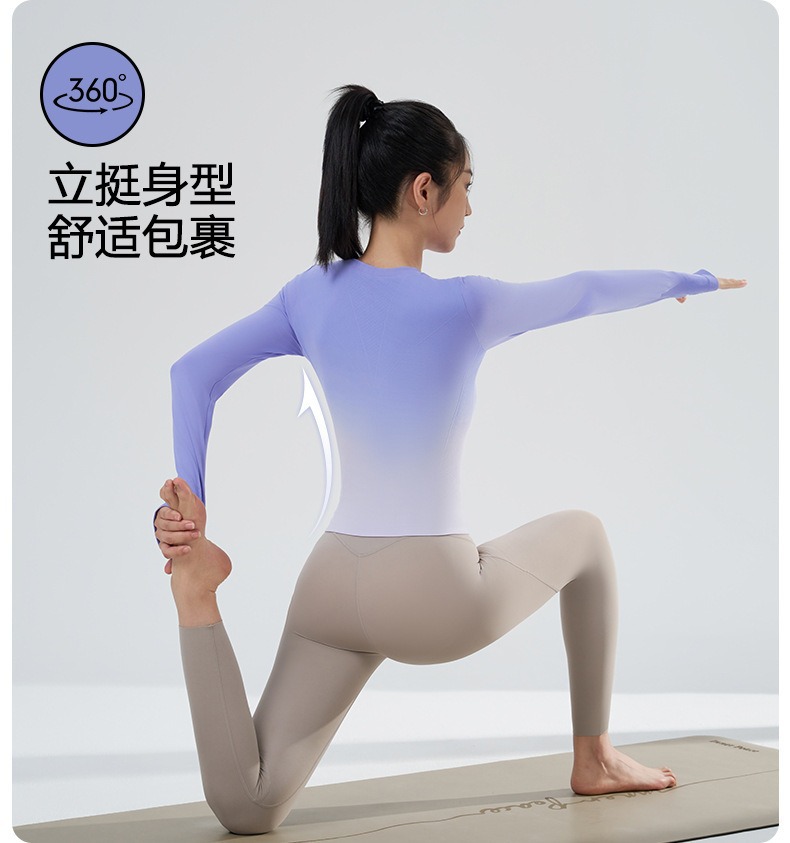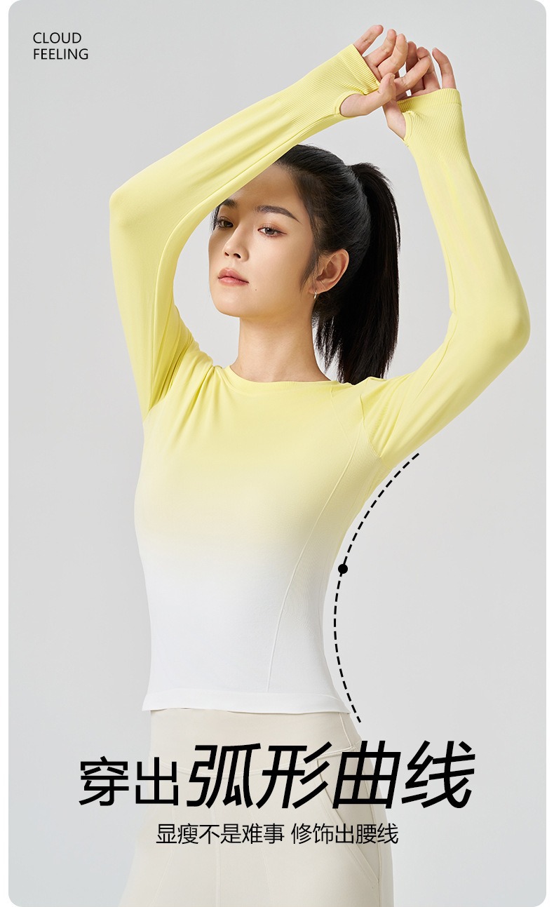 새로운 요가 옷 긴팔 그라디언트 빠른 건조 스포츠 피트니스 티셔츠 여성용 슬림핏 탑 타이트베이스 셔츠스토어 가기