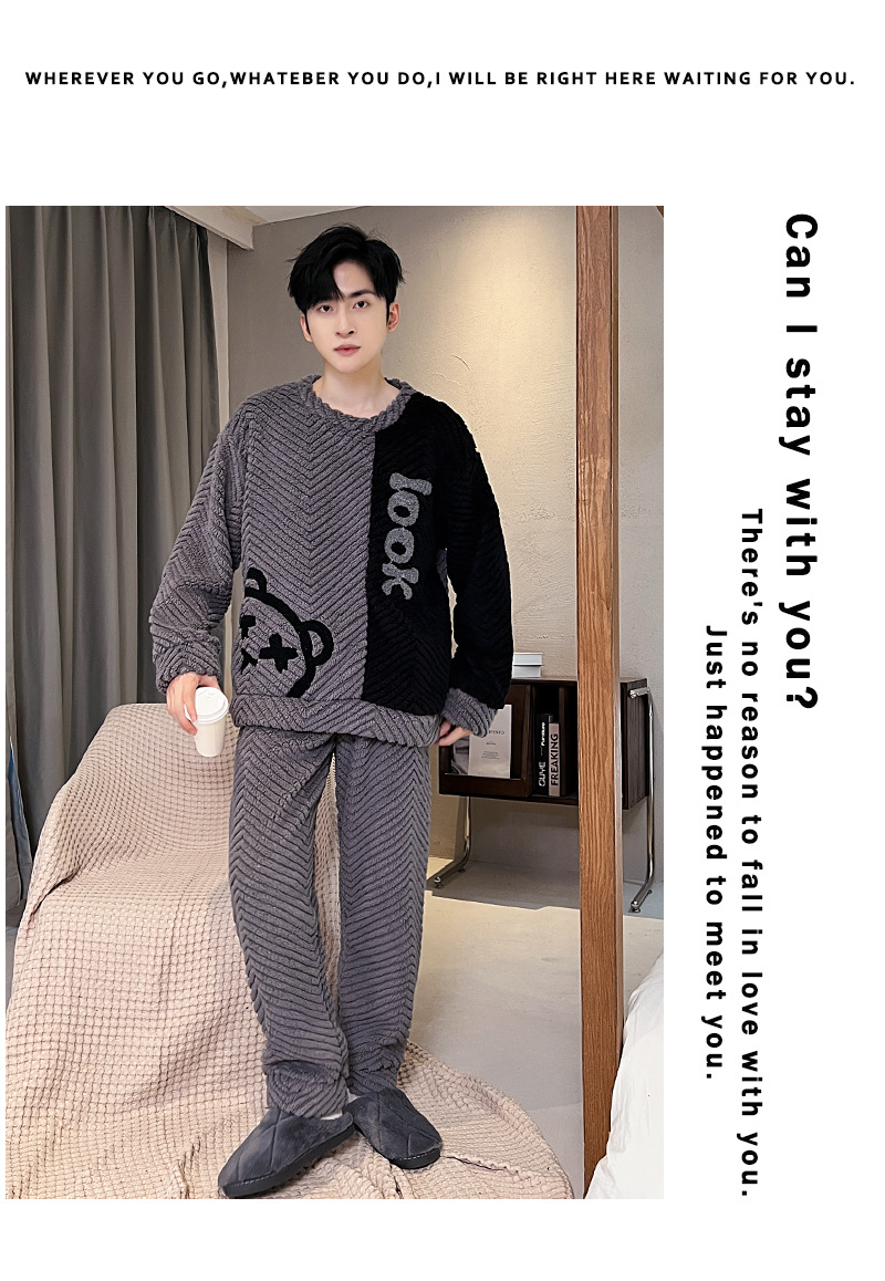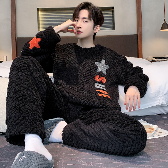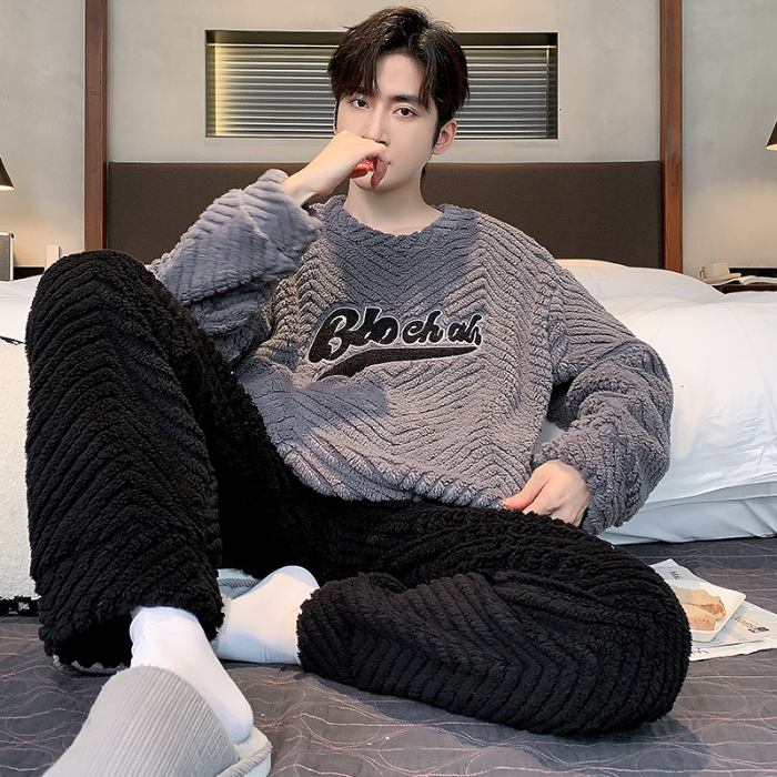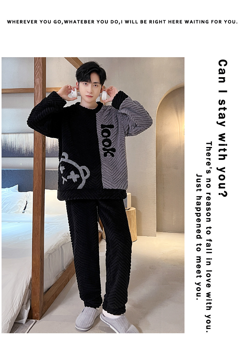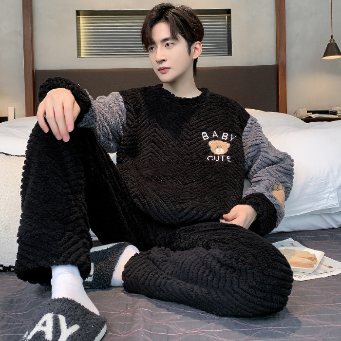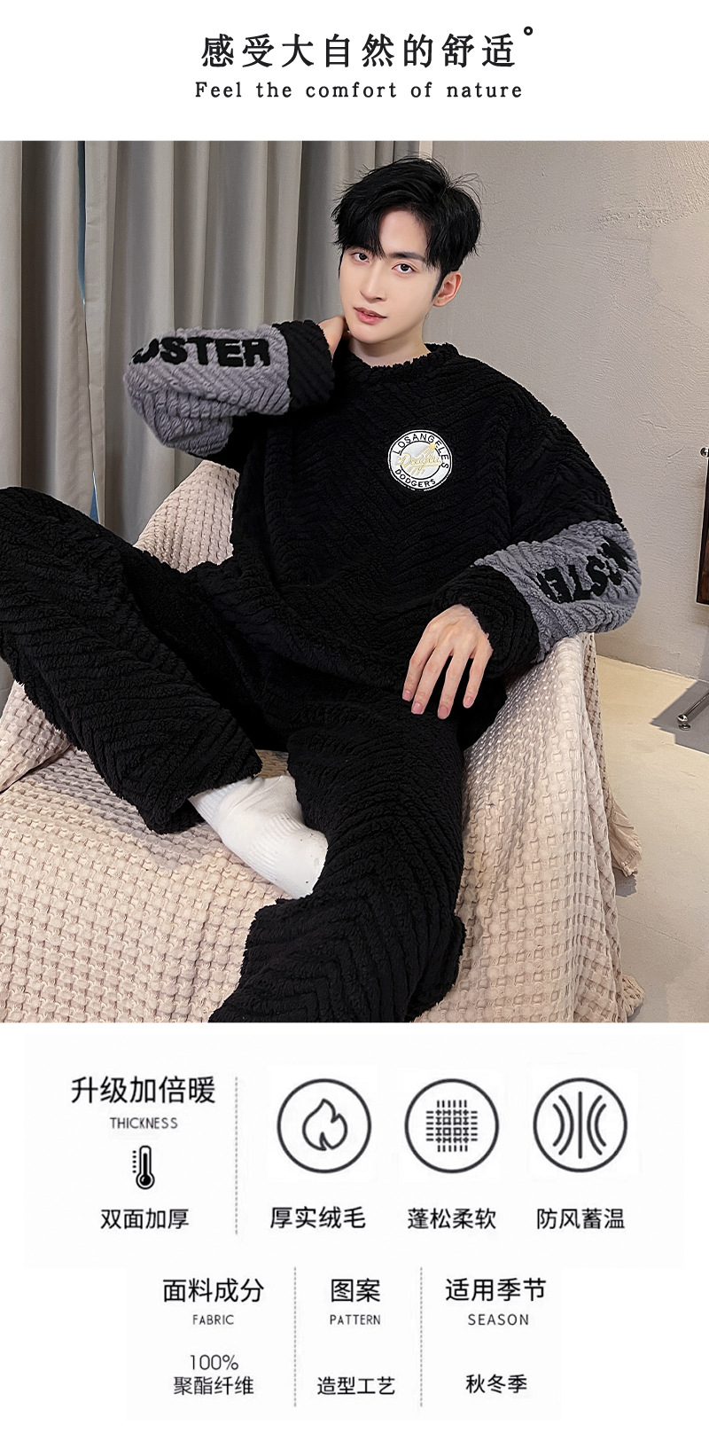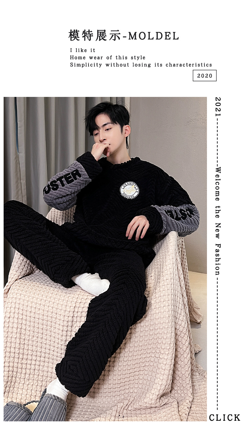 가을과 겨울 산호 양털 두꺼운 기모 따뜻한 잠옷 남자 10 대 풀오버 겉옷 투피스 홈 세트스토어 가기