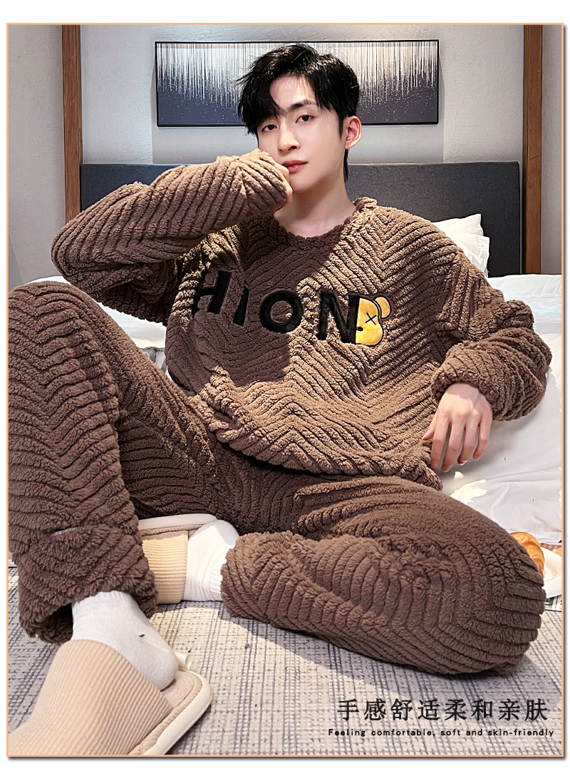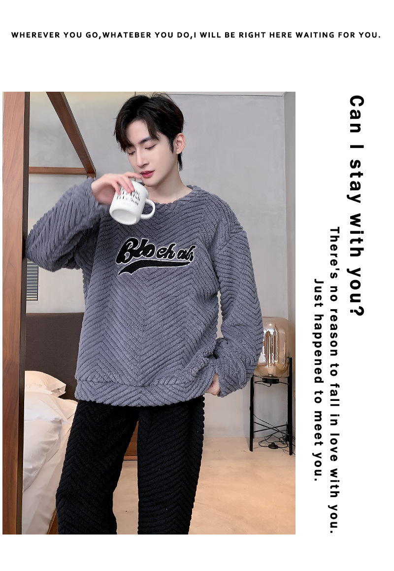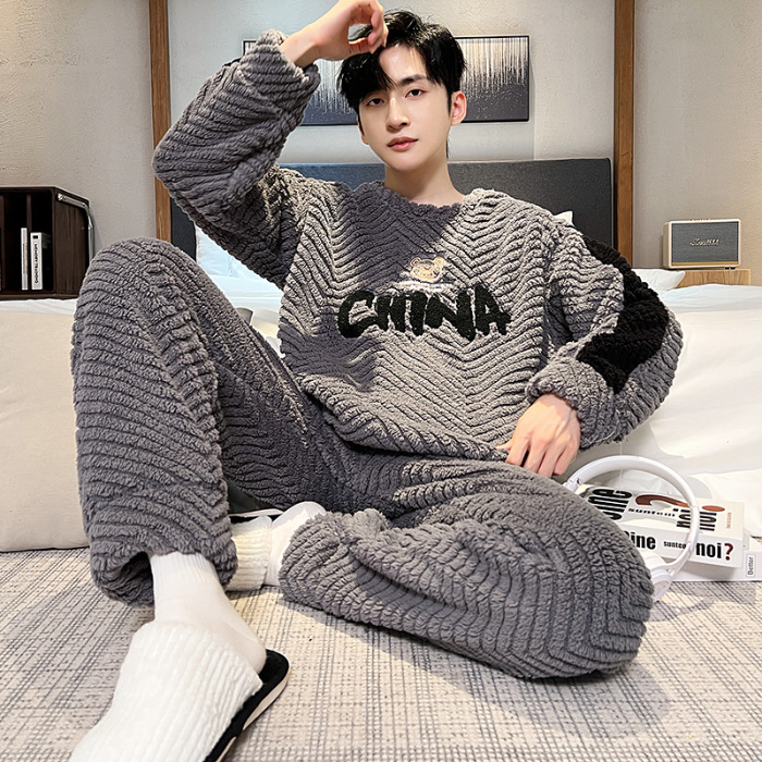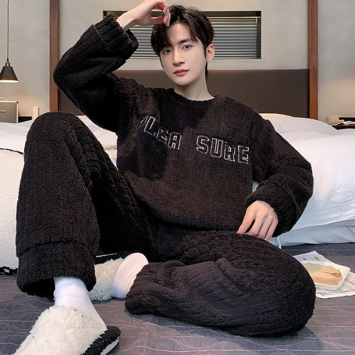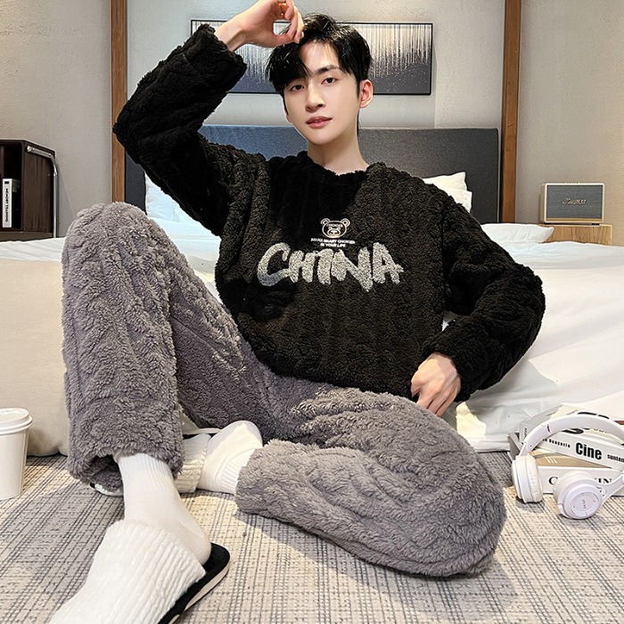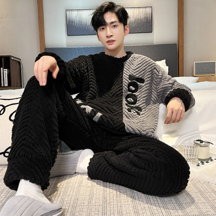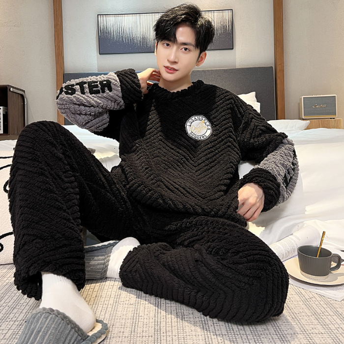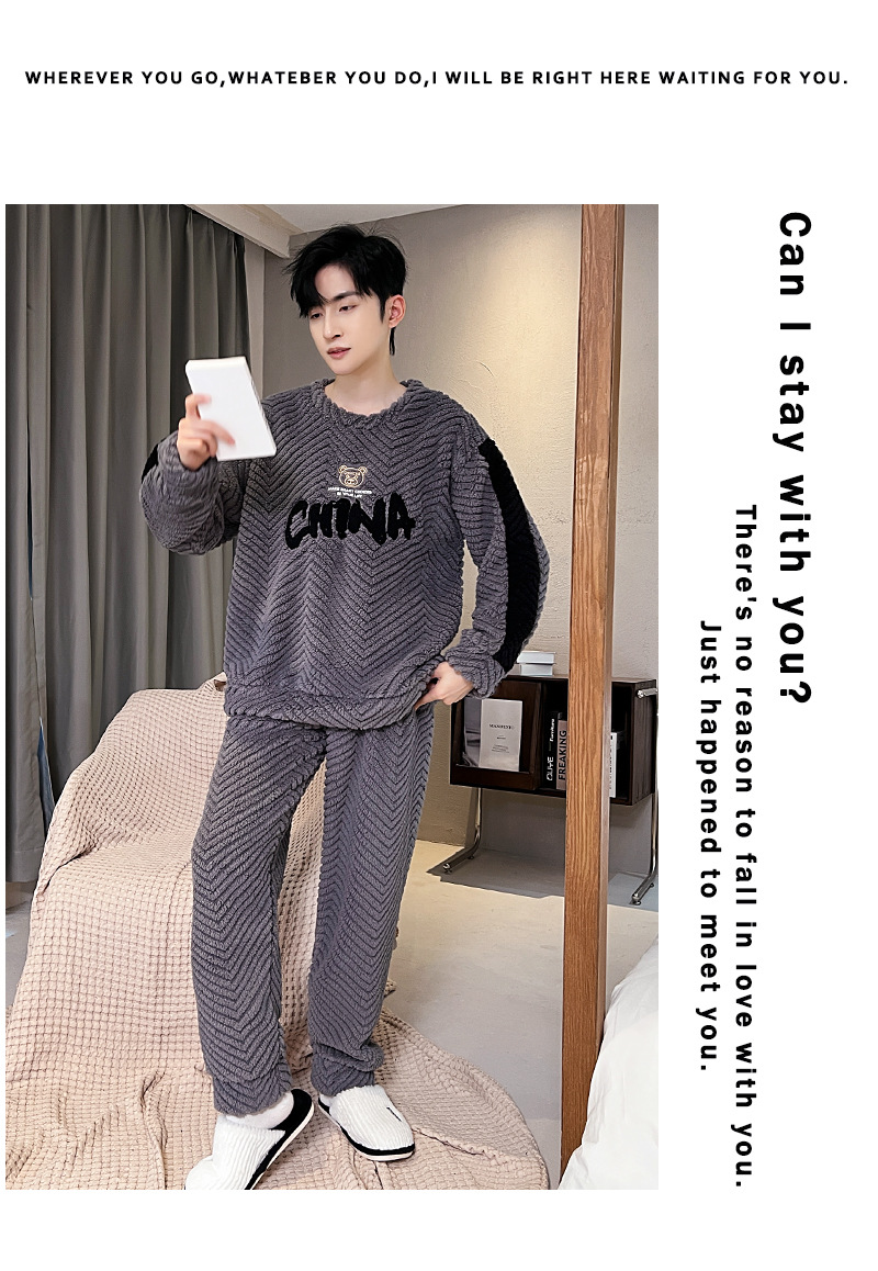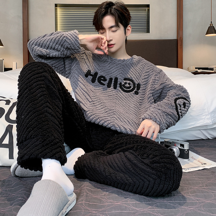 가을과 겨울 산호 양털 두꺼운 기모 따뜻한 잠옷 남자 10 대 풀오버 겉옷 투피스 홈 세트스토어 가기