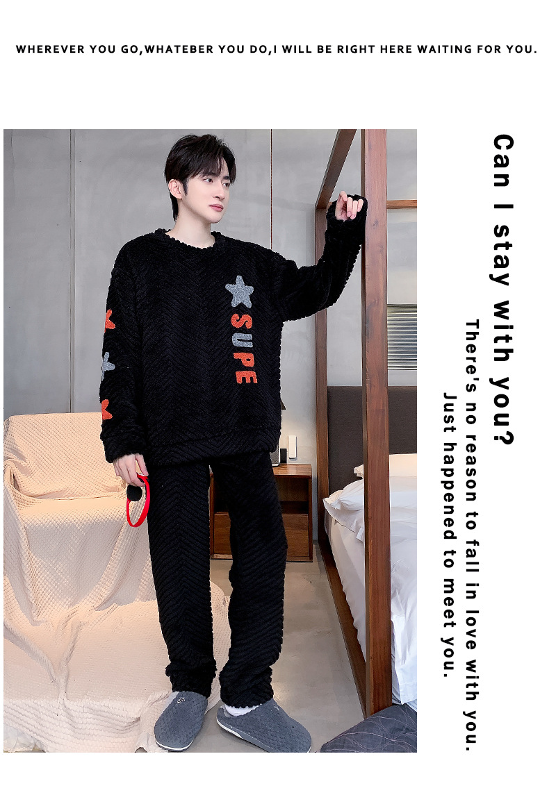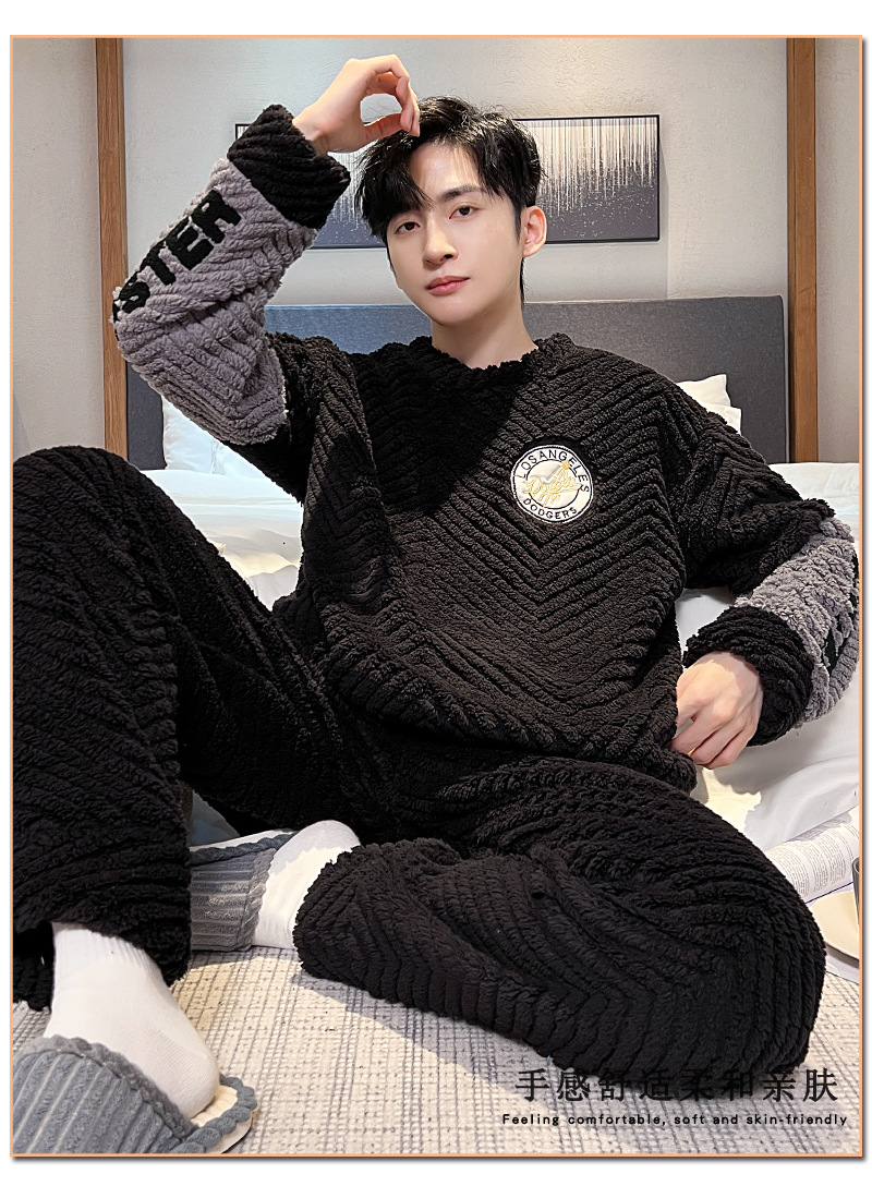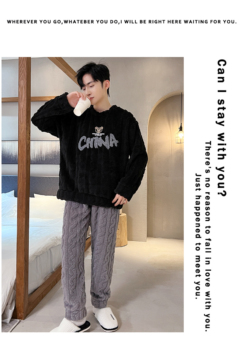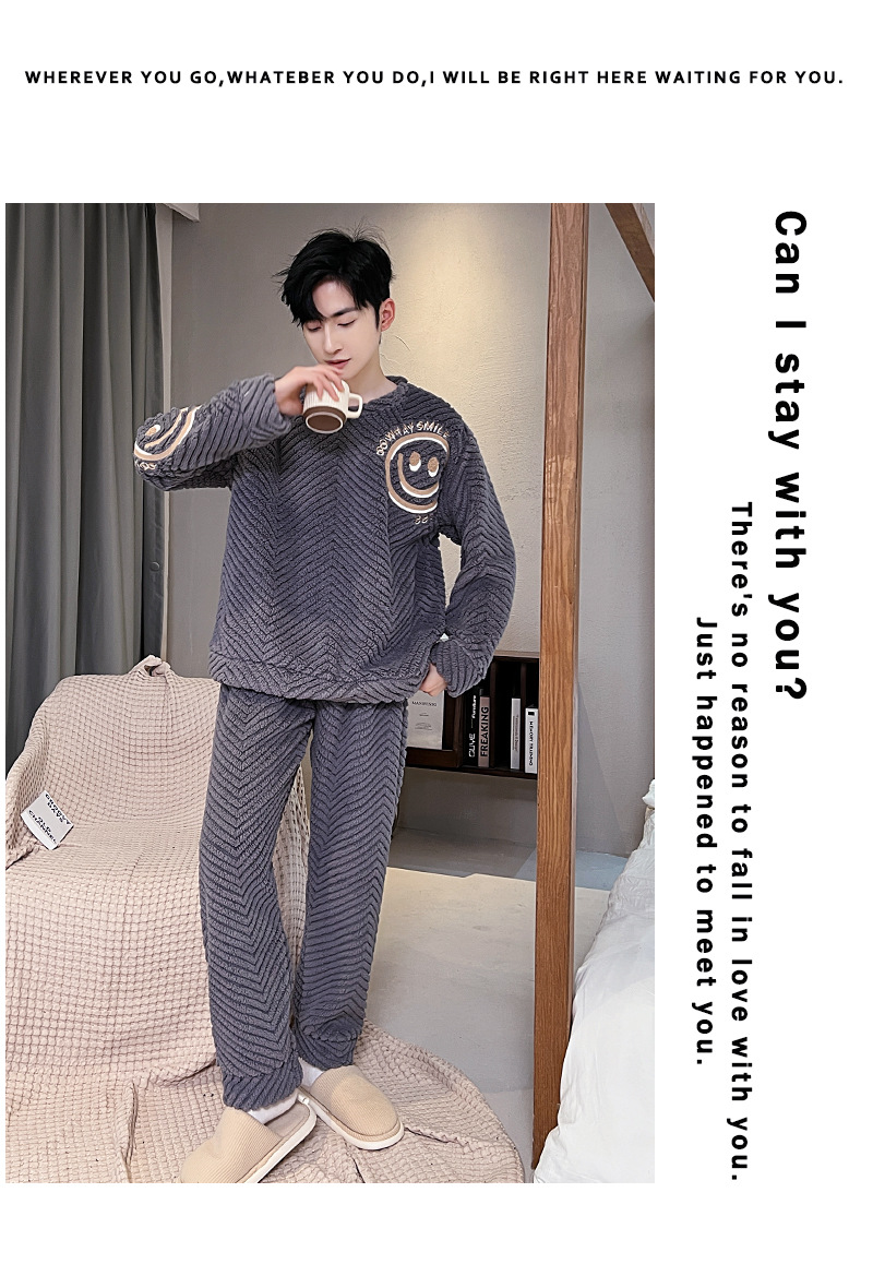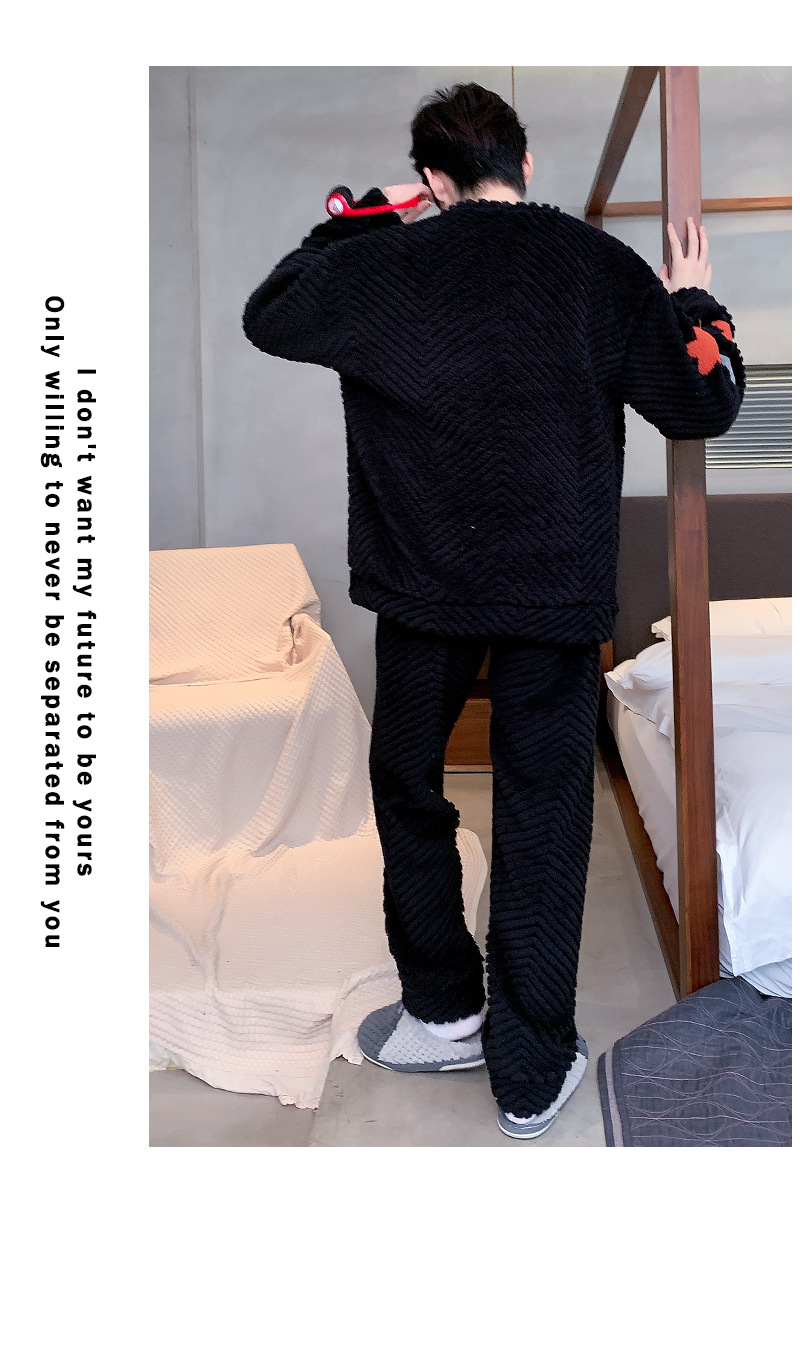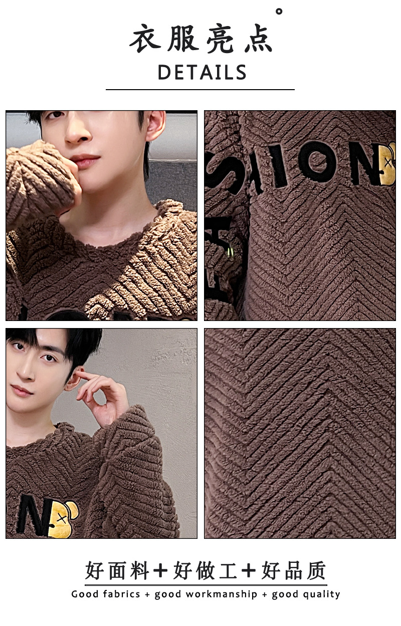 가을과 겨울 산호 양털 두꺼운 기모 따뜻한 잠옷 남자 10 대 풀오버 겉옷 투피스 홈 세트스토어 가기