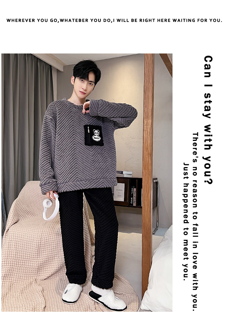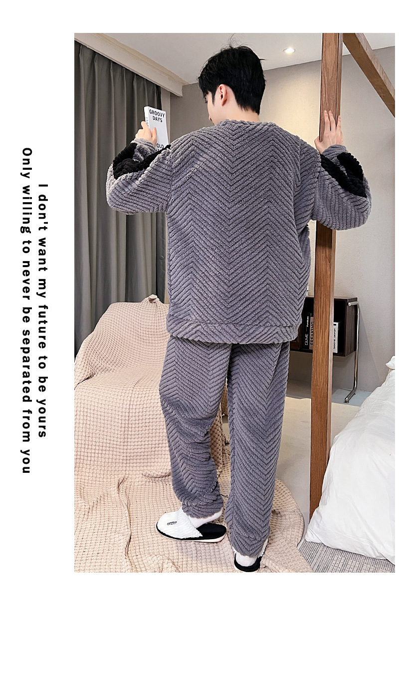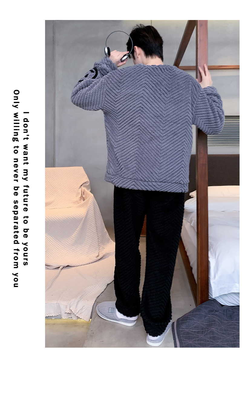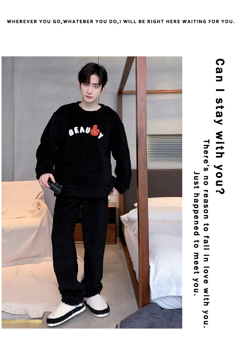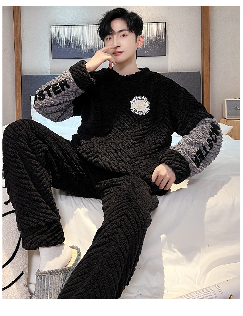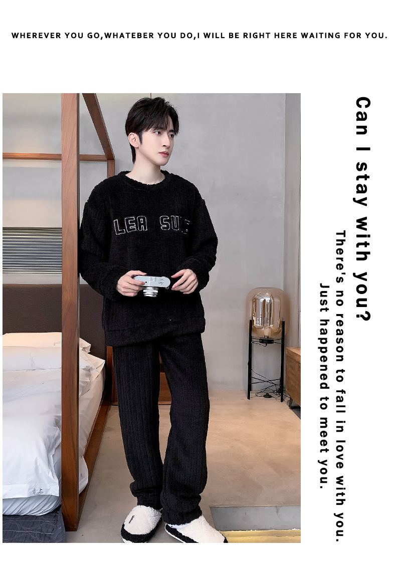 가을과 겨울 산호 양털 두꺼운 기모 따뜻한 잠옷 남자 10 대 풀오버 겉옷 투피스 홈 세트스토어 가기