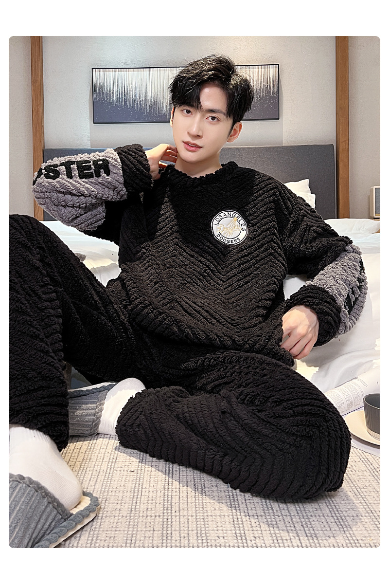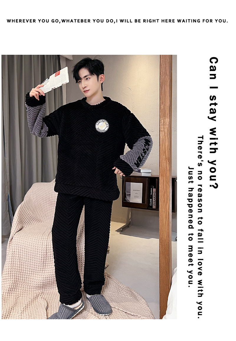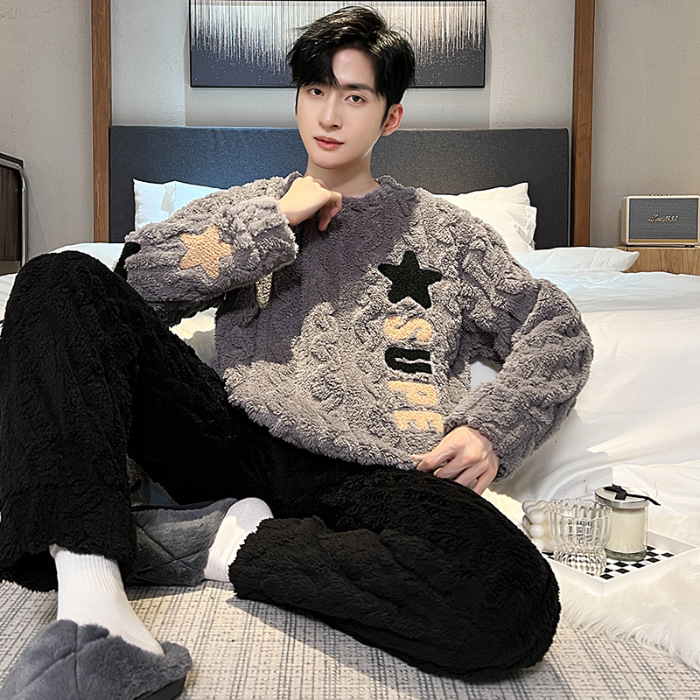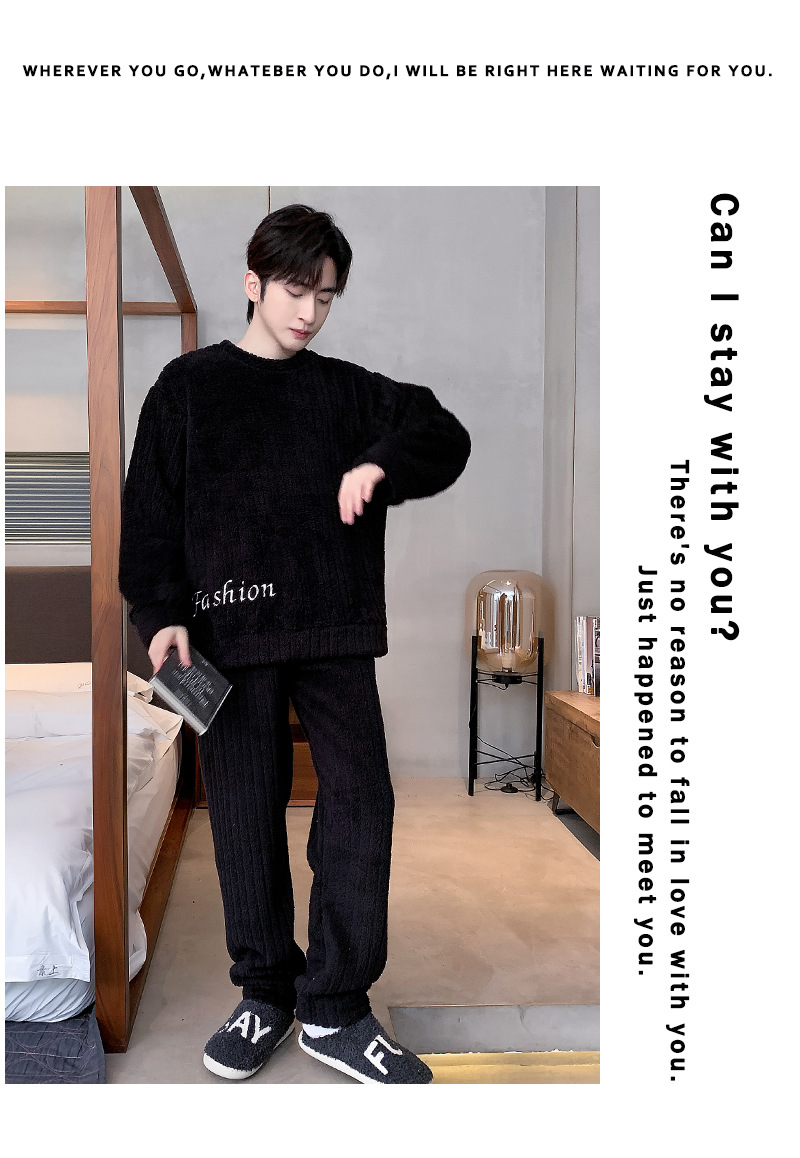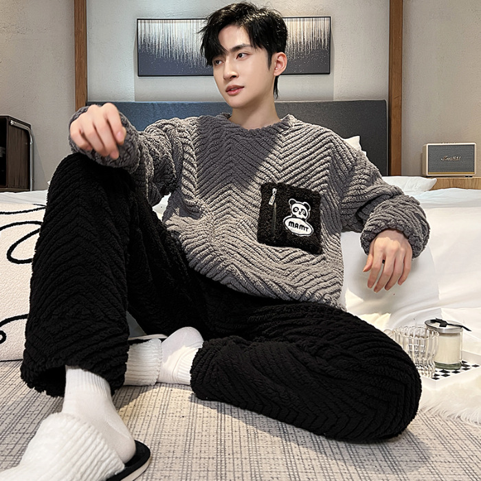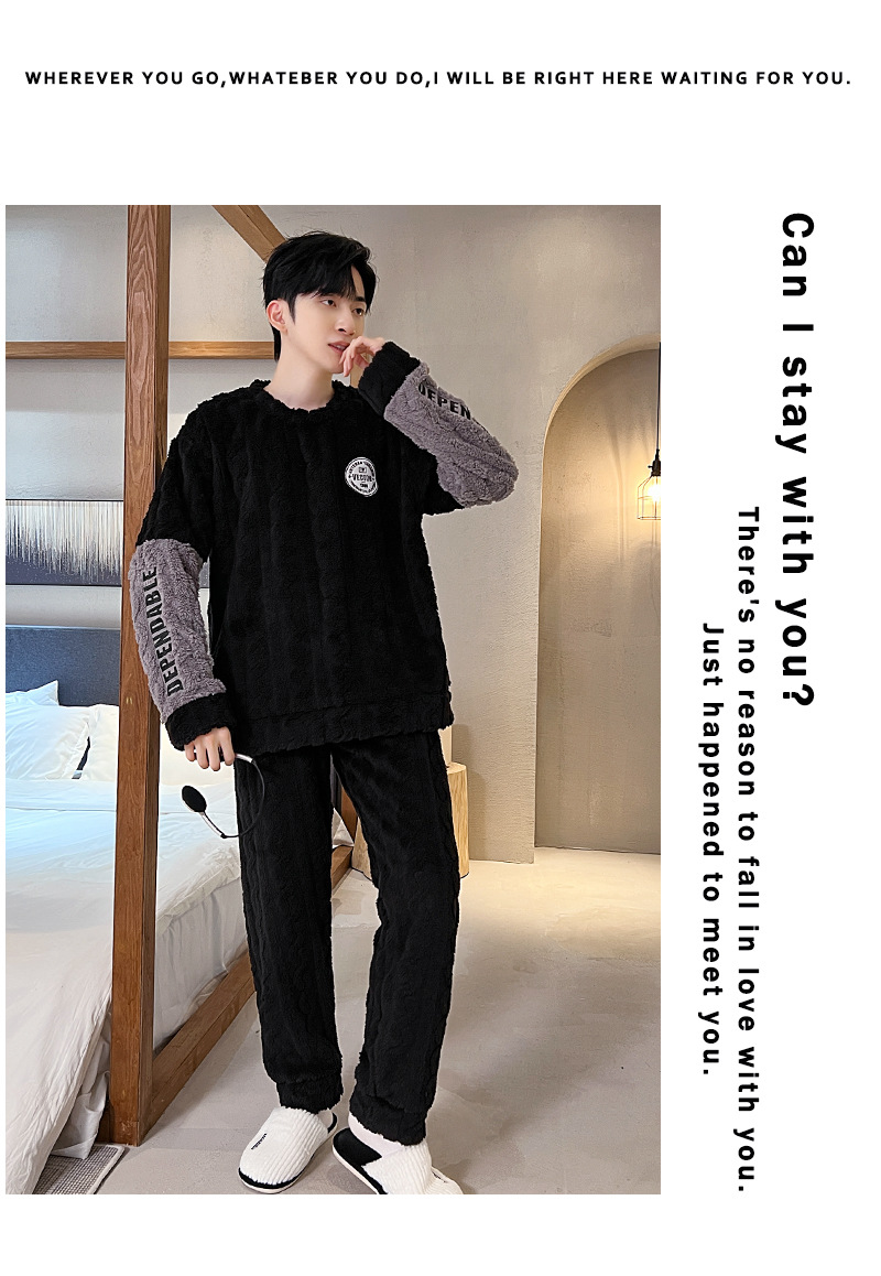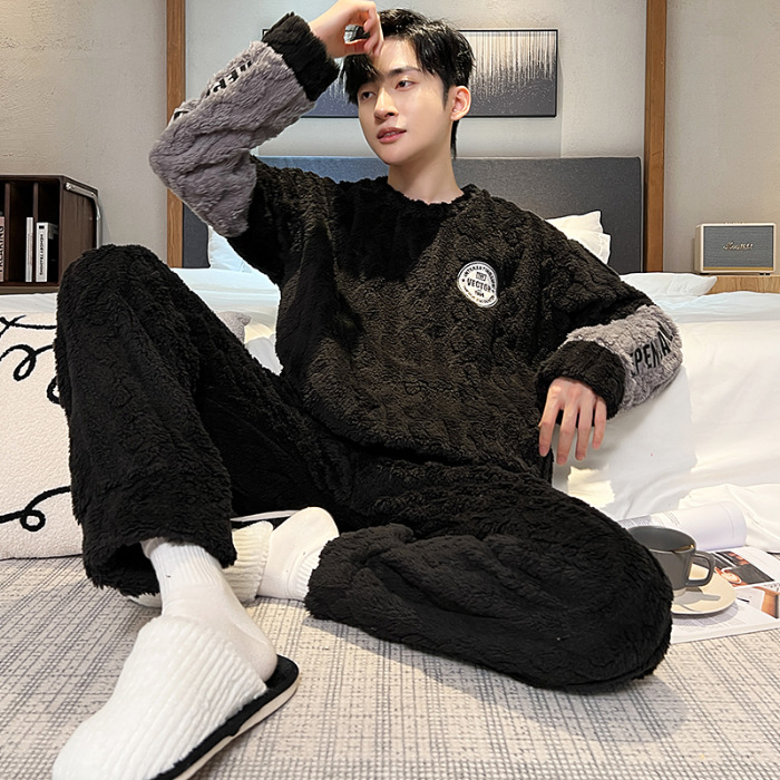가을과 겨울 산호 양털 두꺼운 기모 따뜻한 잠옷 남자 10 대 풀오버 겉옷 투피스 홈 세트스토어 가기