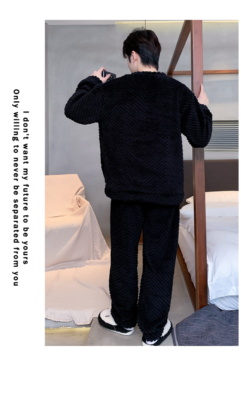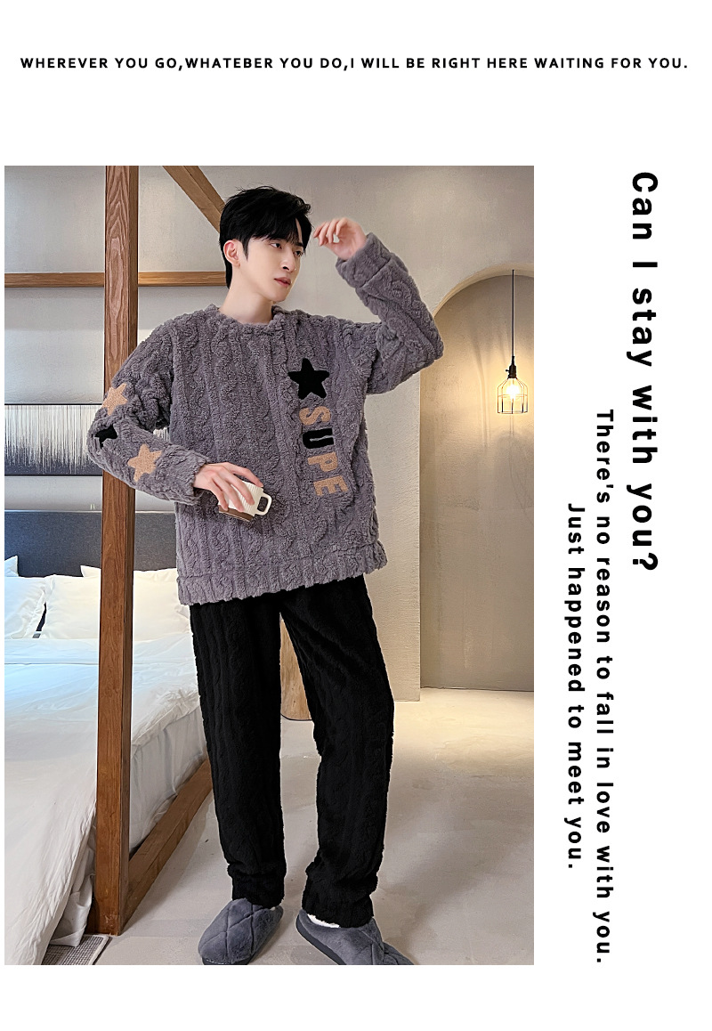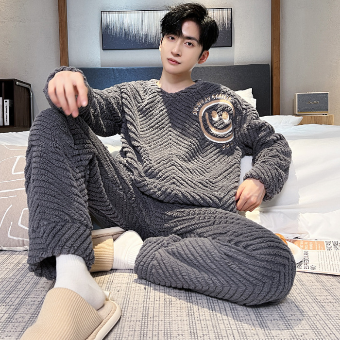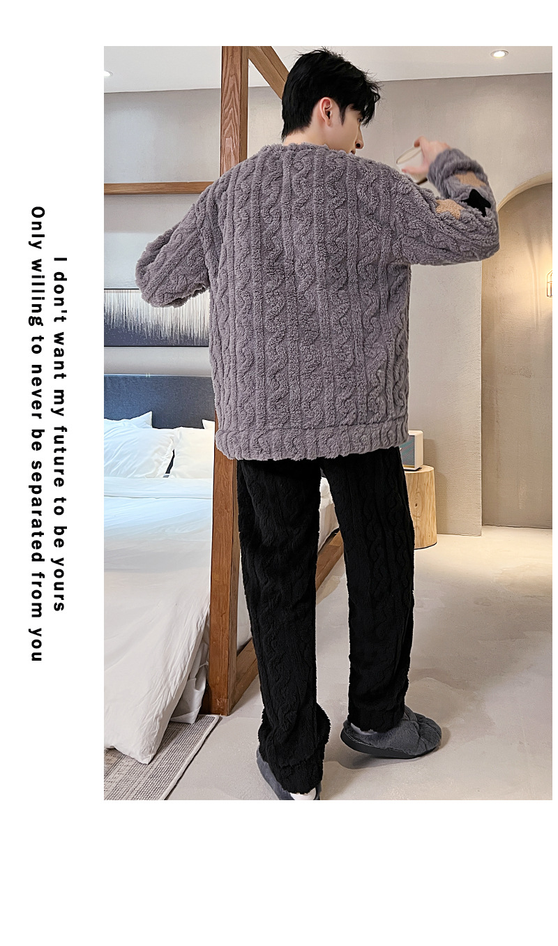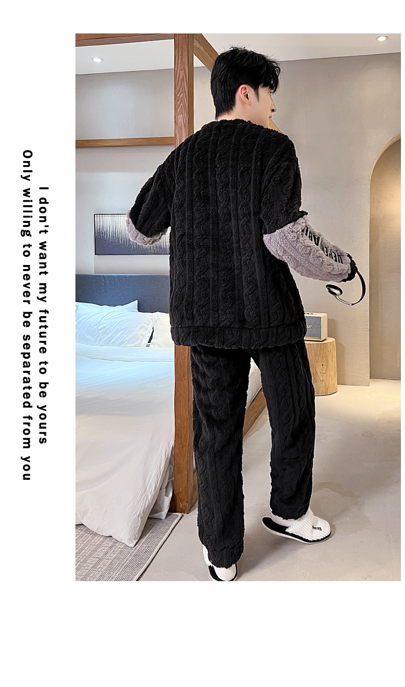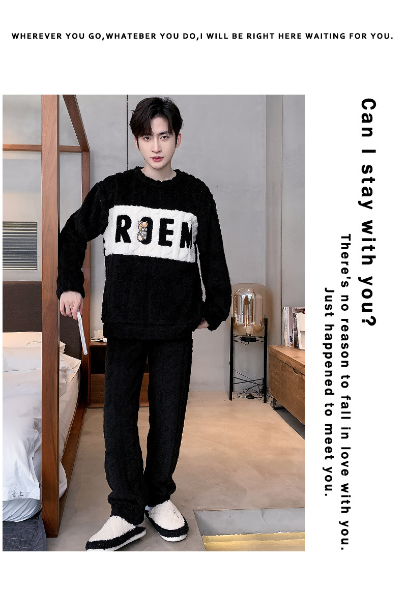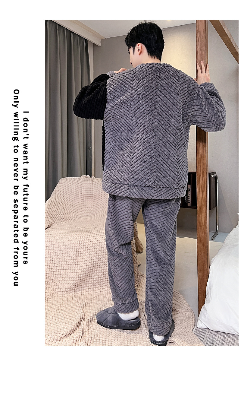 가을과 겨울 산호 양털 두꺼운 기모 따뜻한 잠옷 남자 10 대 풀오버 겉옷 투피스 홈 세트스토어 가기