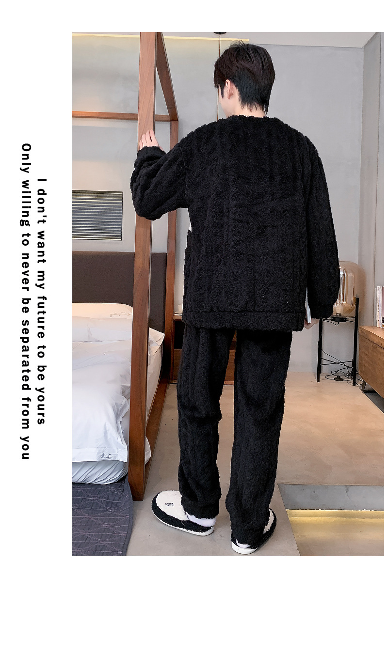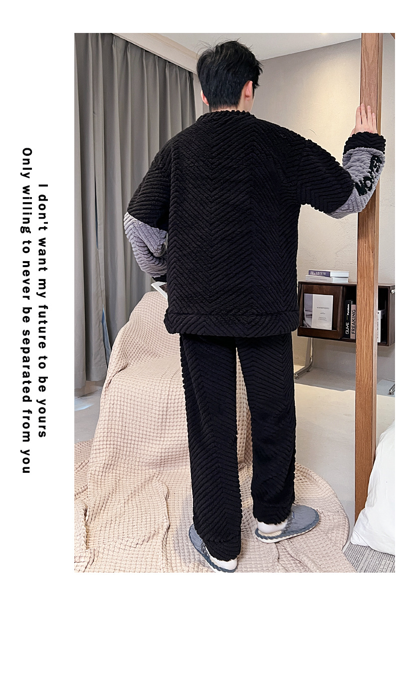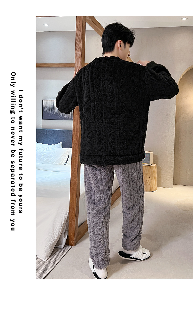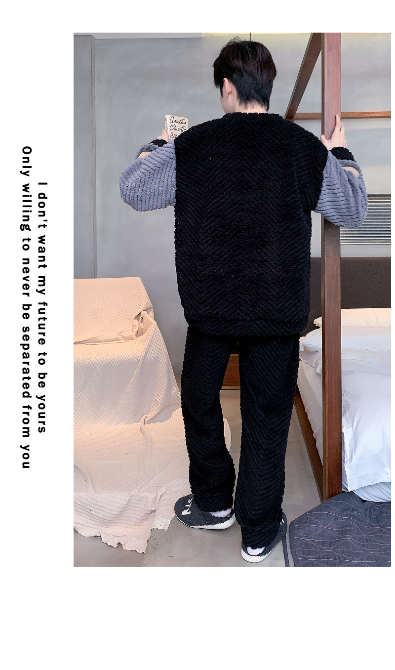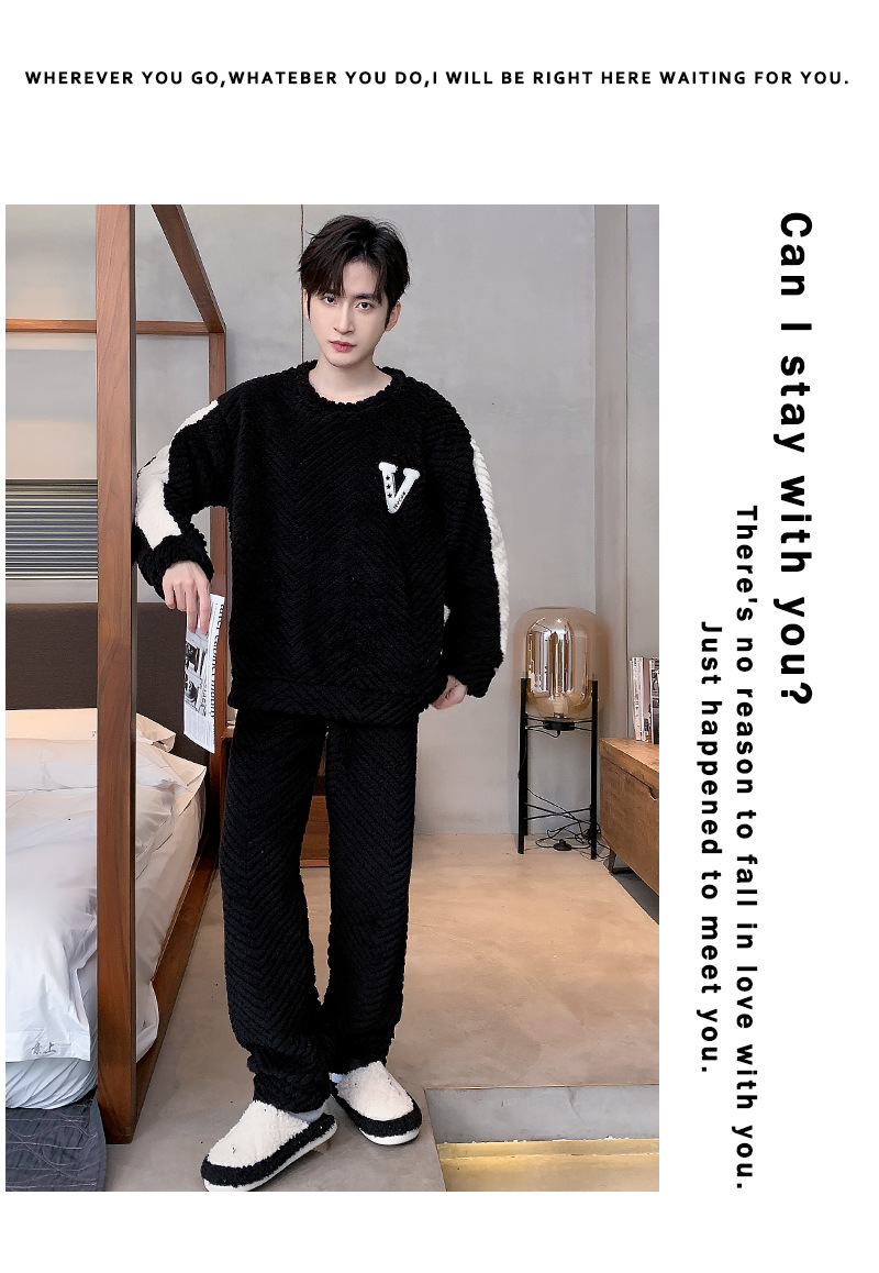 가을과 겨울 산호 양털 두꺼운 기모 따뜻한 잠옷 남자 10 대 풀오버 겉옷 투피스 홈 세트스토어 가기