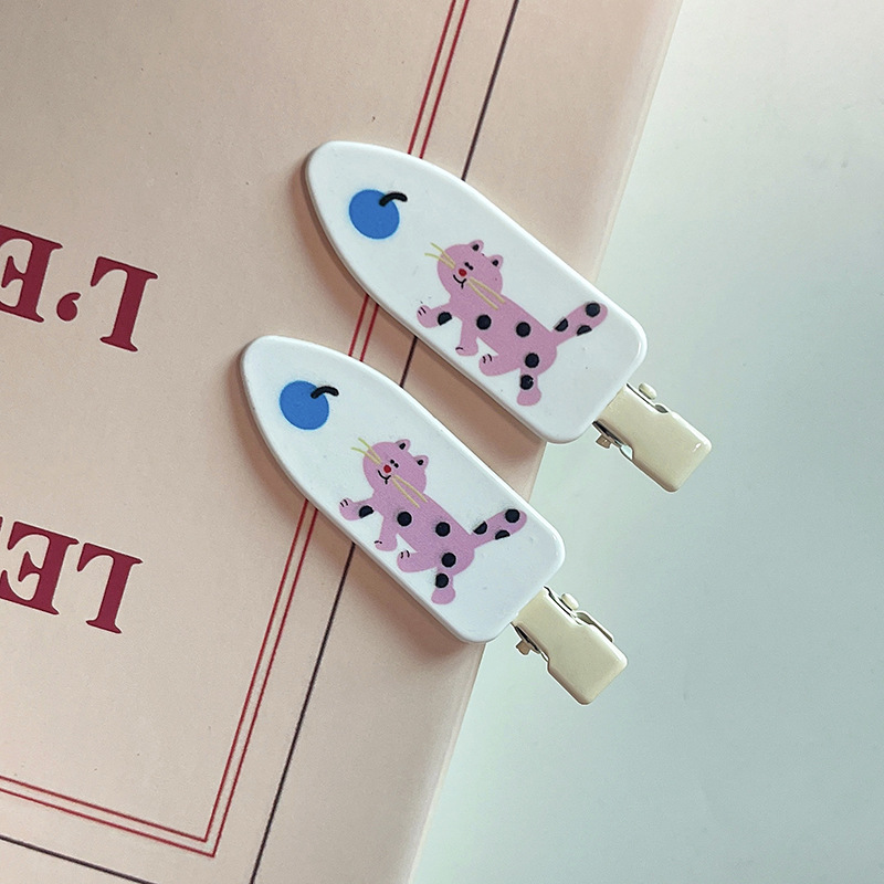 만화 인쇄 작은 동물 삽 헤어핀 달콤한 고양이 원활한 헤어핀 여성의 프론트 사이드 뱅 헤어 액세서리