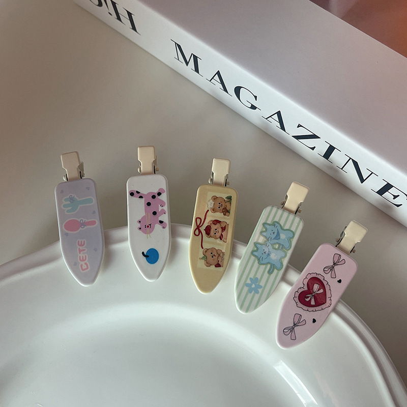 만화 인쇄 작은 동물 삽 헤어핀 달콤한 고양이 원활한 헤어핀 여성의 프론트 사이드 뱅 헤어 액세서리스토어 가기